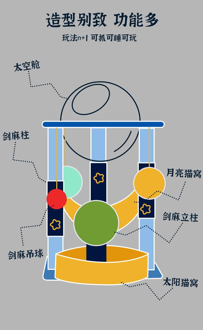 Extra large space capsule cat climbing frame + moon nest, Extra large space capsule cat climbing frame, Large ...