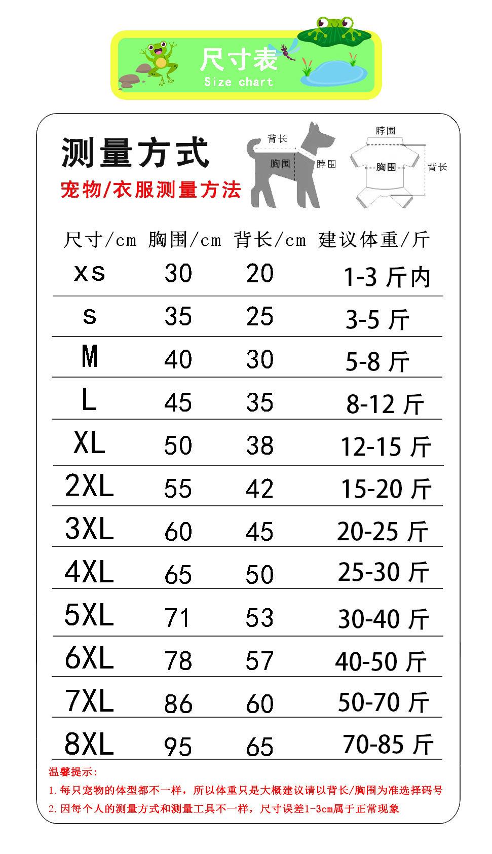 Xs(bust 30cm 0.5-1.5kg ), S(bust 35cm 1.5-2.5kg ), M(bust 40cm 2.5-4kg ), L(bust 45cm 4-5.5kg ), Xl(bust 50cm ...