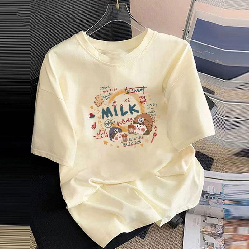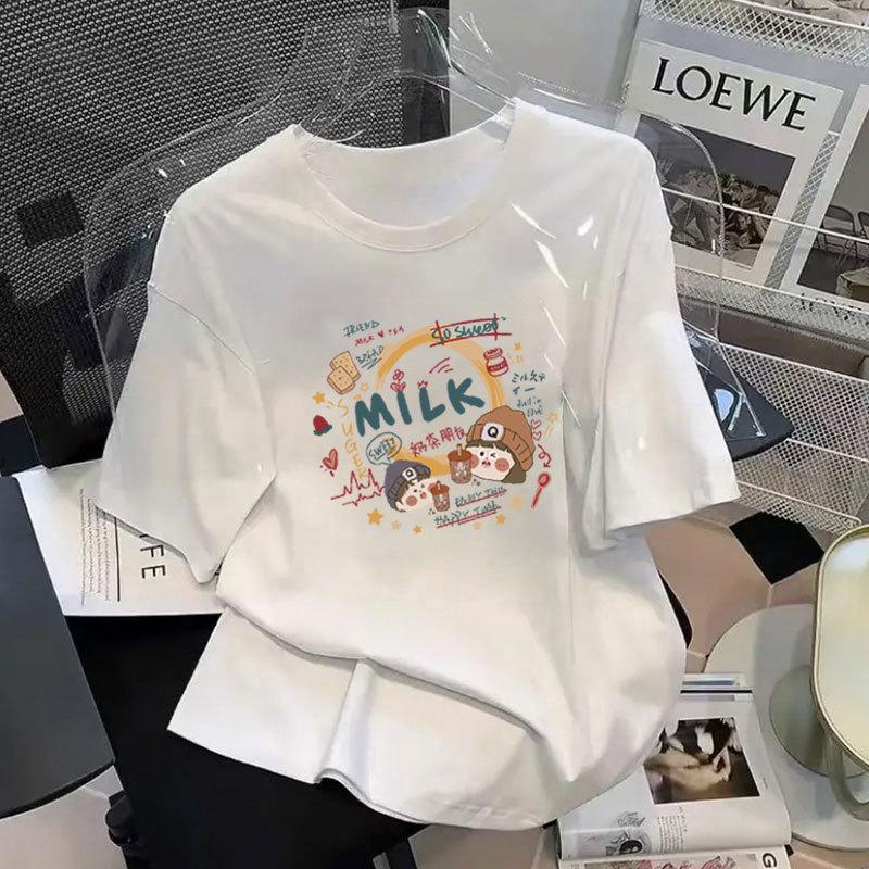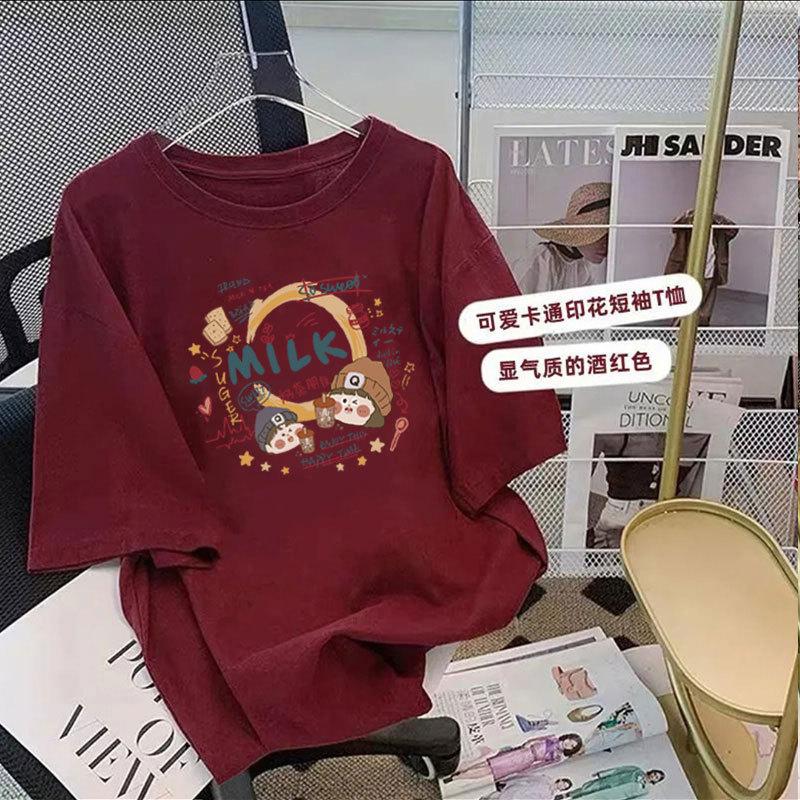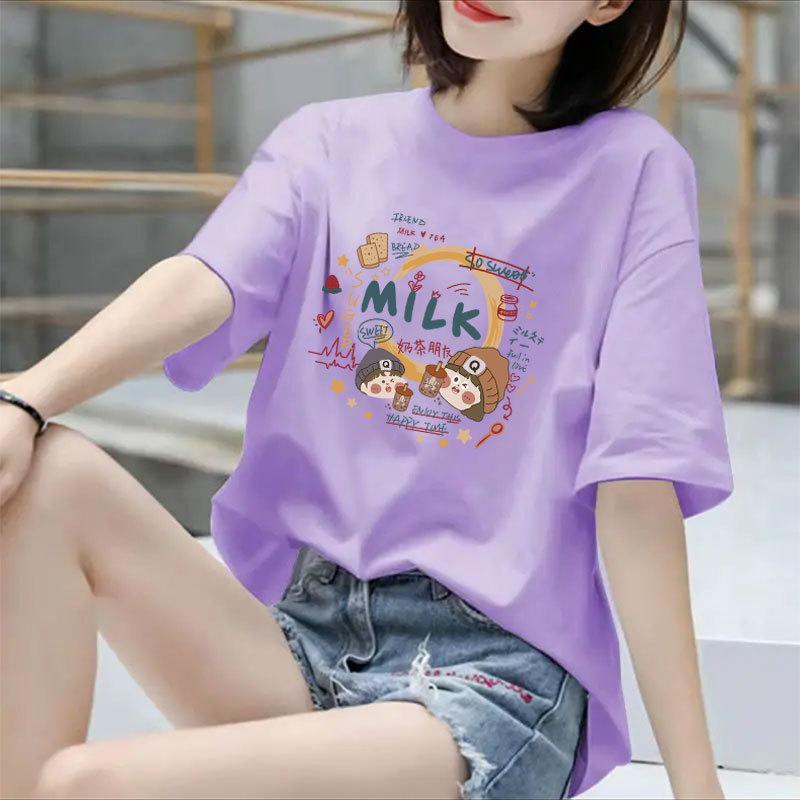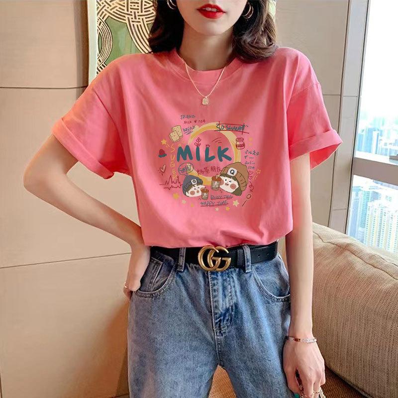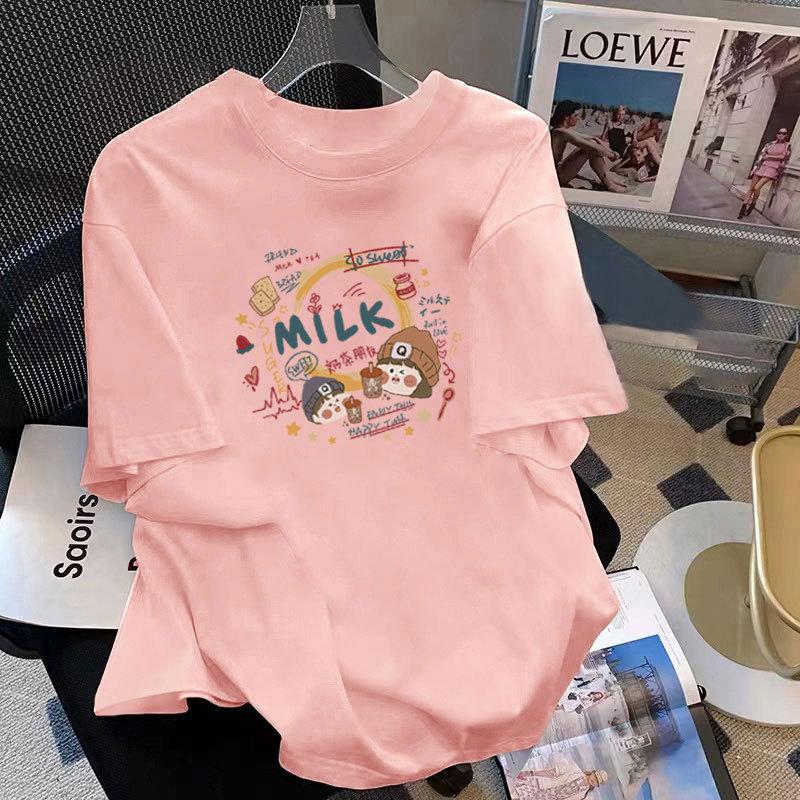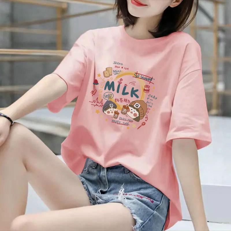 Camiseta Rosa de Manga Corta para Mujer Hombro 2023 Nueva Moda Elegante Camiseta Básica con Algodón Camiseta de Media Manga Ropa de Mujer