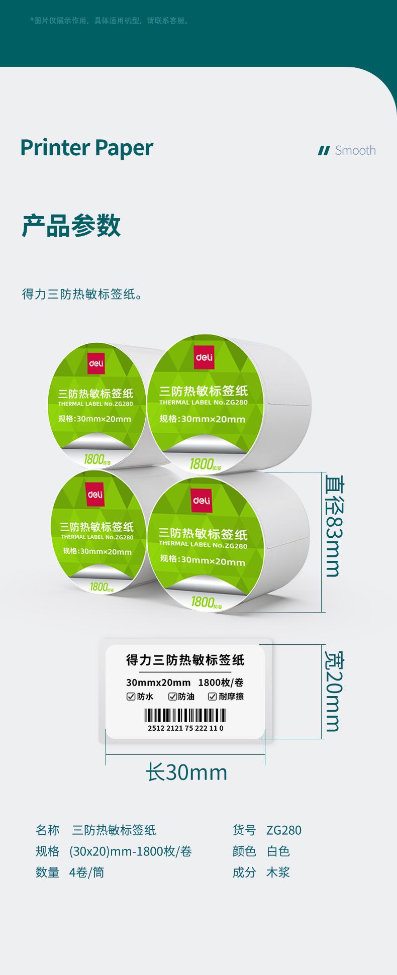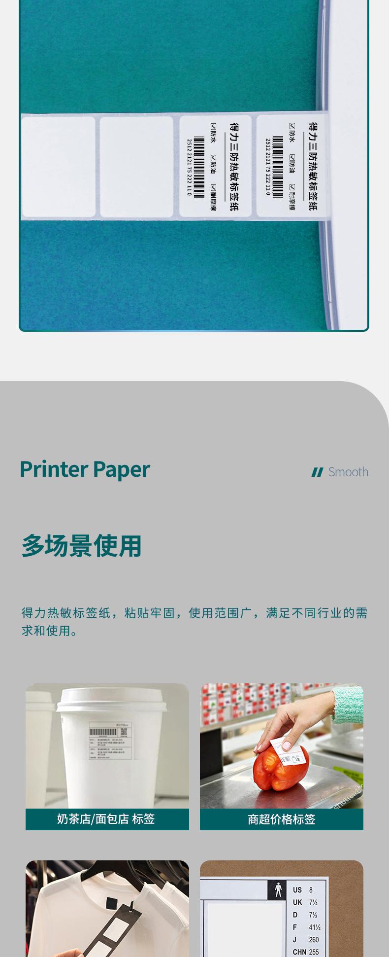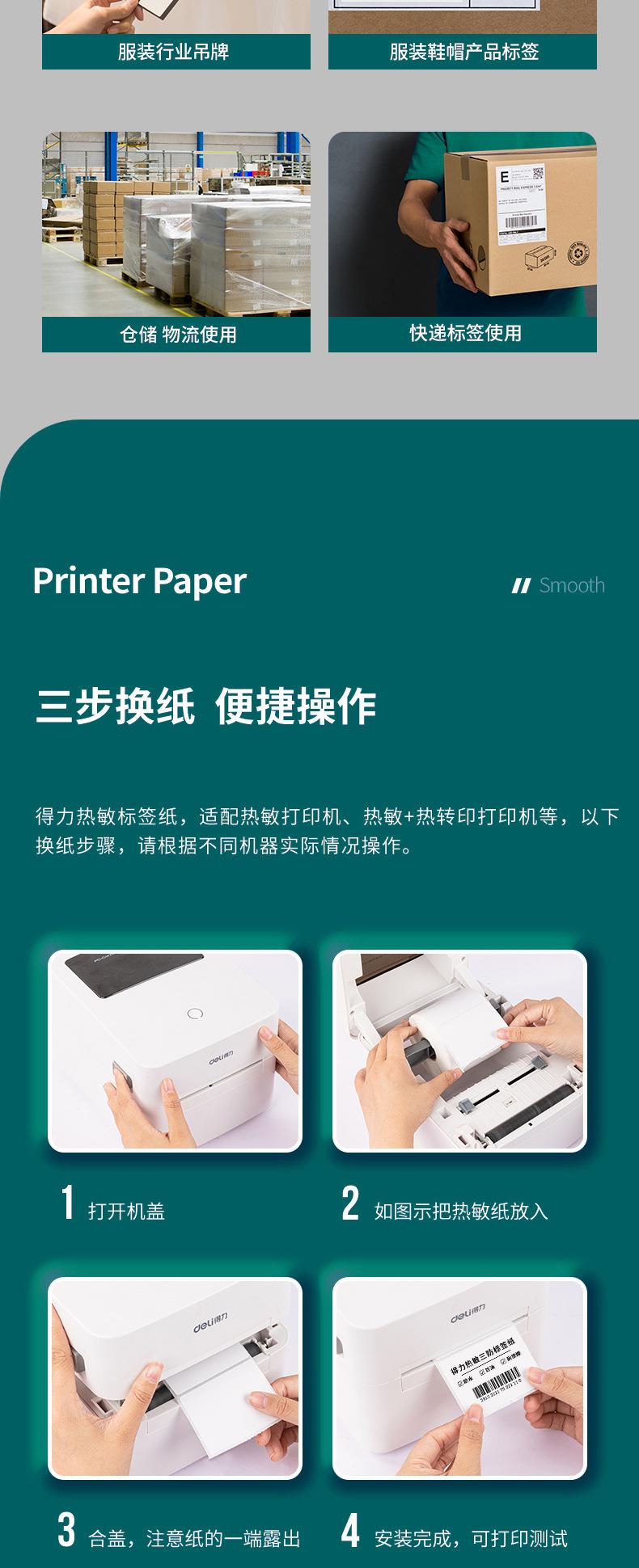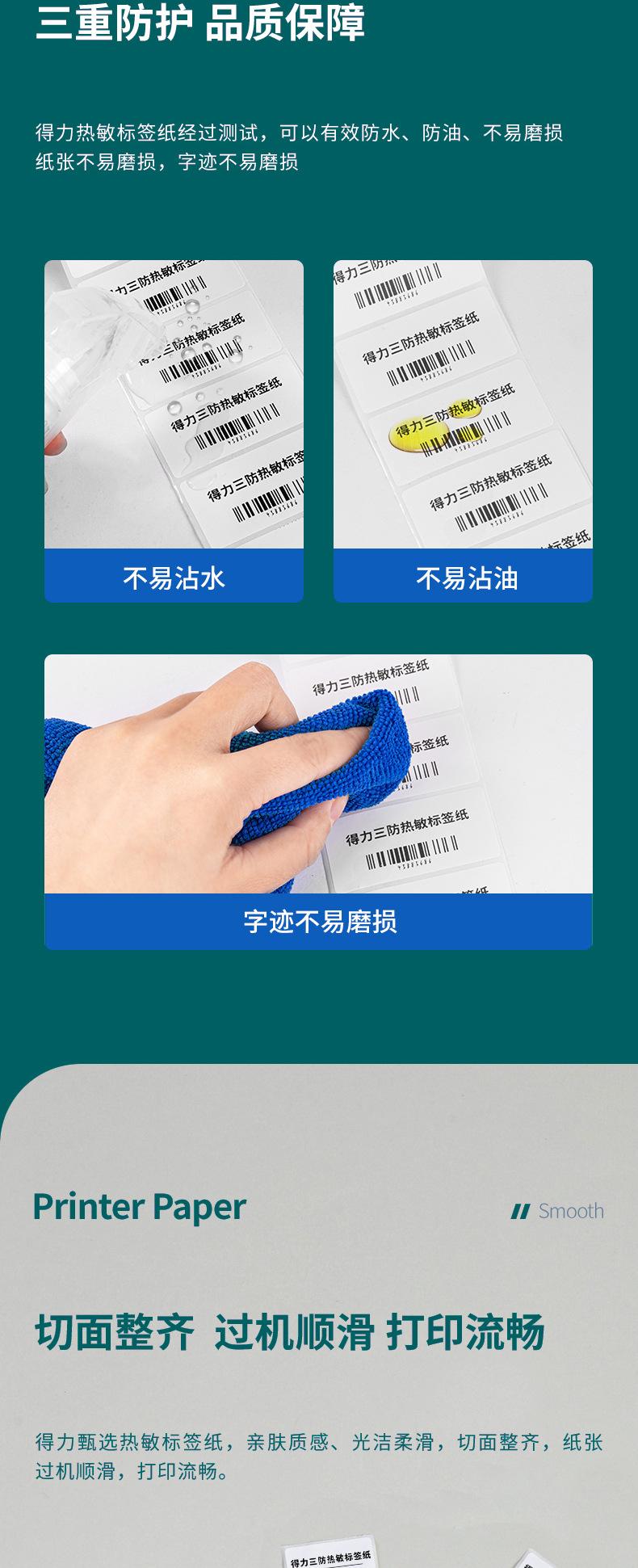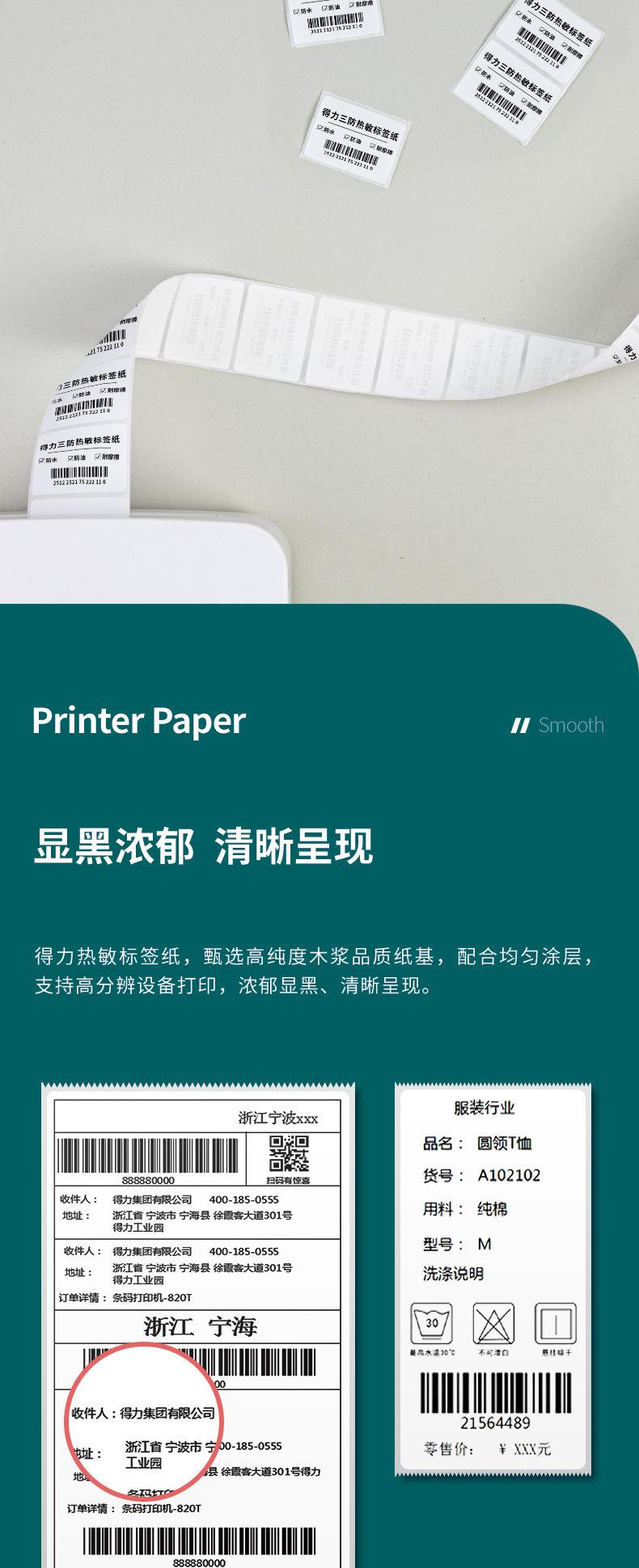 Impresora de Papel Térmico Deli a Prueba de Tres Autoadhesivo Papel para Imprimir Etiquetas de Precio Amazon Papel para Código de Barras Té de Leche