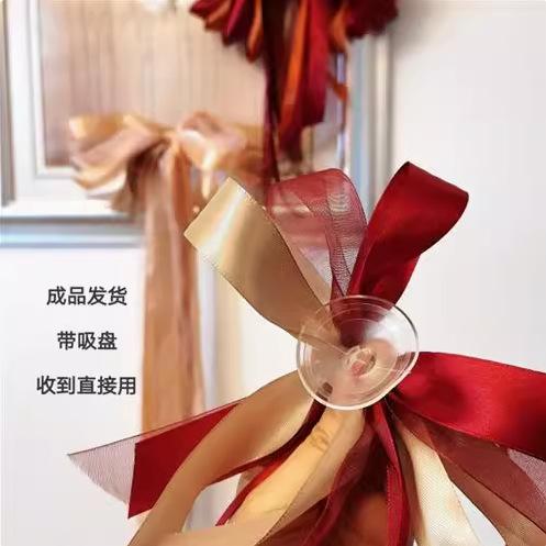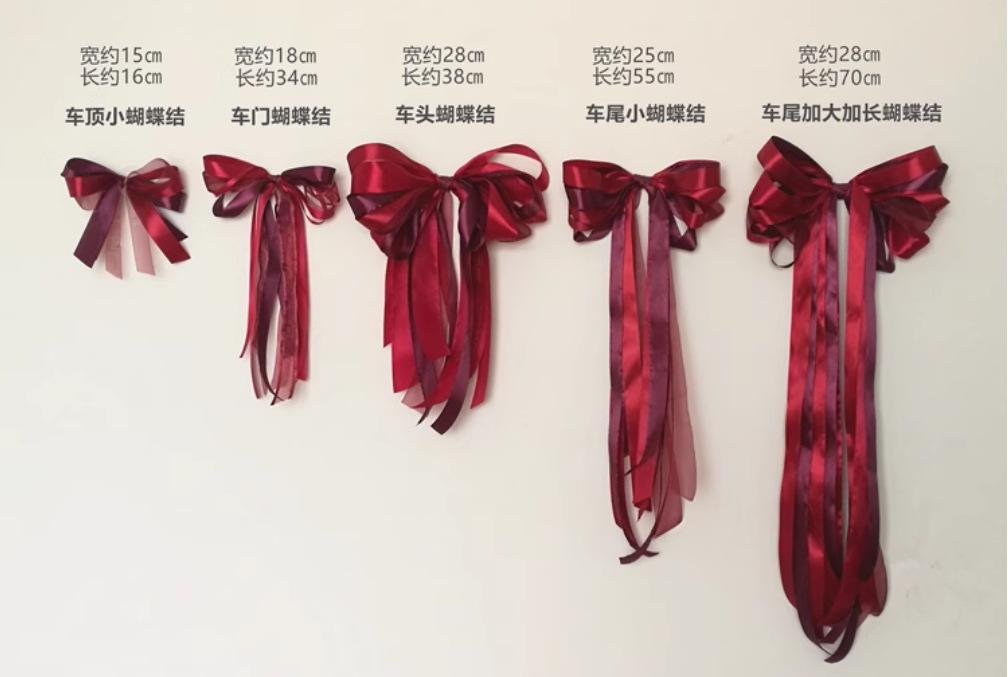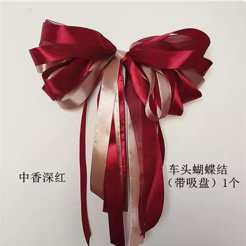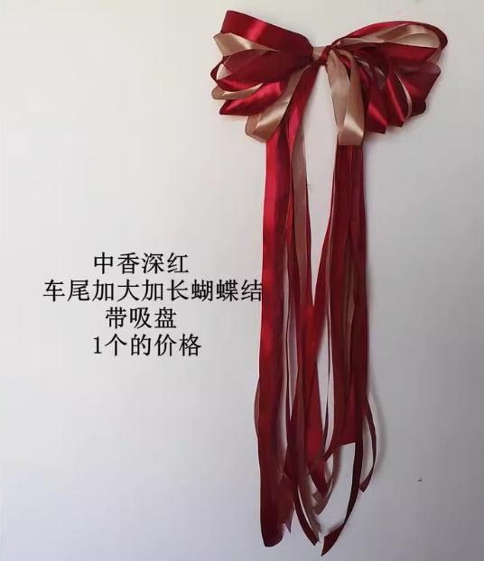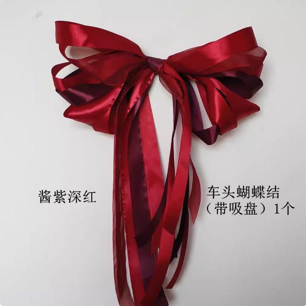 Enlarged and lengthened bow at the rear of the car (medium fragrant dark red) (with suction cup) 1 piece
