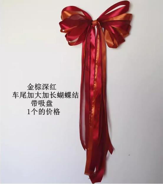 Enlarged and lengthened bow at the rear of the car (golden brown and dark red) (with suction cup) 1 piece