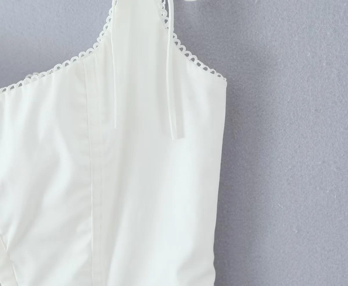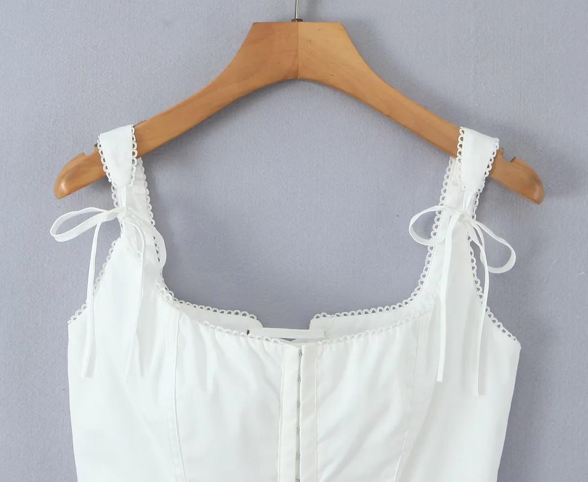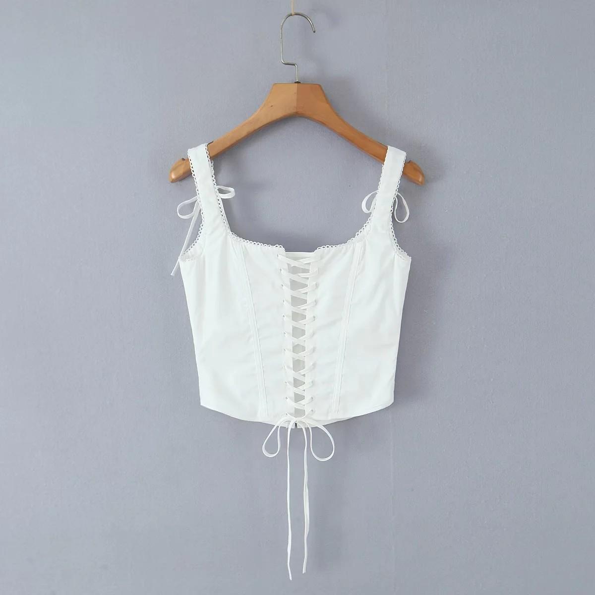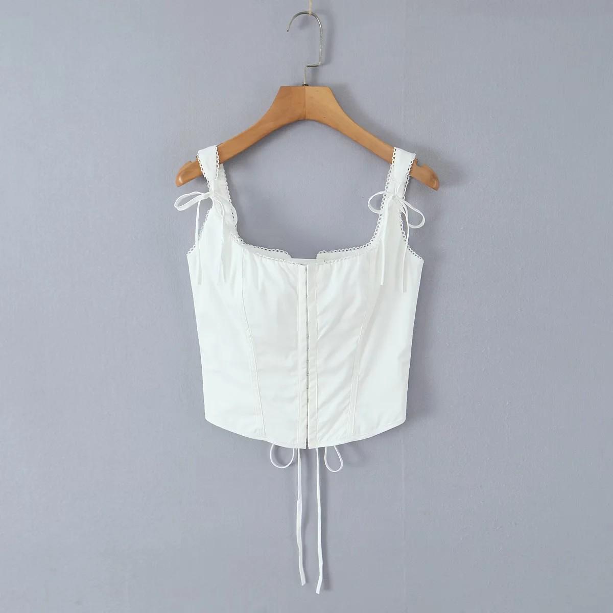 Camisola pequeña estilo francés con lazo de corbata de velcro dulce, diseño de espalda que reduce la edad, top corto ajustado