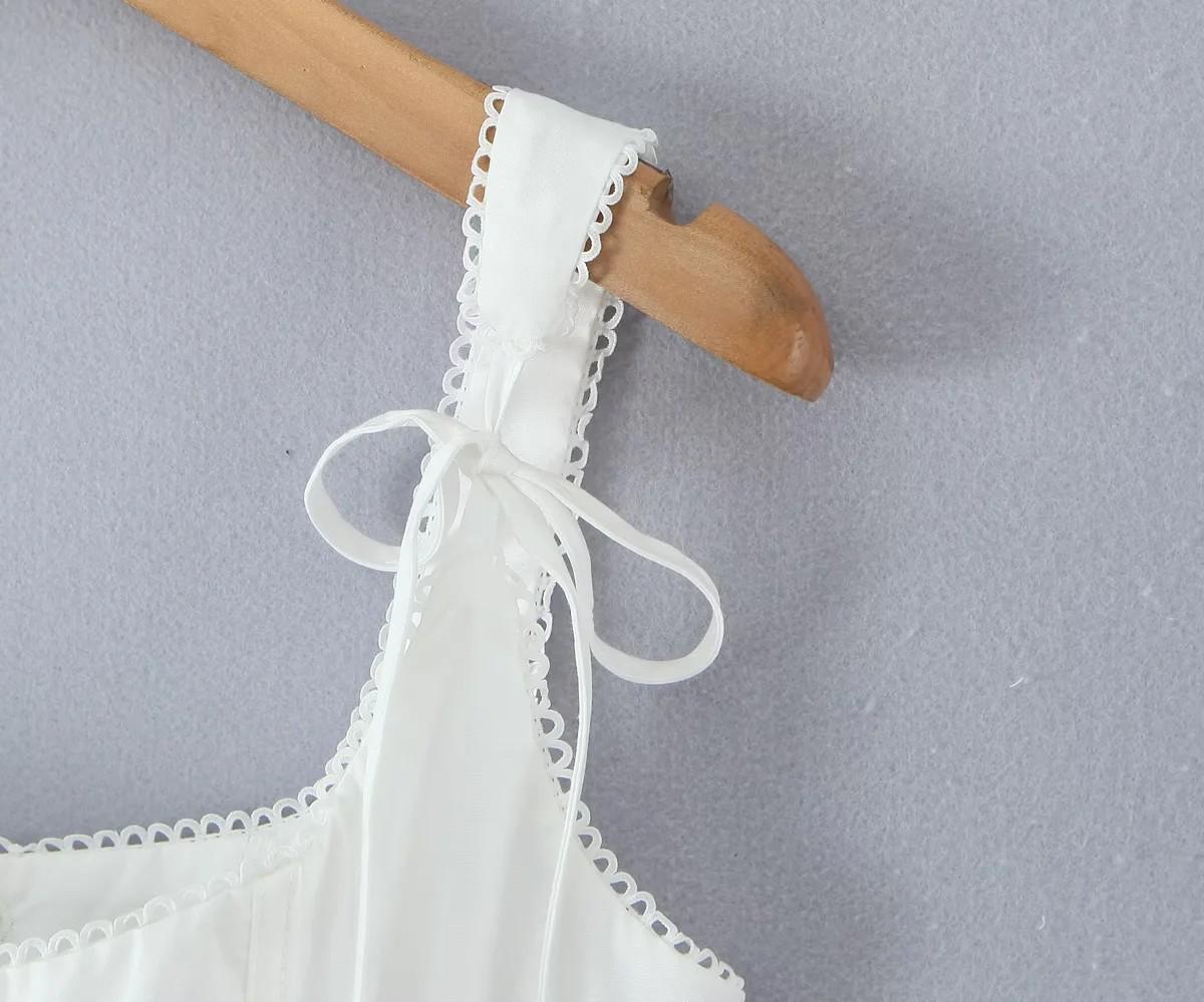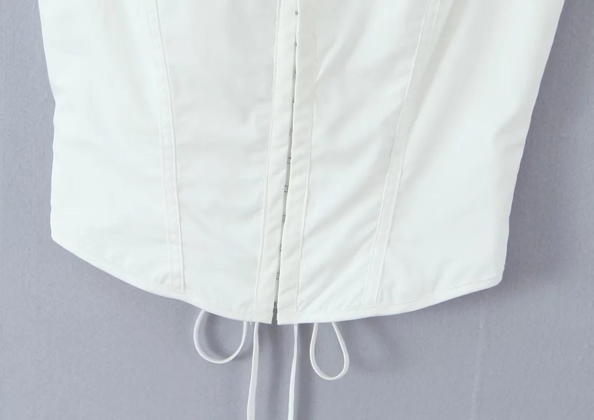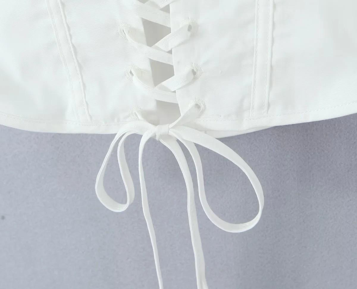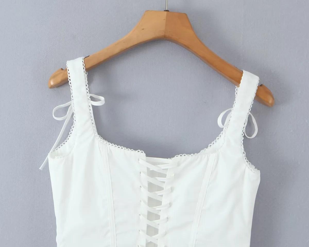 Camisola pequeña estilo francés con lazo de corbata de velcro dulce, diseño de espalda que reduce la edad, top corto ajustado