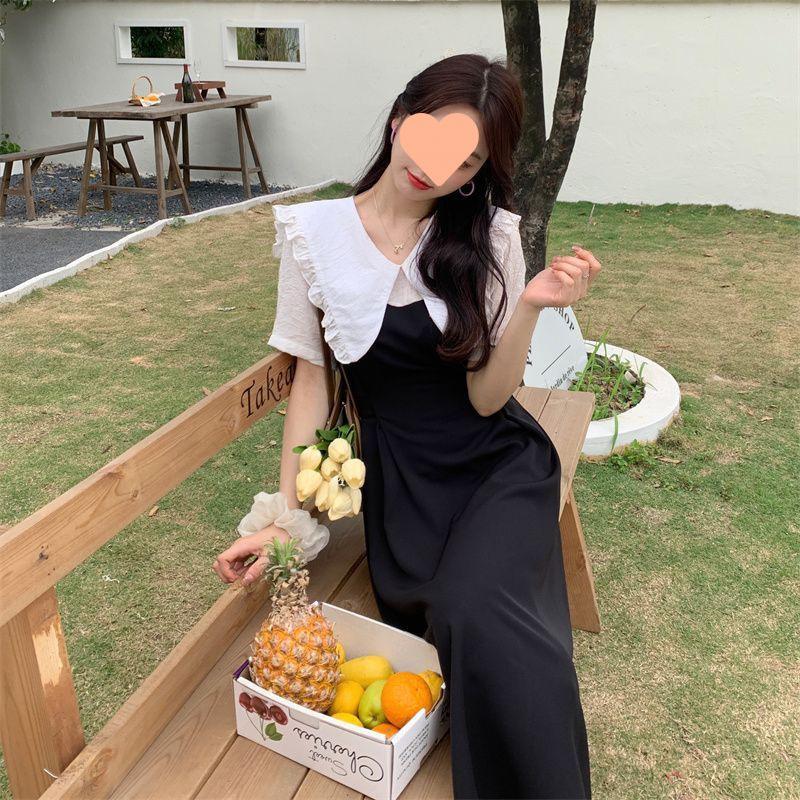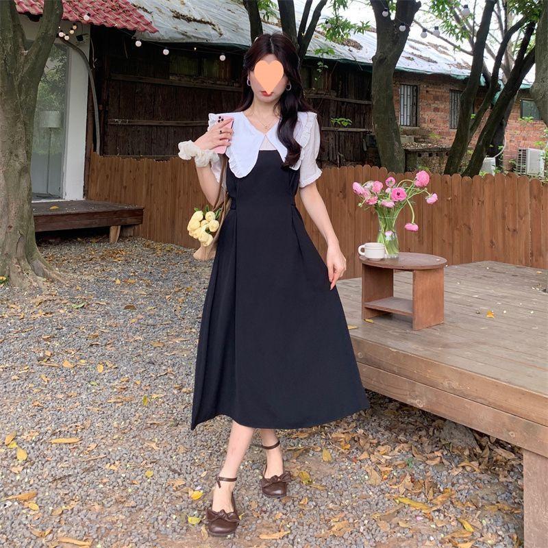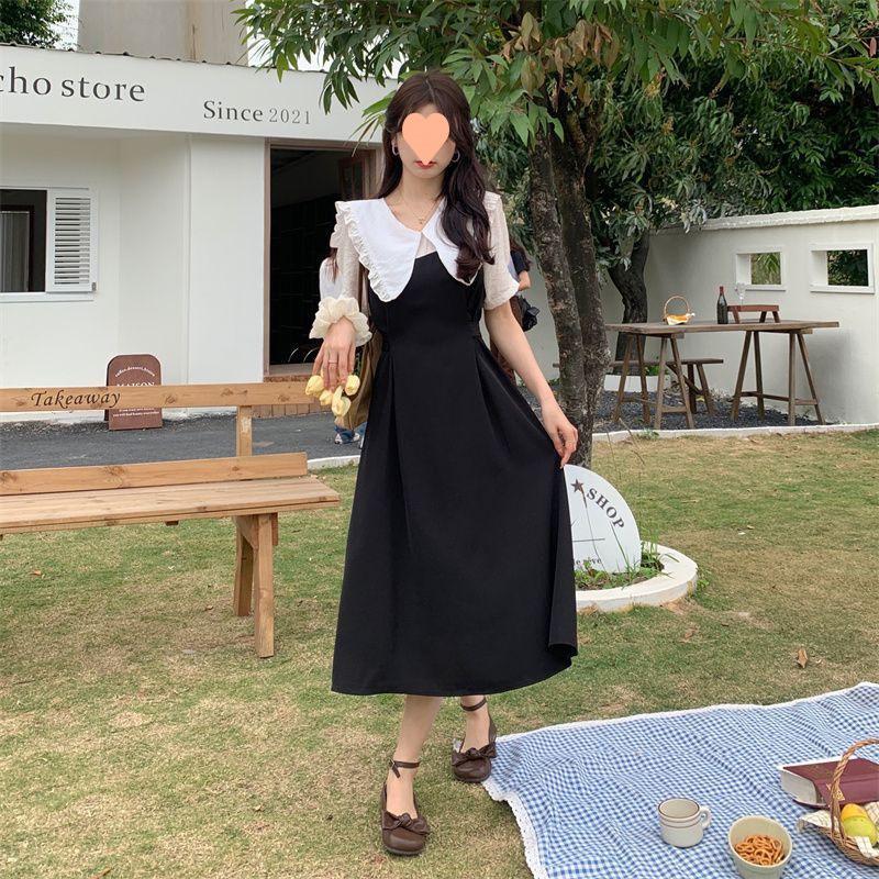 Vestido Francés de Manga Corta Estilo Maduro Ligero Verde Cuello de Muñeca Femenino Estilo Hepburn Cintura Francesa Adelgazante Falda Larga