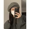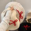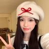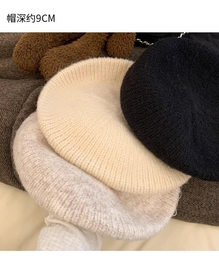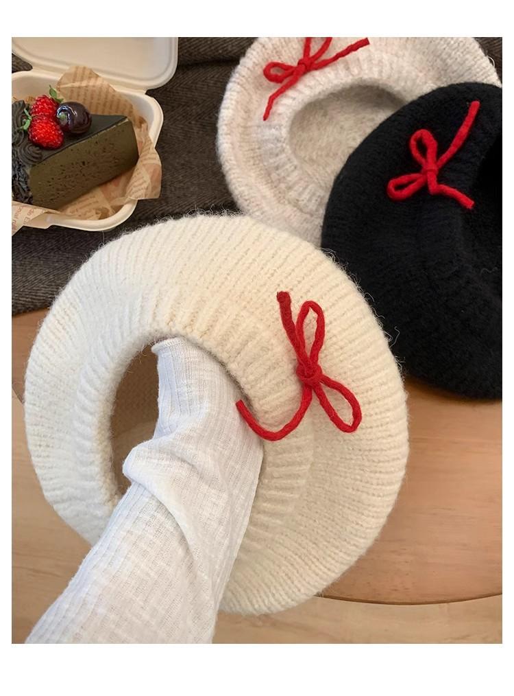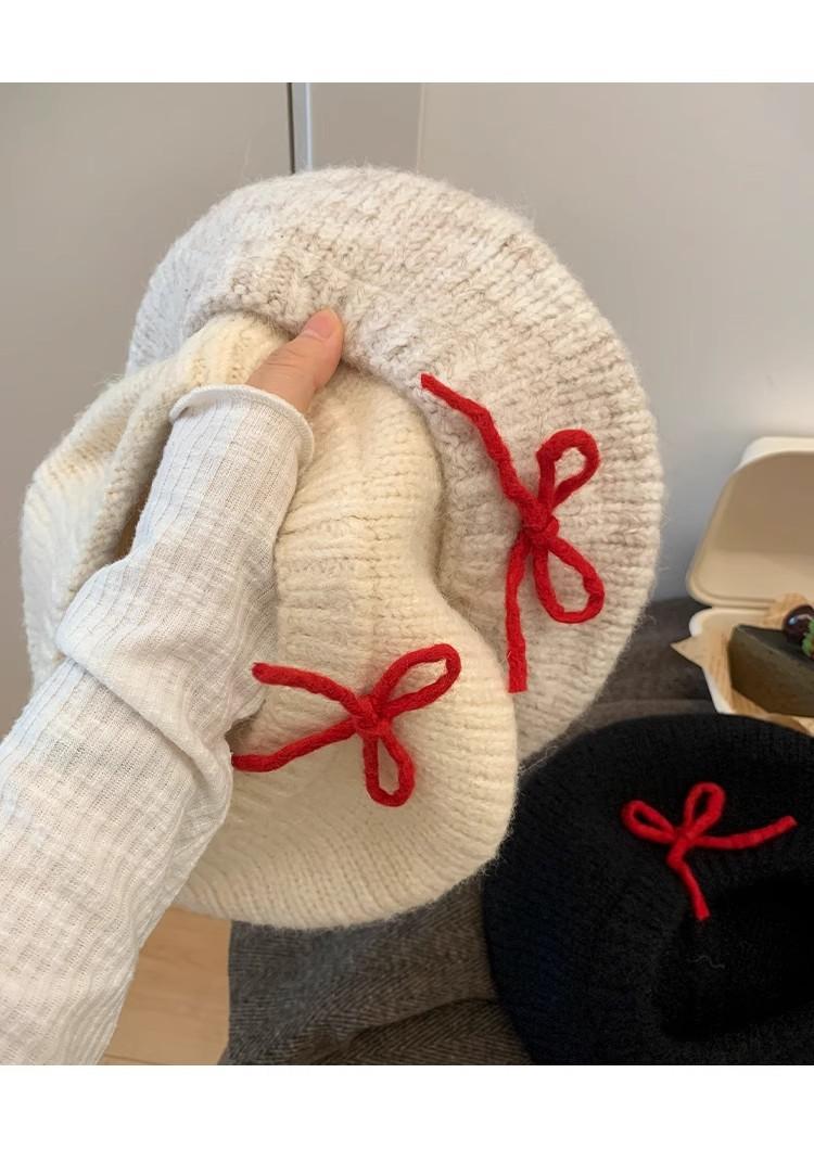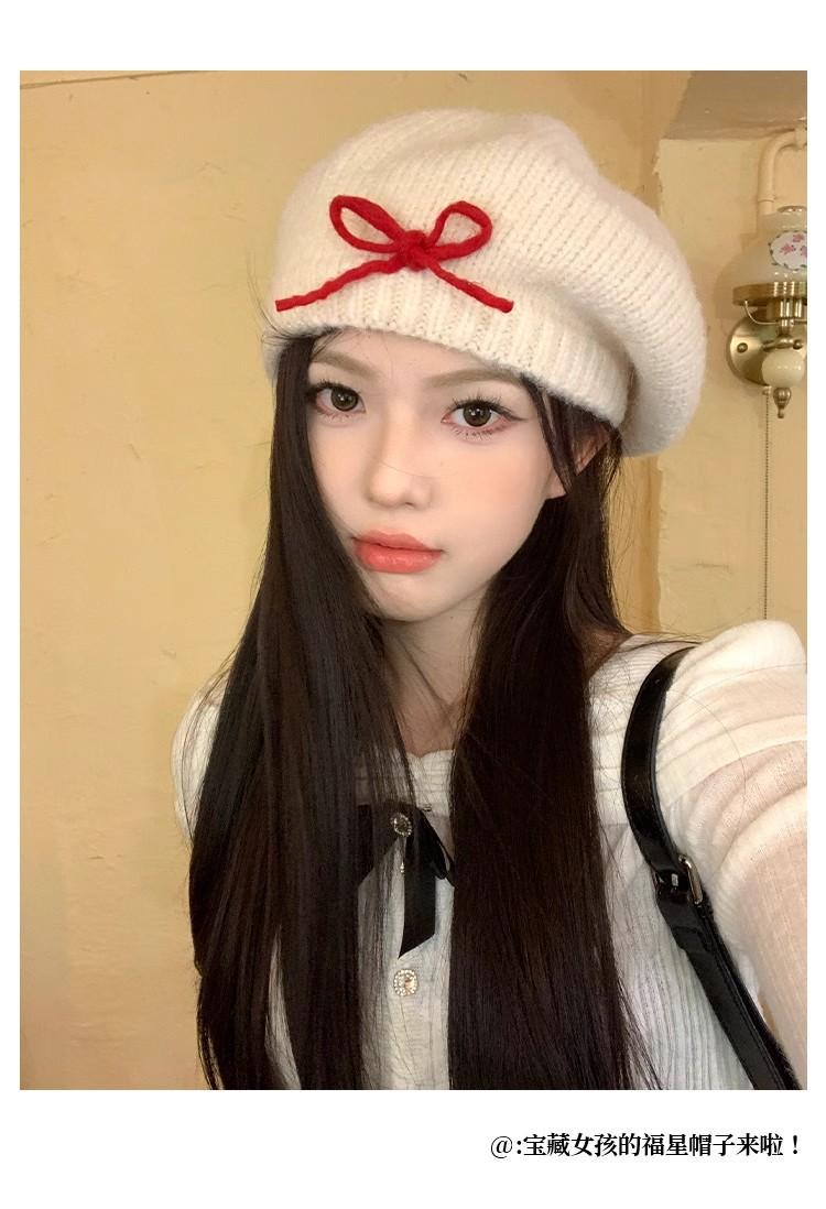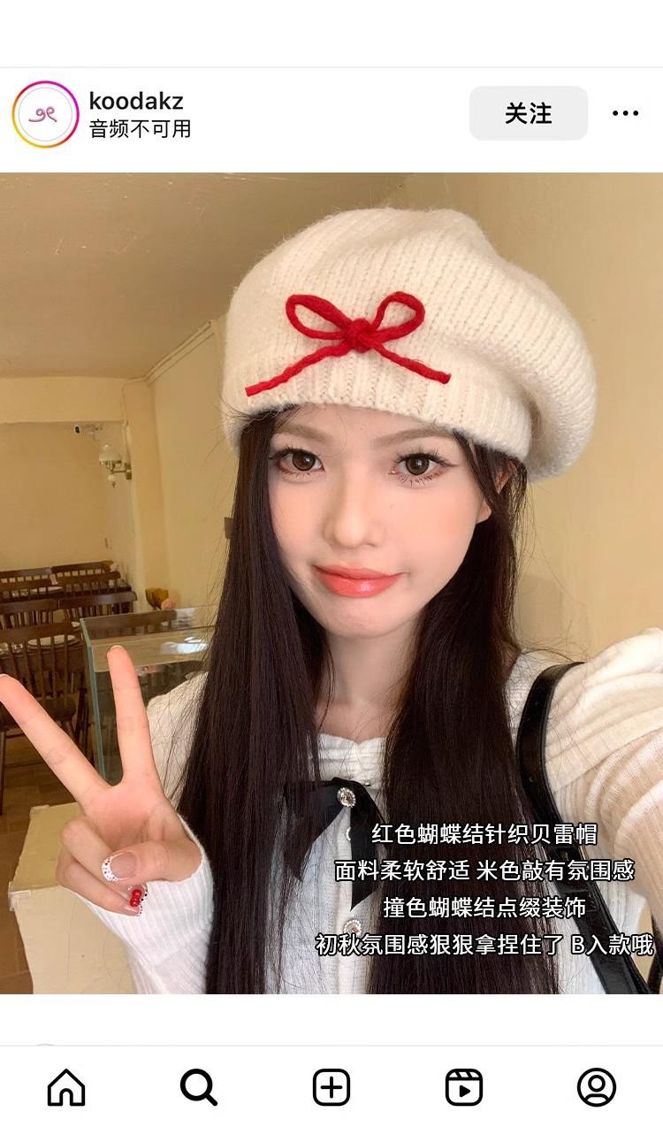 Boina de Punto de Felpa con Lazo Estilo Coreano para Mujer Otoño e Invierno a Prueba de Frío Cálido Lana Sombrero Cabeza Grande Circunferencia Sombrero Pequeño