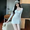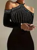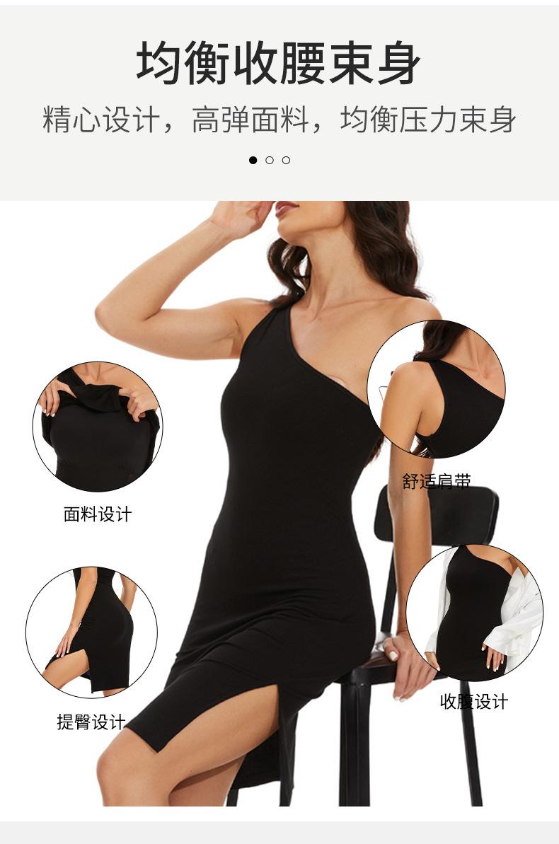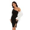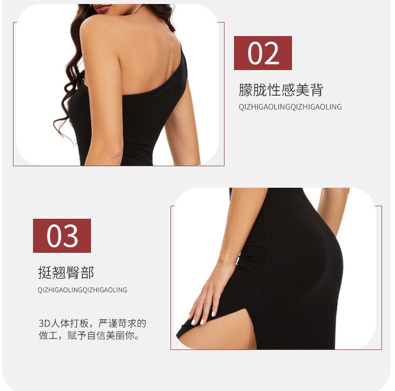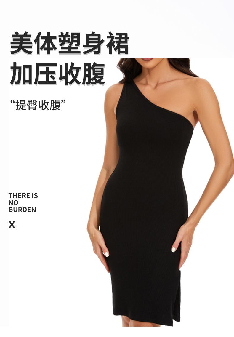 Vestido Asimétrico Cruzado al Hombro con Envoltura de Cadera para Moldeado del Cuerpo para Mujer, Forrado de Doble Capa, Corte Slim, Corto con Abertura Lateral