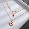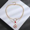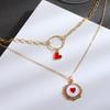 Collar con Colgante de Amor de Doble Capa Europeo y Americano Transfronterizo para Mujer, Moda Ins, Elegante, Corazón de Durazno, Cadena para Clavícula, Collar Bohemio