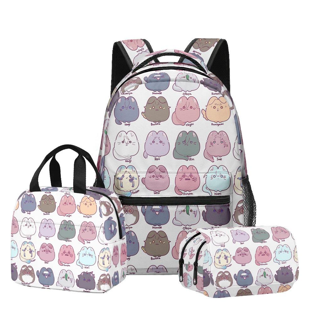 Three-piece set: school bag + lunch bag + pencil case, Schoolbag, Lunch bag, Pencil case