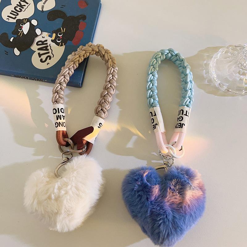 Colgante de Amor de Felpa Blanca Ins para Niñas Cordón para Teléfono Móvil Giratorio Colgante para Bolso Llavero Cadena Colgante Teléfono Móvil Universal