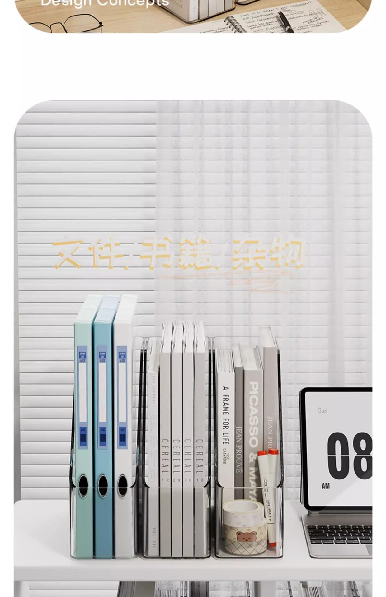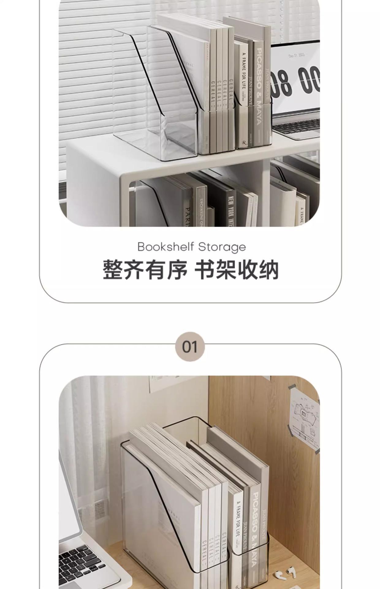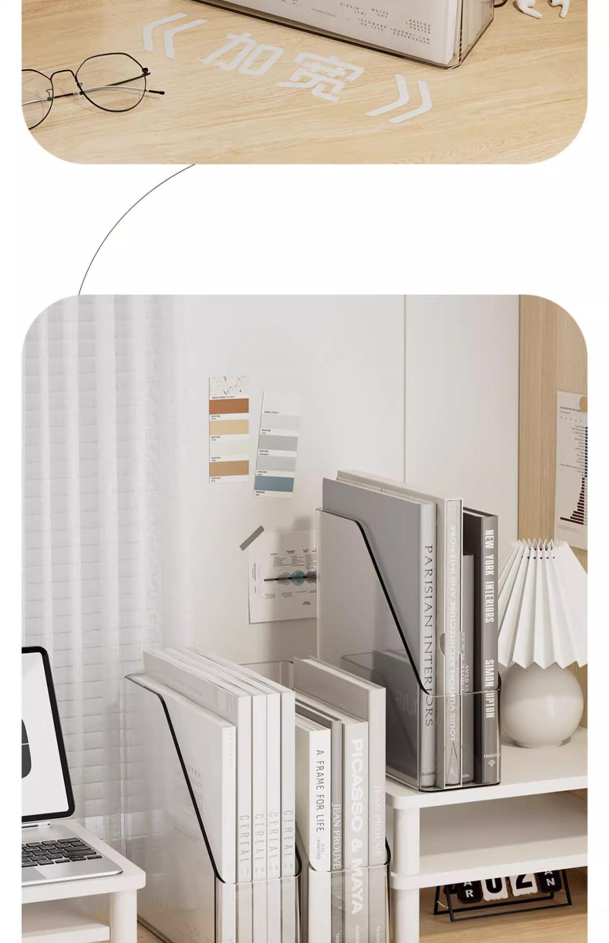 Caja de Almacenamiento de Archivos de Escritorio Transparente Estantería Organizador de Archivos Estante Fijo para Almacenamiento de Libros Soporte Acrílico para Libros