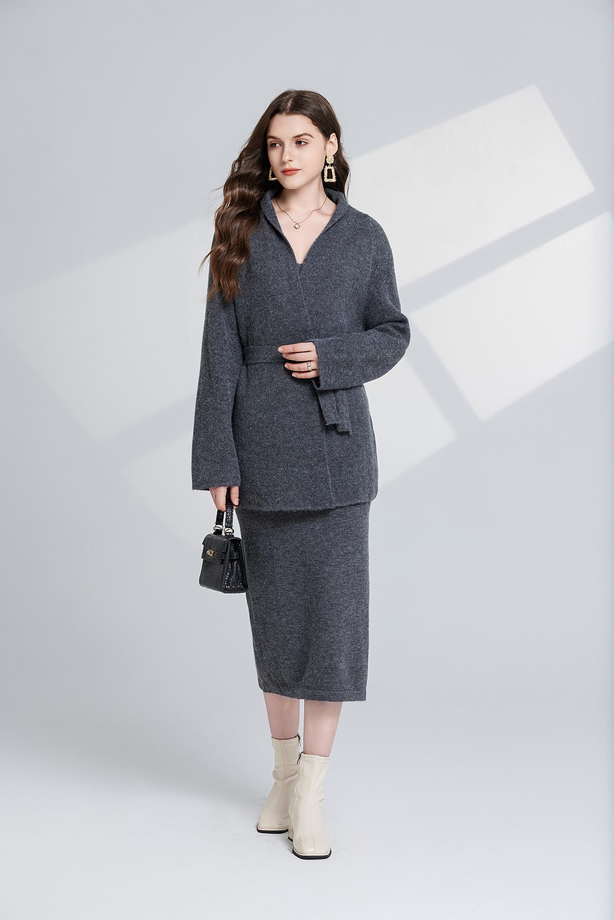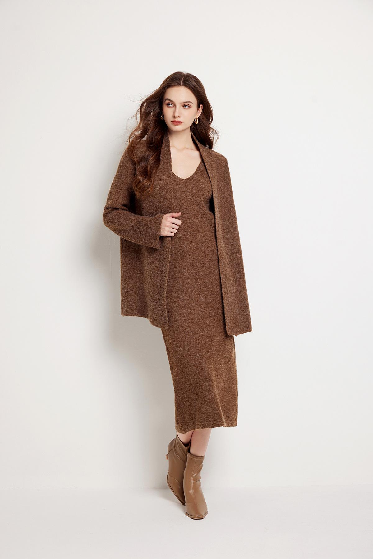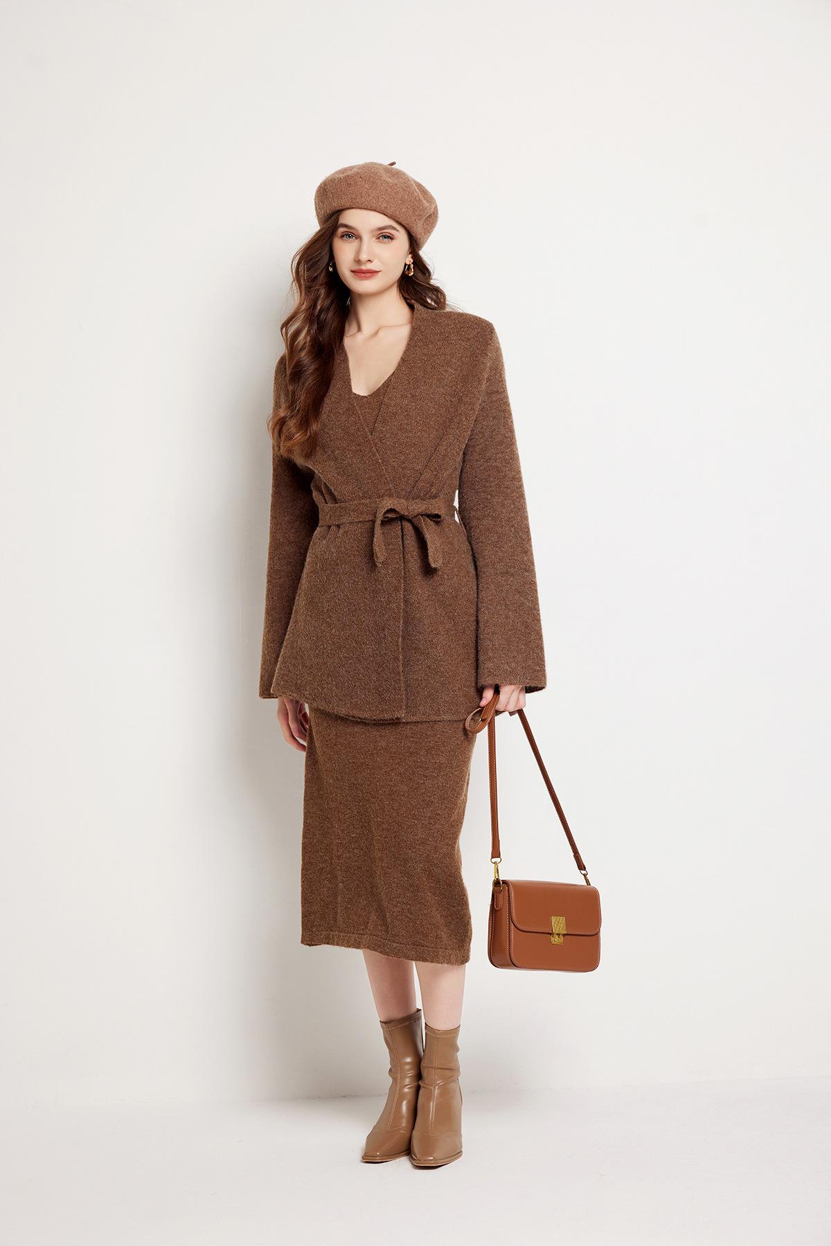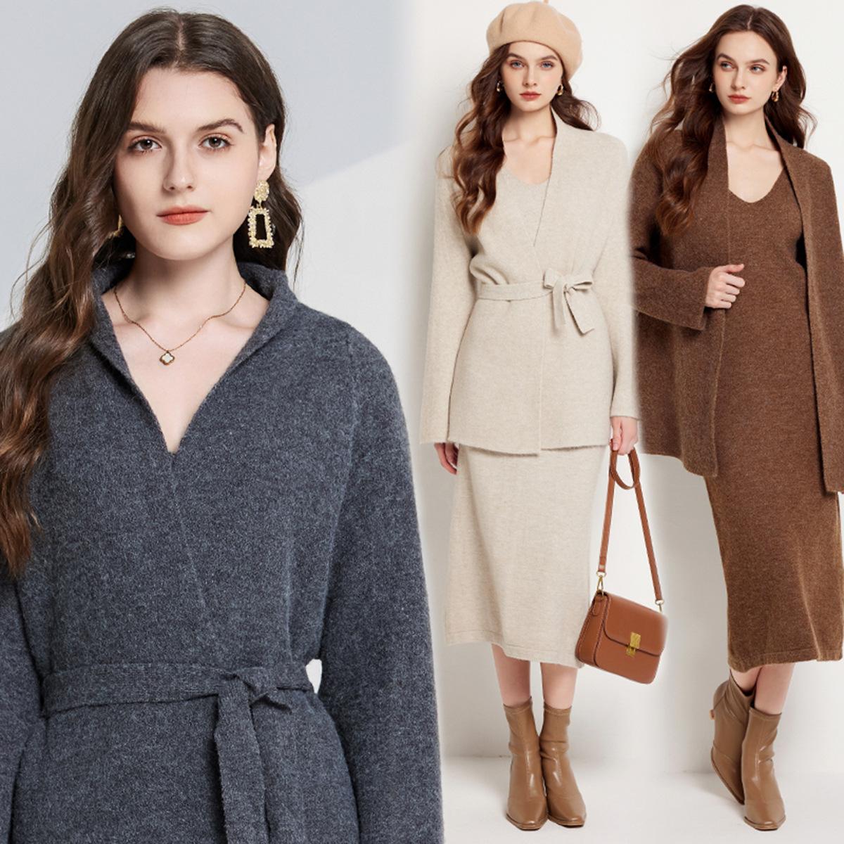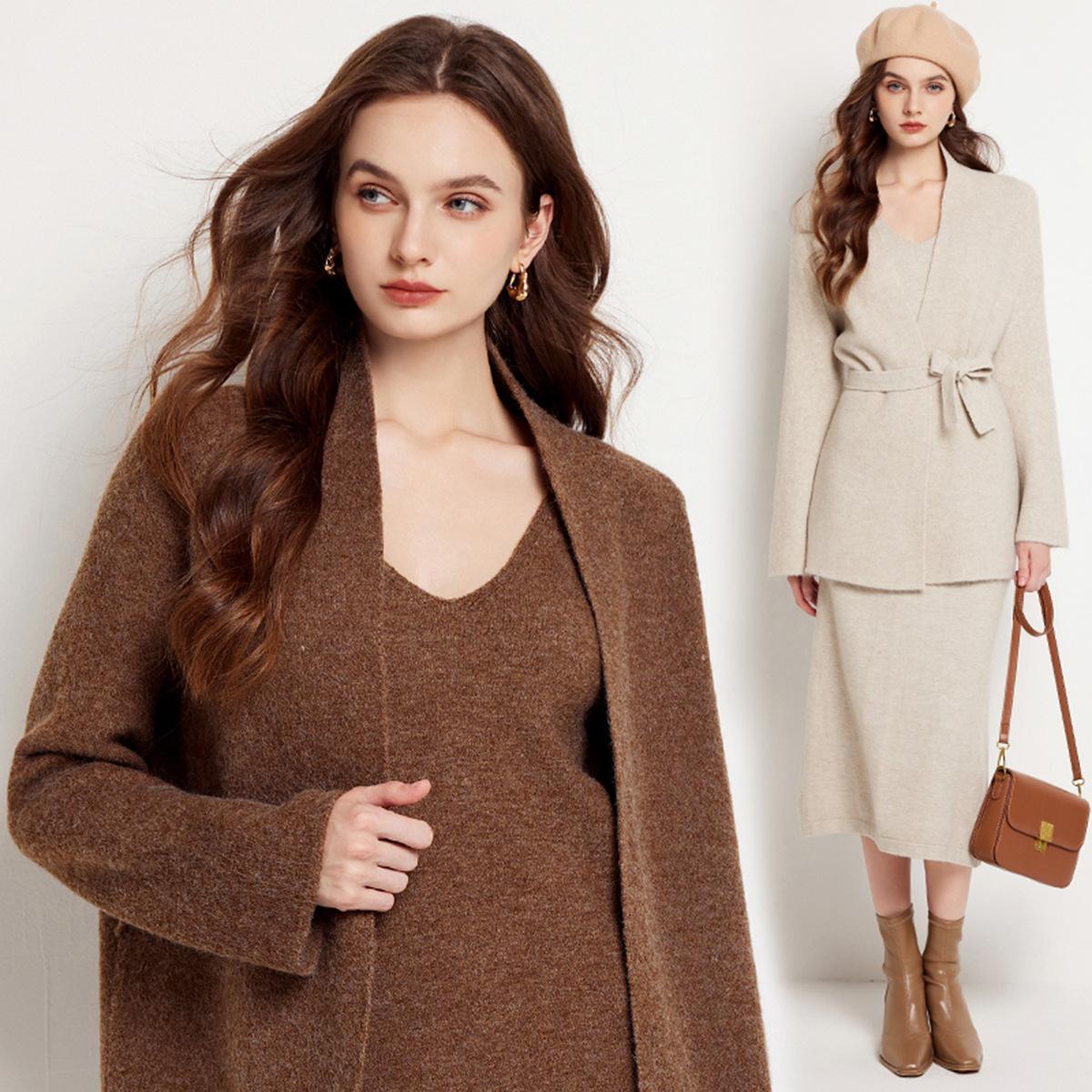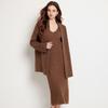 Foto real moda otoño e invierno simple vestido chaleco de terciopelo de conejo encaje abrigo suelto conjunto de dos piezas