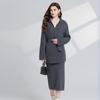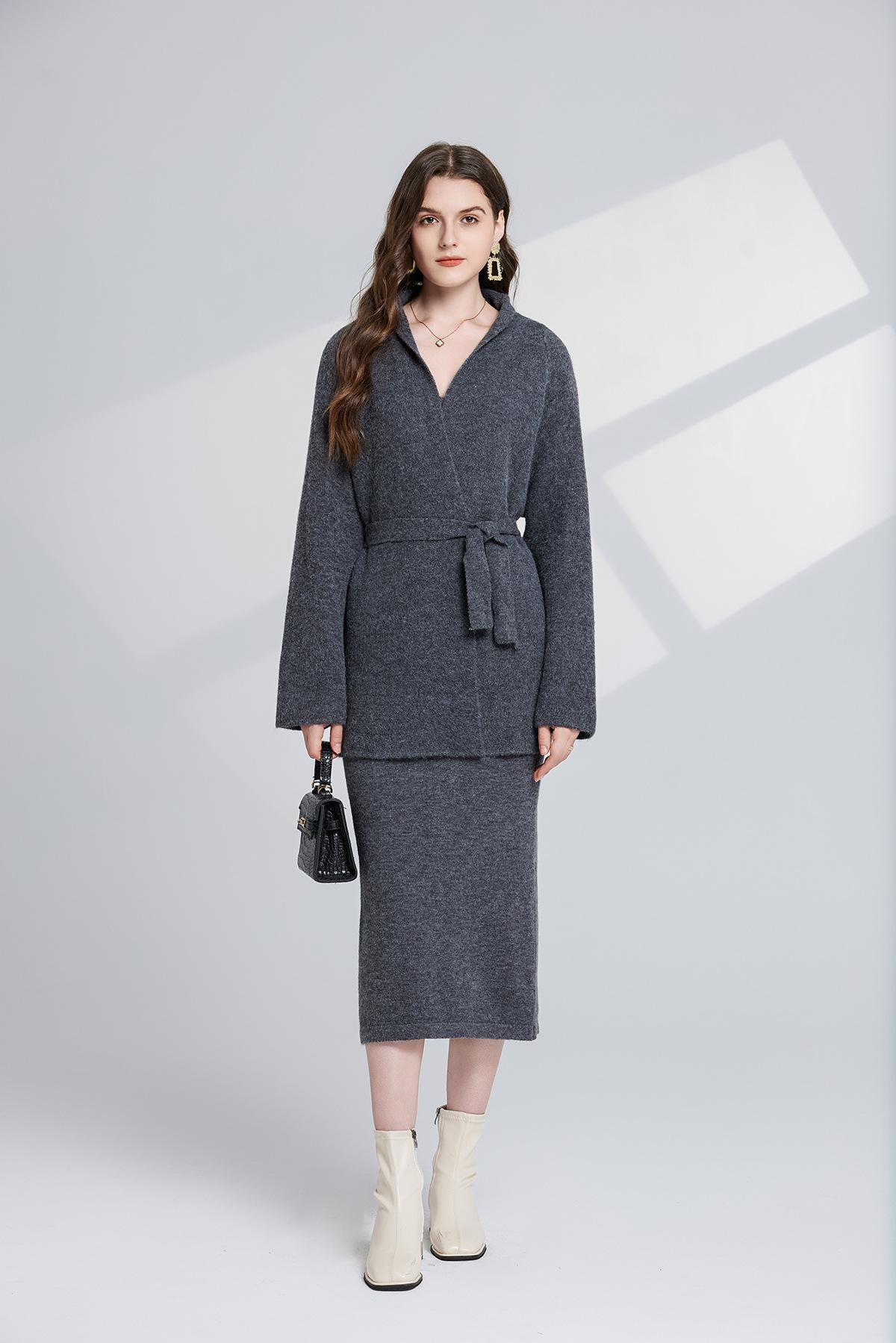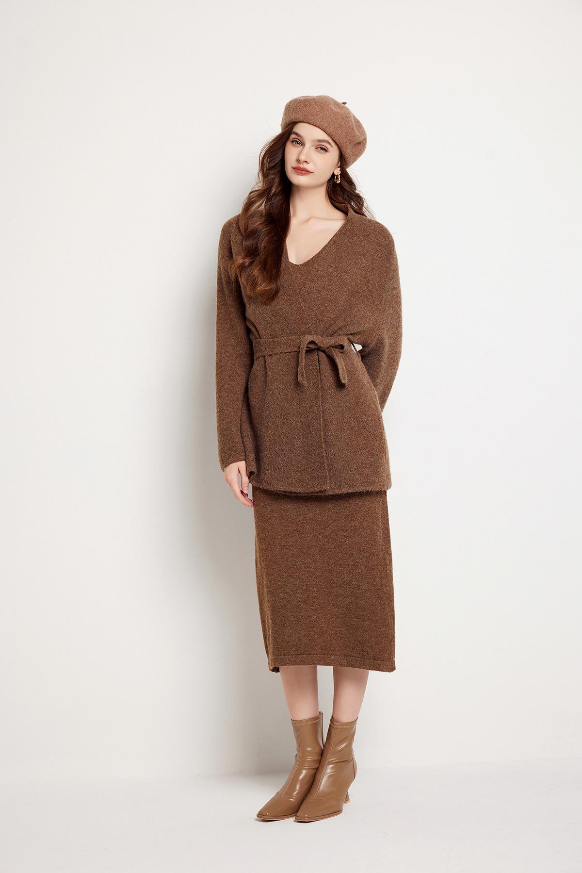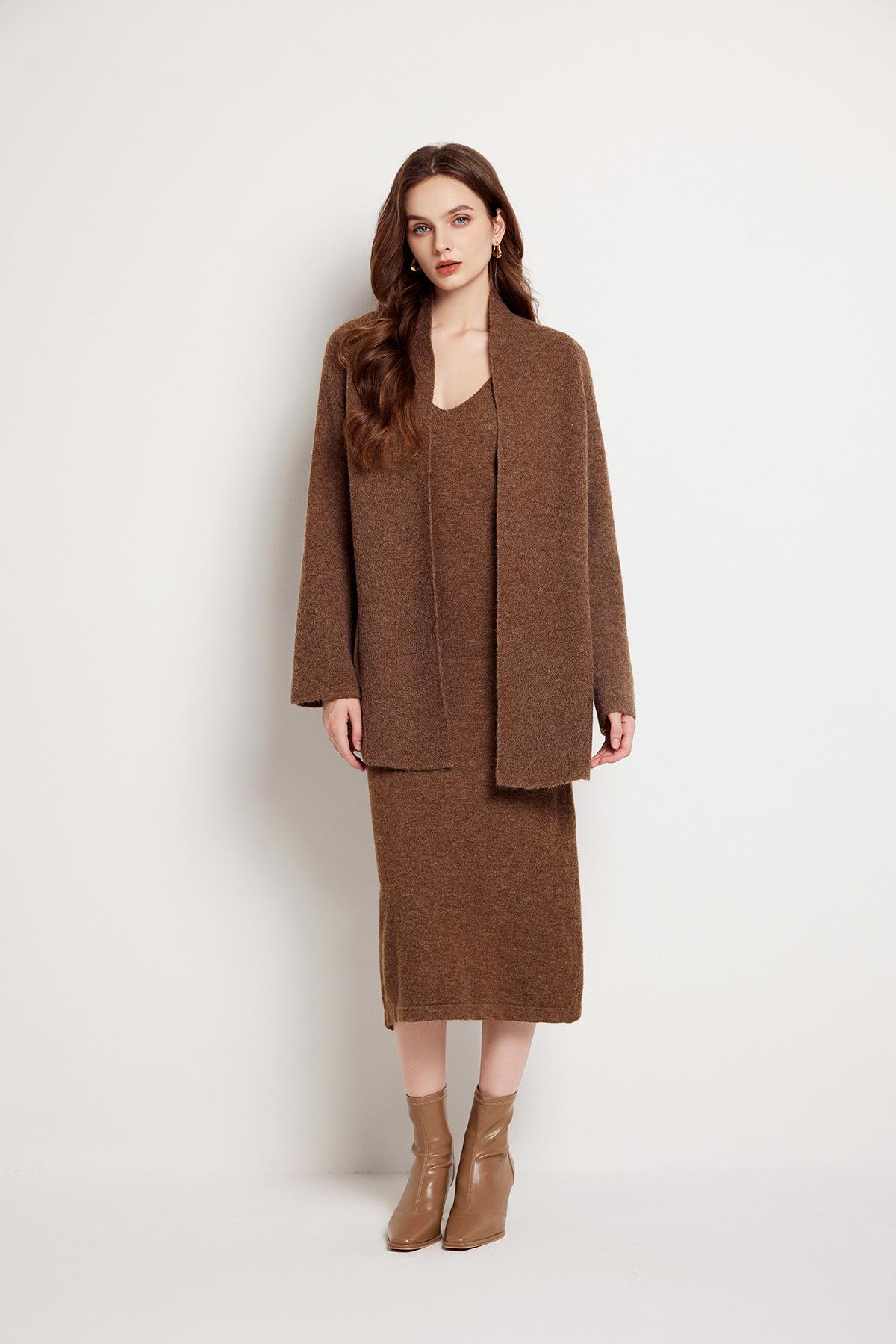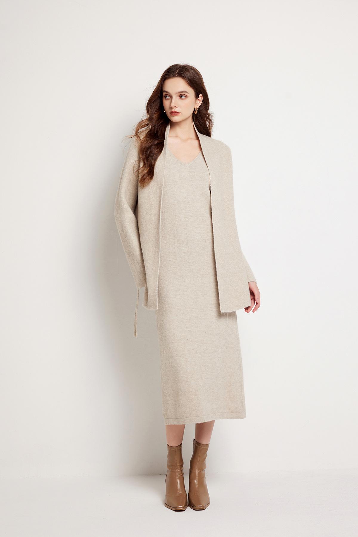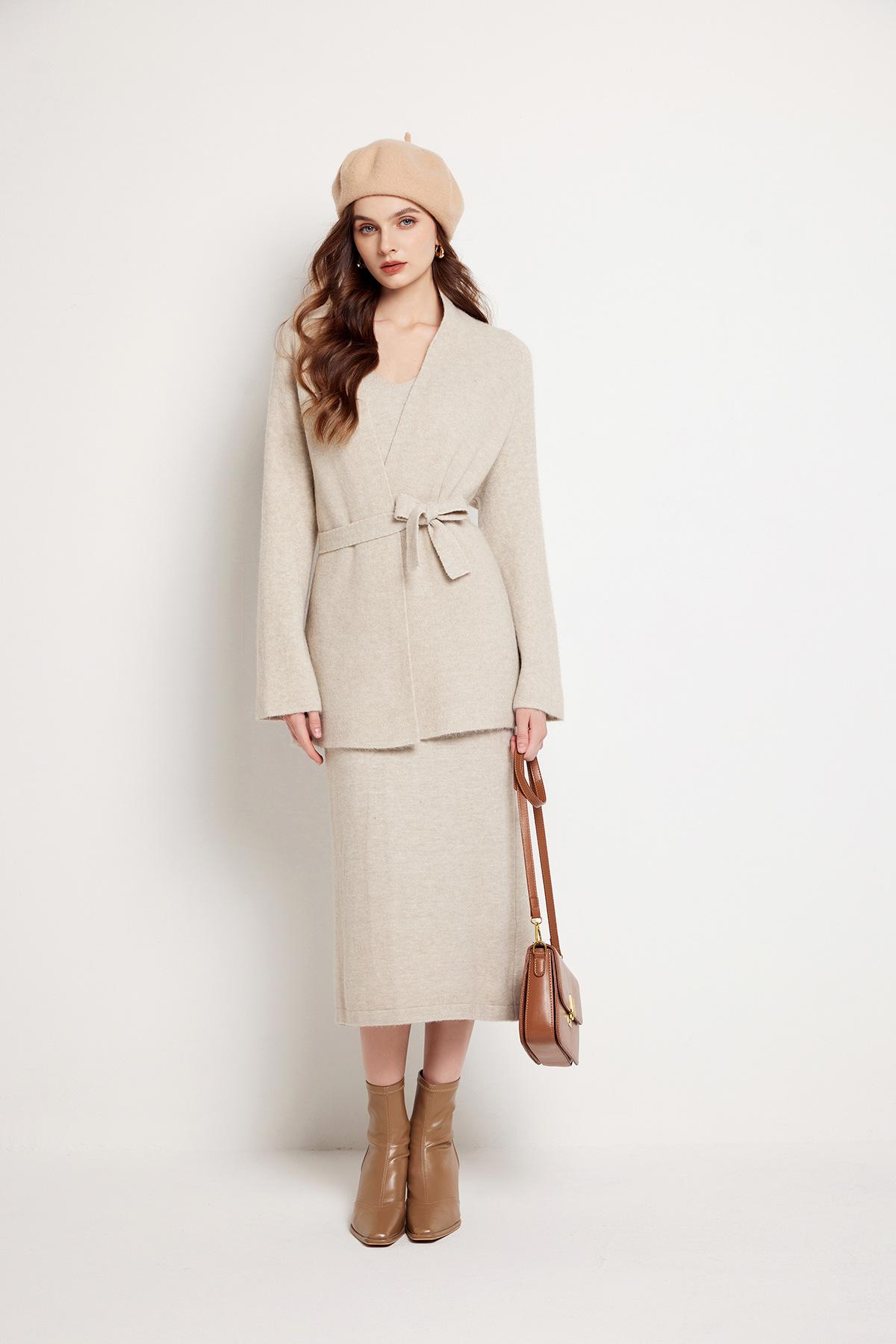 Foto real moda otoño e invierno simple vestido chaleco de terciopelo de conejo encaje abrigo suelto conjunto de dos piezas