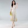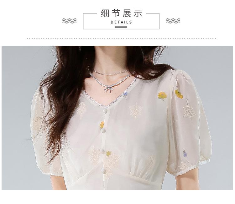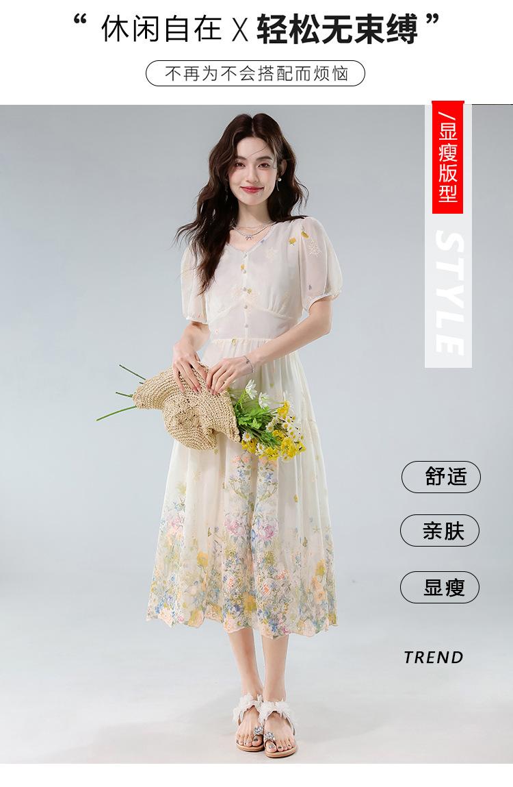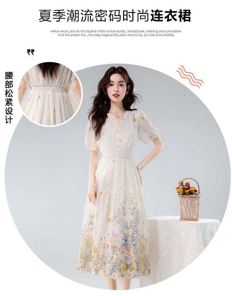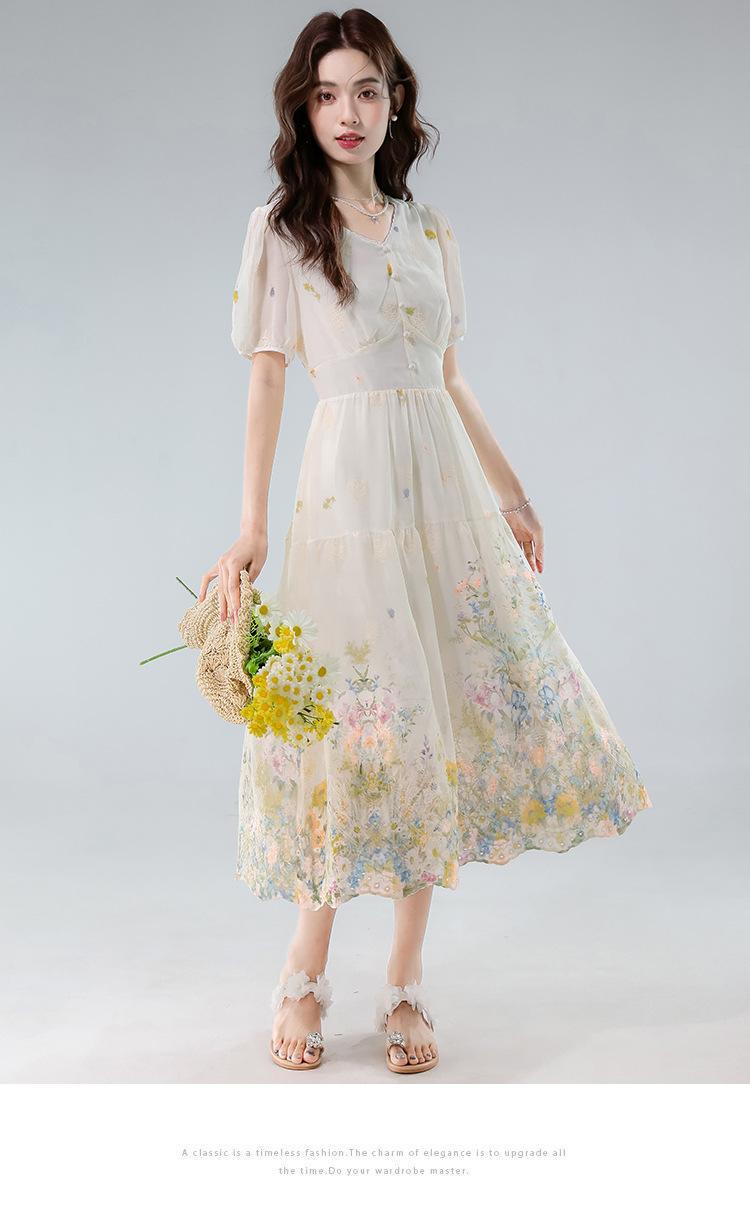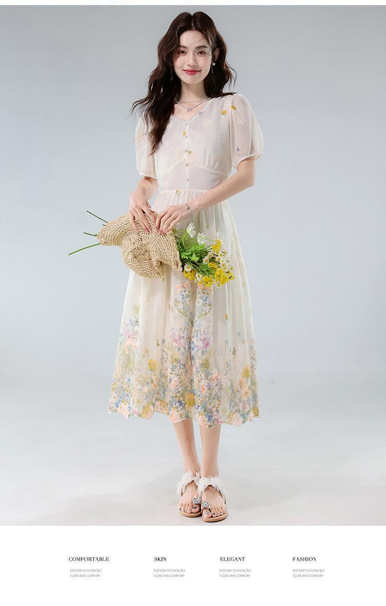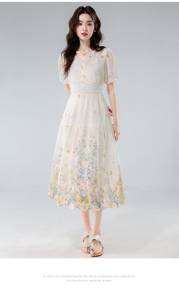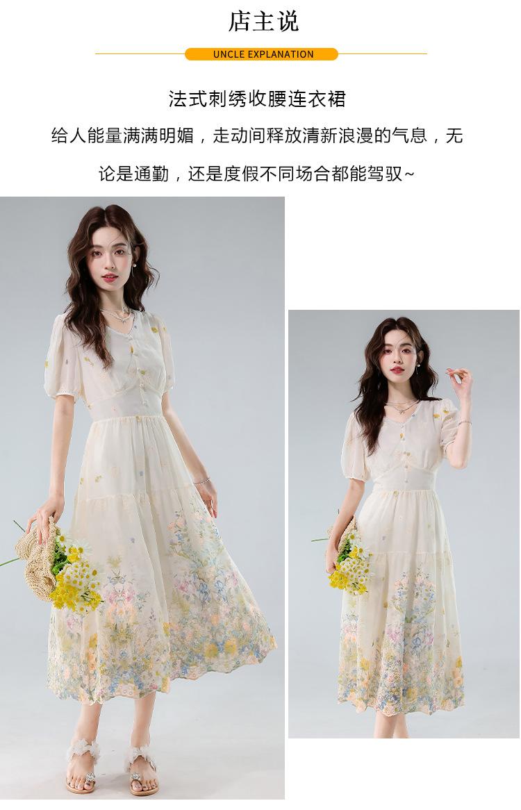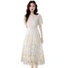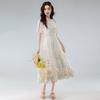 Vestido Midi Elegante Romántico Francés de Alta Gama 2025 Verano Nuevo Vestido con Bordado Pesado que Ciñe la Cintura para Mujer