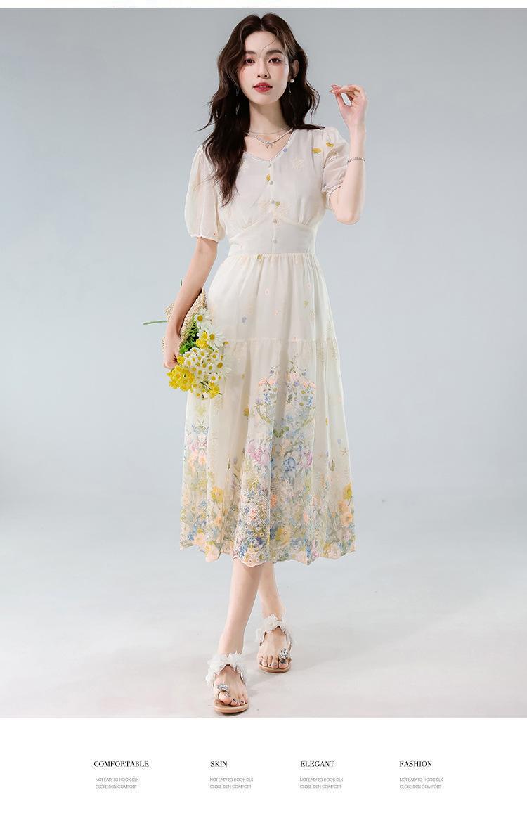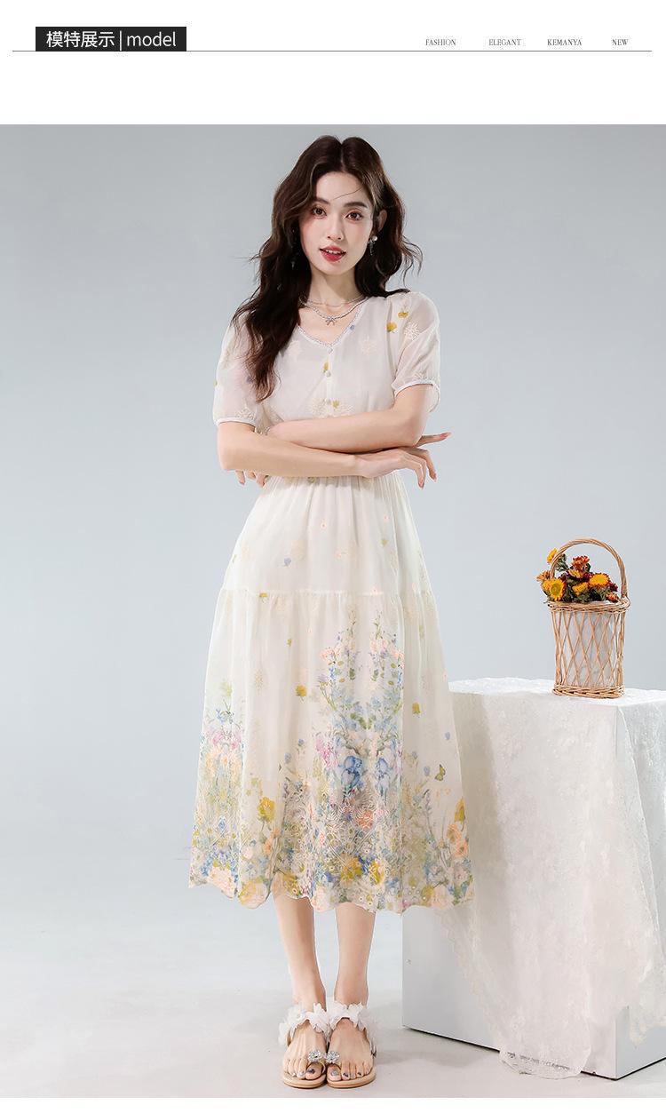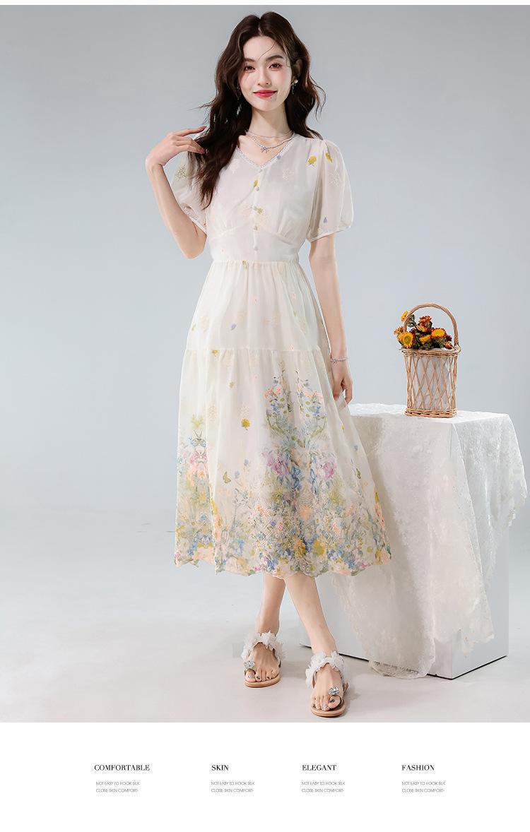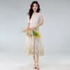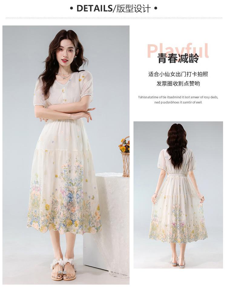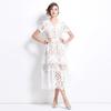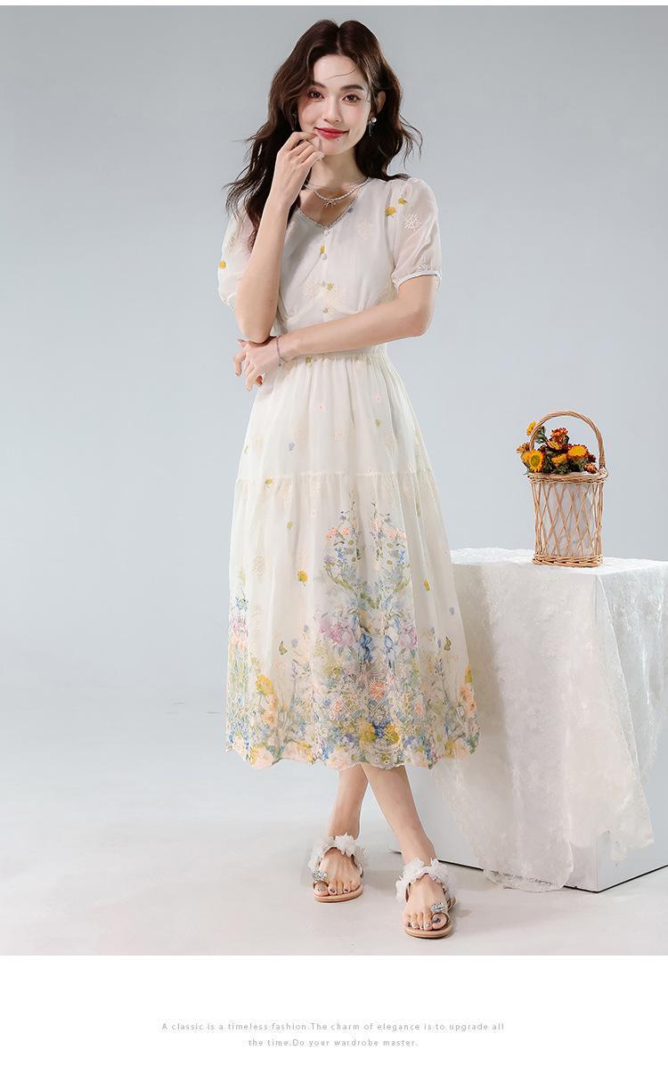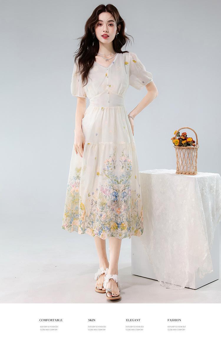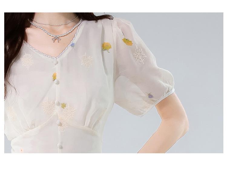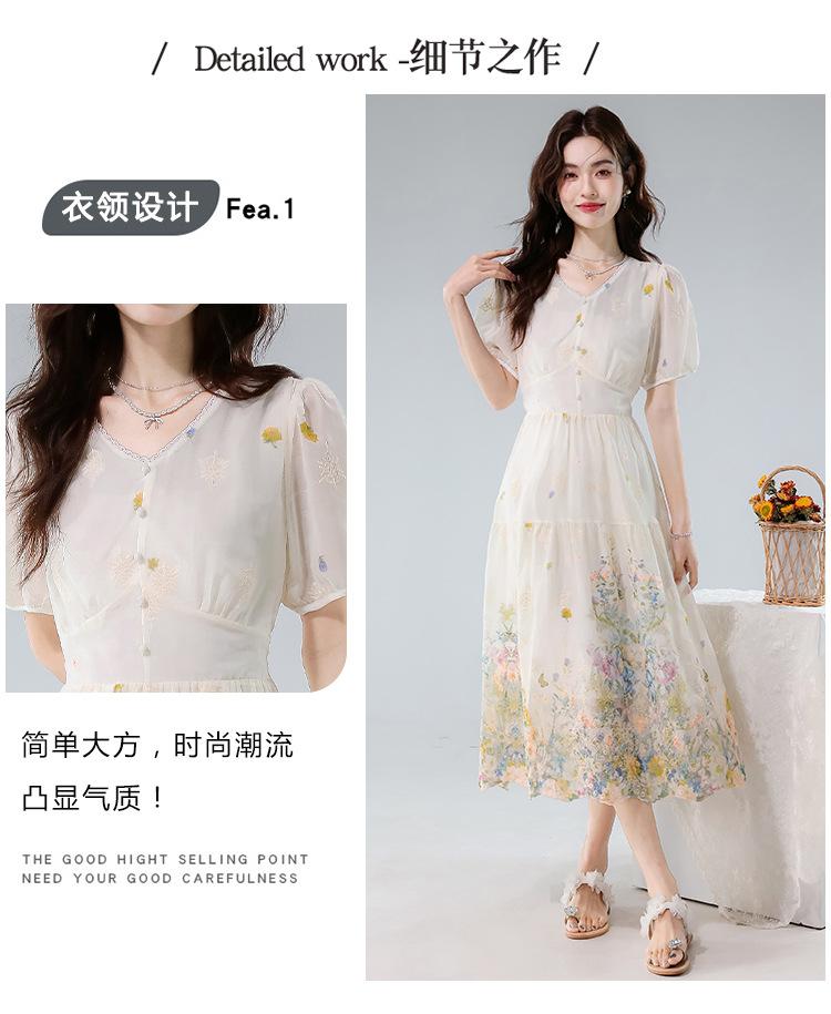 Vestido Midi Elegante Romántico Francés de Alta Gama 2025 Verano Nuevo Vestido con Bordado Pesado que Ciñe la Cintura para Mujer