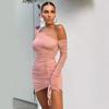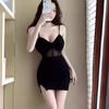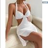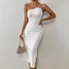 Moda europea y americana vestido de chica caliente sin tirantes con cuello halter sexy sin espalda con abertura falda ajustada a la cadera
