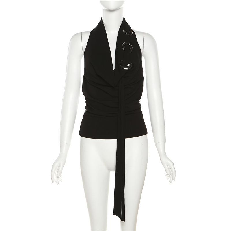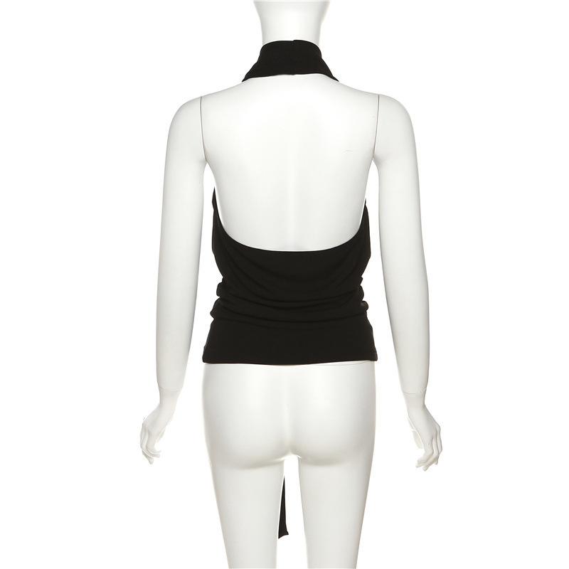 Estilo Europeo y Americano Transfronterizo 2025 Verano Nuevo Chaleco Halter sin Espalda de Color Puro Sexy Hottie Moda Urbana para Mujer