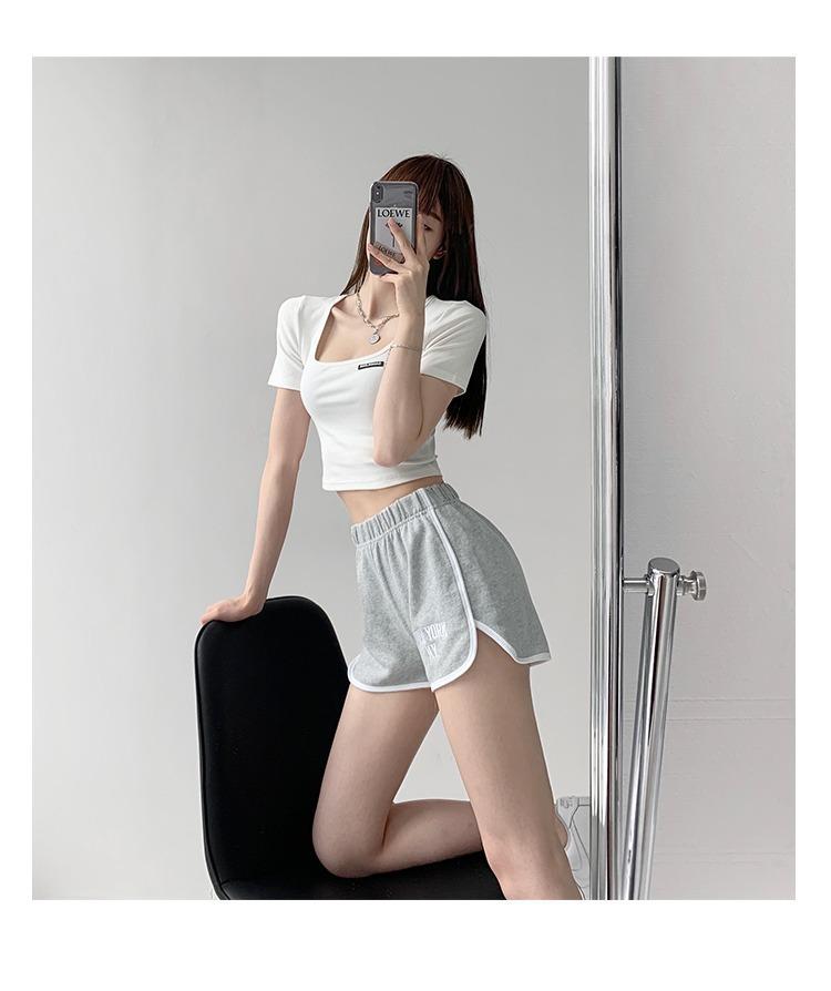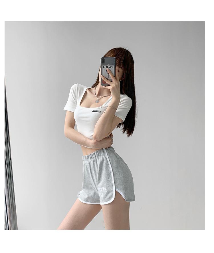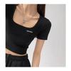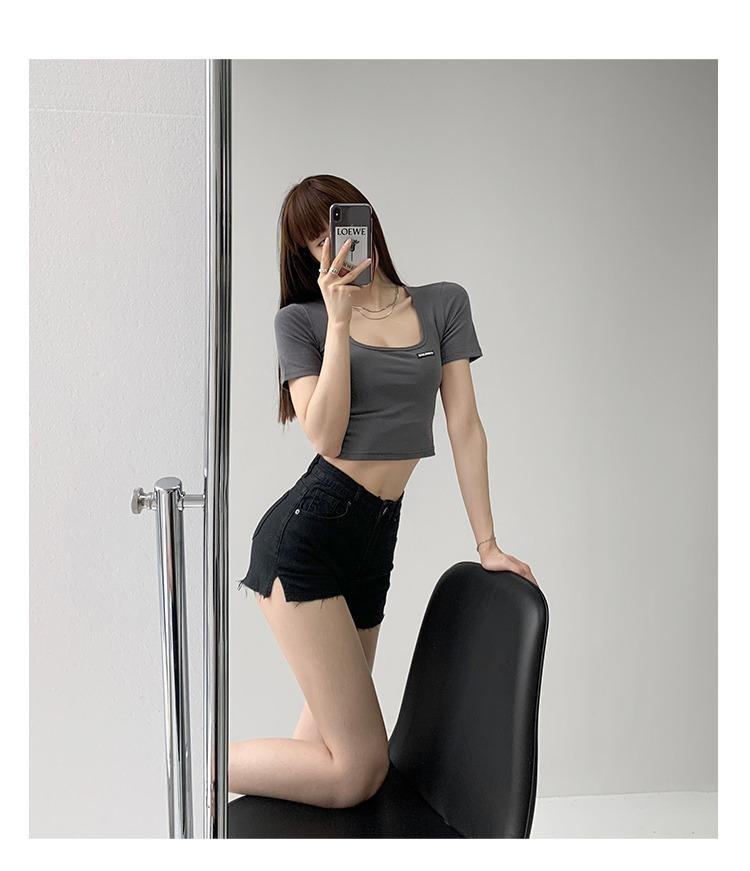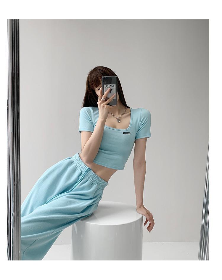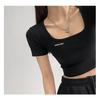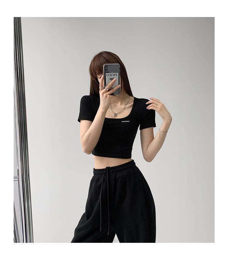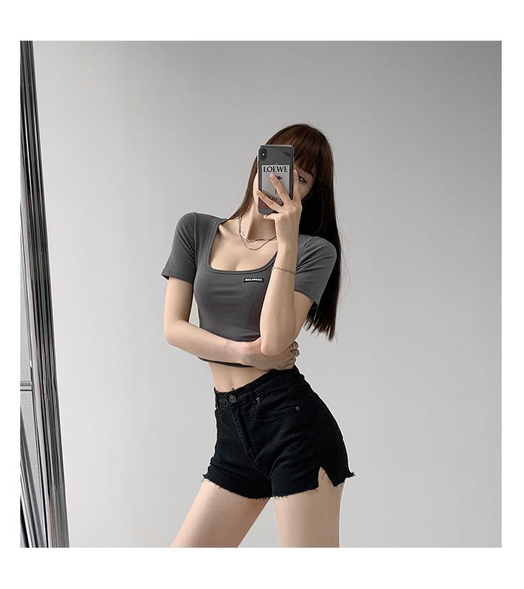 2025 Cuello Cuadrado Clavícula Expuesta Slim Camiseta Básica de Manga Corta Ombliguera Estudiante Top Corto Estudiante Chica Trbottomy Exportación