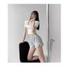 K13#Foto Oficial Minnie Cuello Cuadrado Clavícula Camiseta Básica Manga Corta Ombligo Descubierto Camiseta Color Sólido Elástica Ajustada Top para Mujer