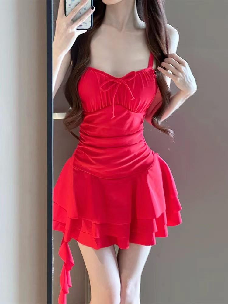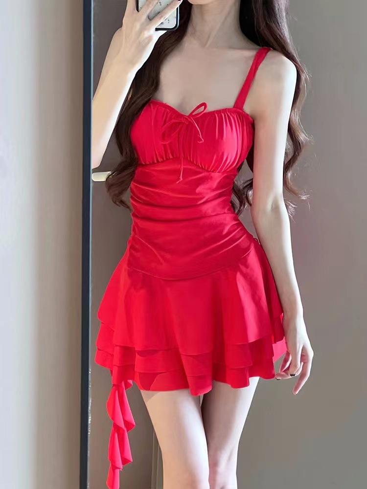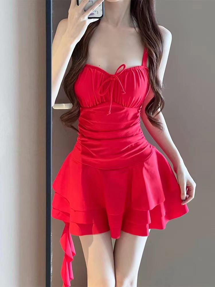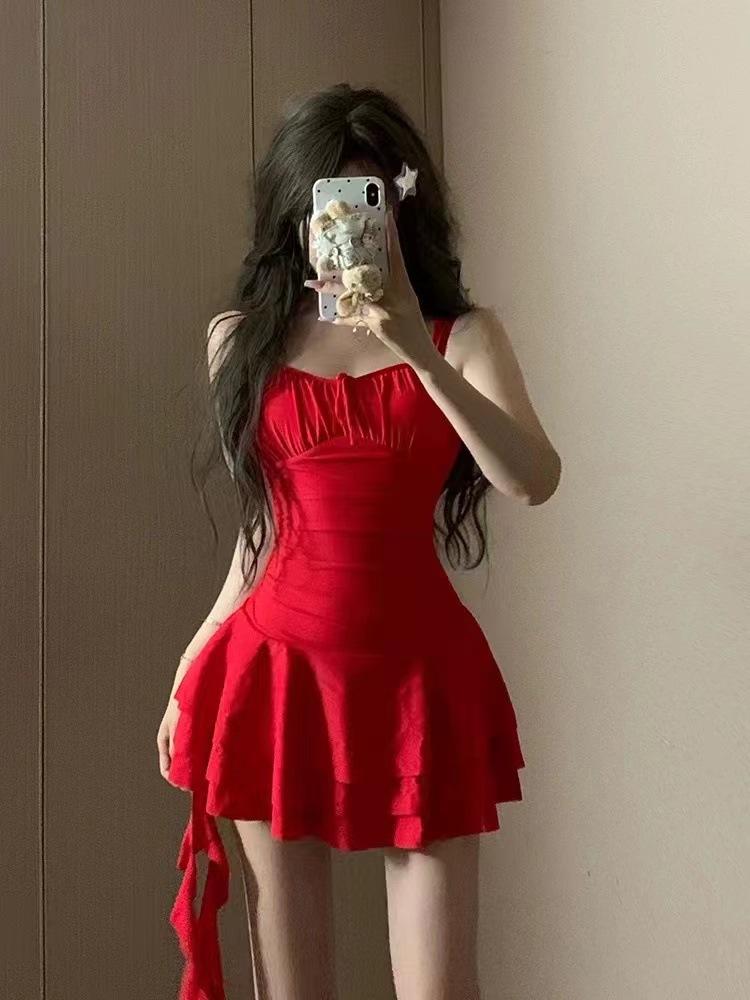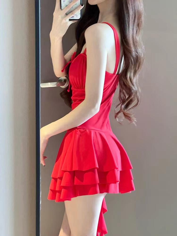 Traje de baño de una pieza para mujer, estilo falda, pequeño, de alta gama, conservador, para vacaciones en la playa, para chicas gorditas (2024)