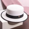 Sombrero para Mujer Nuevo Verano Exterior Viaje Orilla del Mar Parasol Playa Francés Casual Versátil Paja Copa Plana Sombrero de Moda