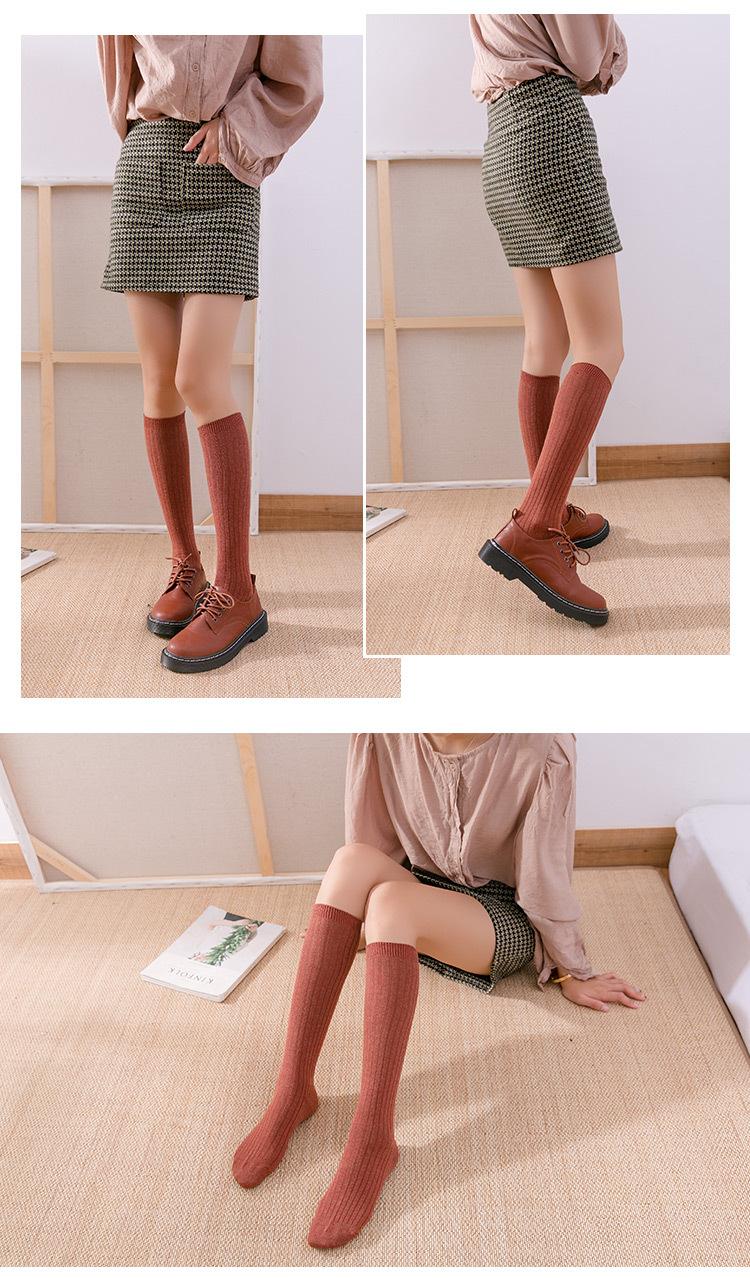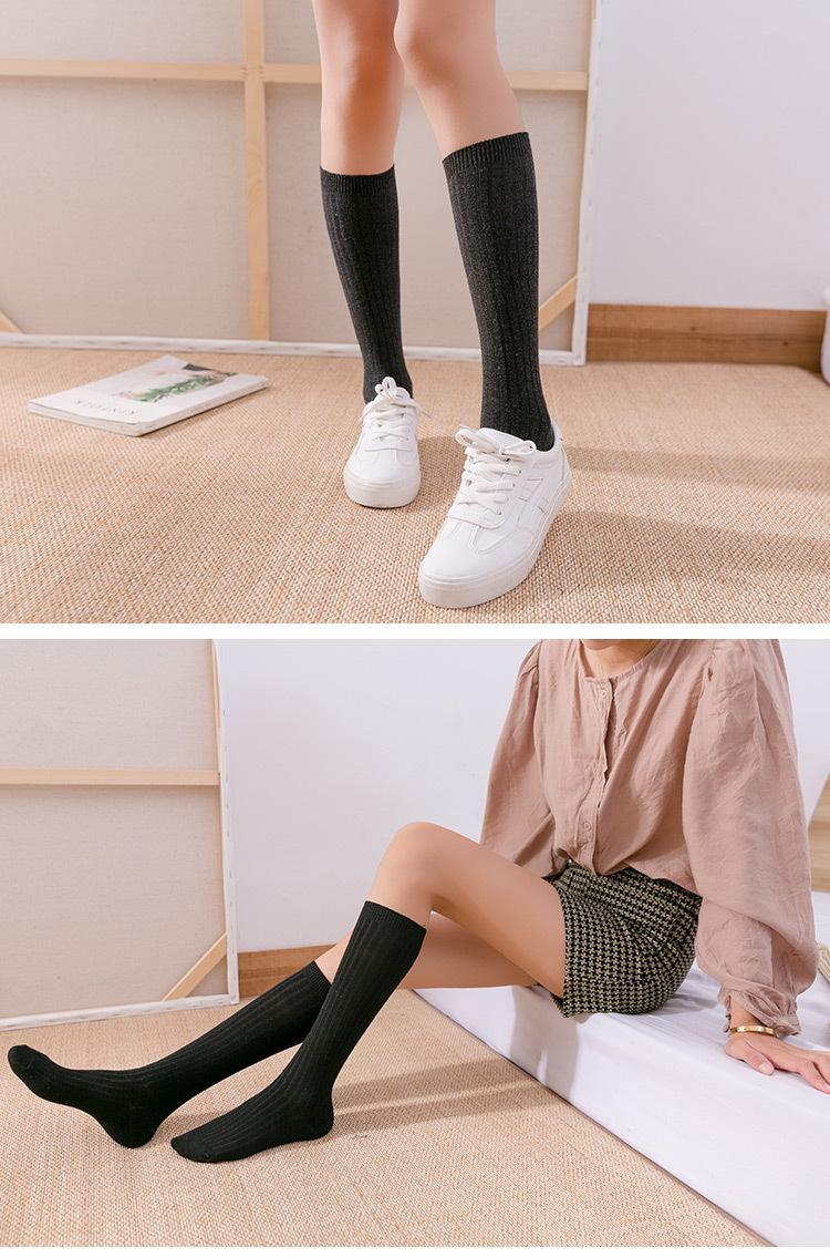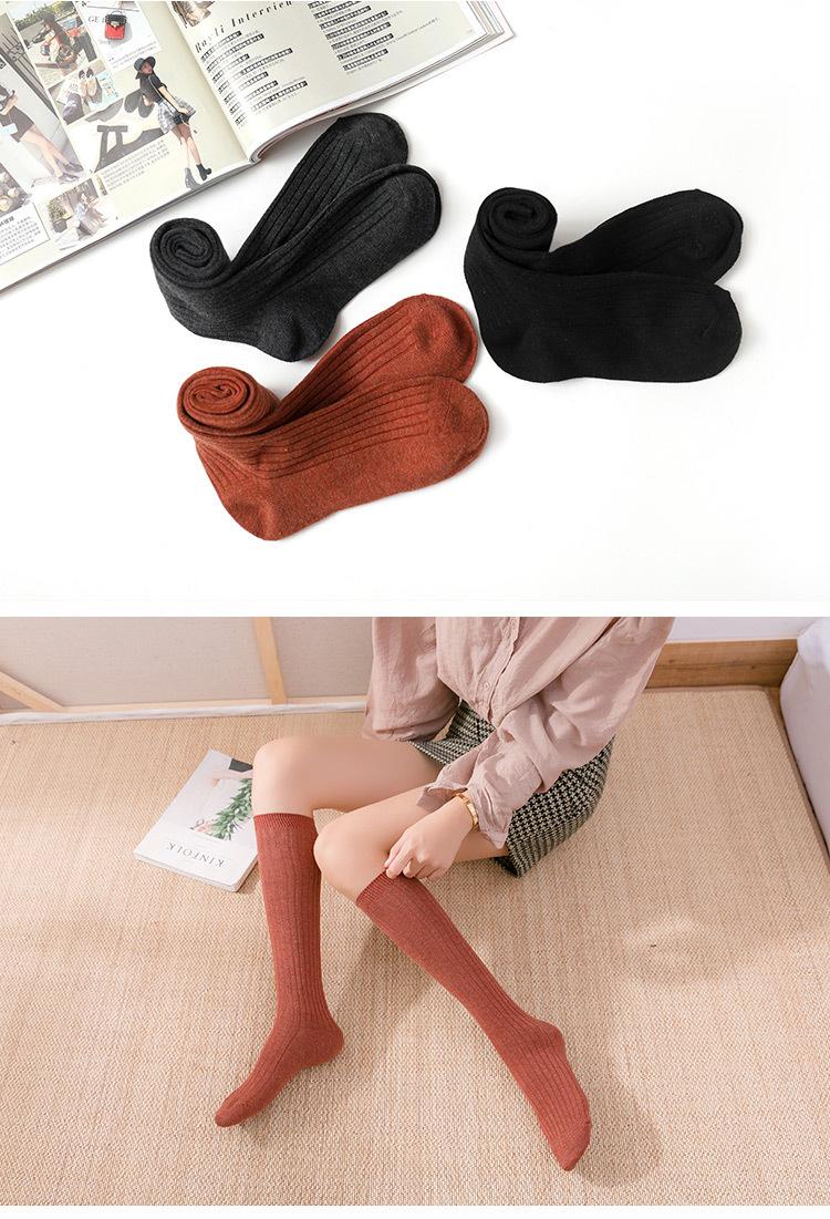 Calcetines hasta la rodilla de otoño para mujer estilo japonés calcetines de algodón negros debajo de la rodilla calcetines para botas cortas de estudiante venta al por mayor