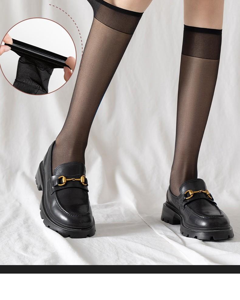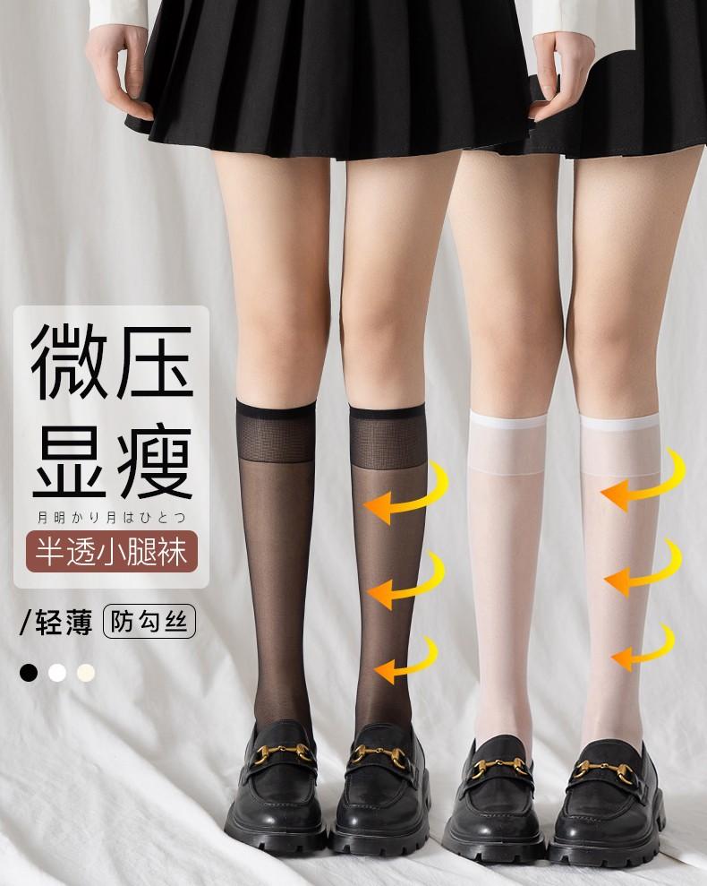 Calcetines Altos hasta la Rodilla Negros para Mujer, Calcetines Finos de Verano hasta Media Pantorrilla, Calcetines Jk por Encima de la Rodilla, Calcetines Largos Adelgazantes de Presión, Primavera y Otoño a la Moda