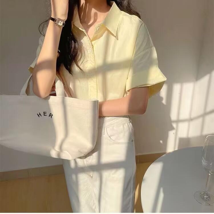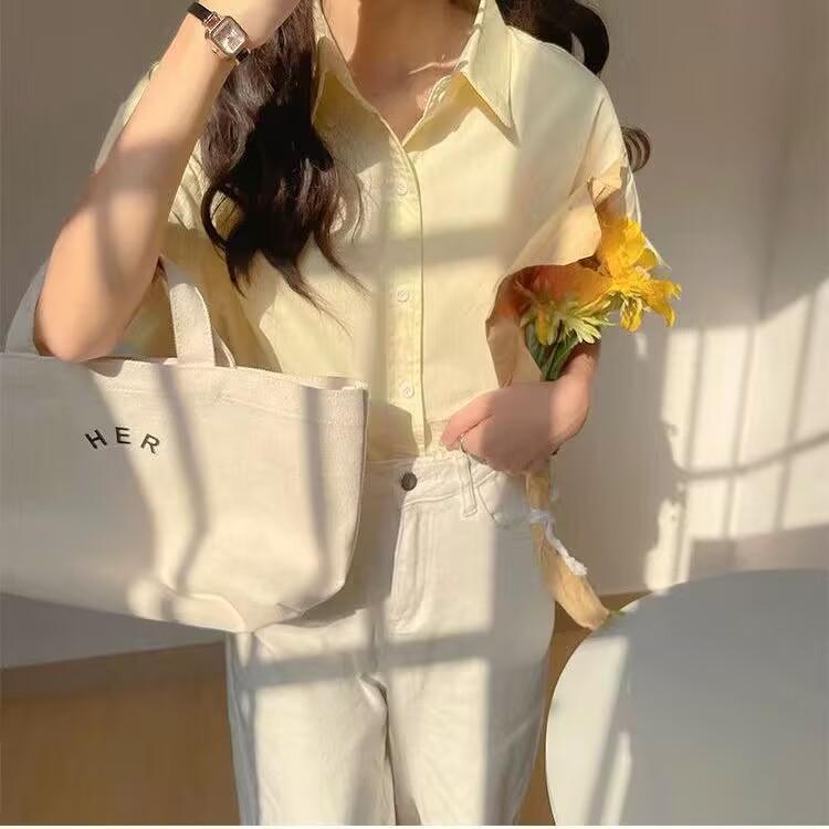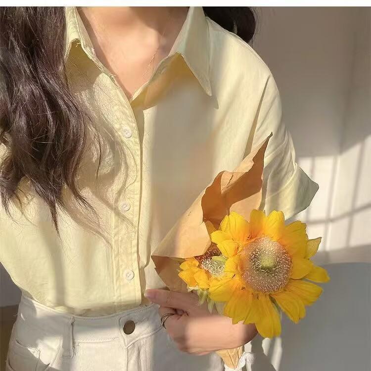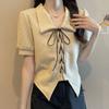 Camisa de Manga Corta para Mujer Amarillo Crema 2025 Verano Nuevo Chic Francés Dulce Diseño Top Nicho Camisa