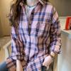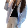 Camisa de Manga Larga Azul Blanco Color Puro Estilo Coreano Fin de Semana Perezoso Trendy 2025 Top Holgado Casual Estilo Boyfriend para Mujer