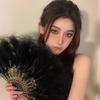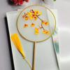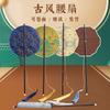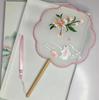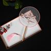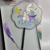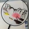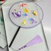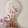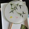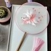 Abanico Redondo Bordado de Estilo Antiguo Chino, Abanico de Danza Versátil para Hanfu, Cheongsam de Palacio, Desfile de Pasarela, Abanico Redondo de Mango Largo con Borla de Seda de Hielo