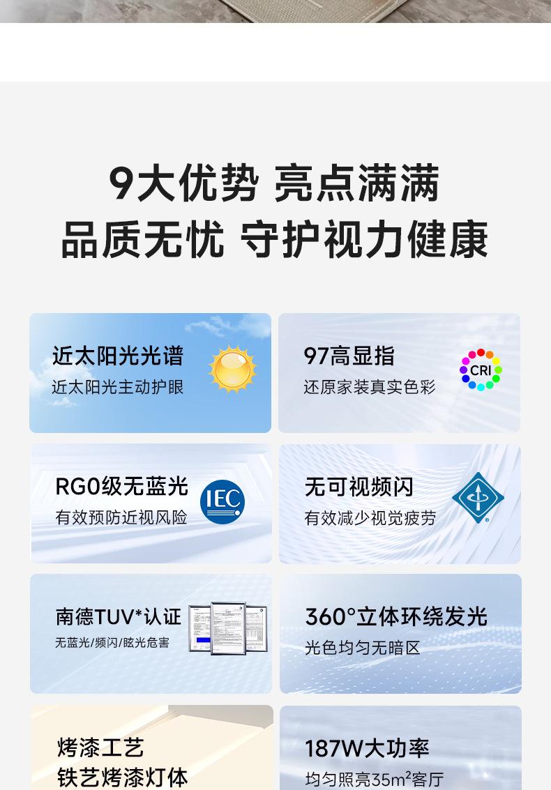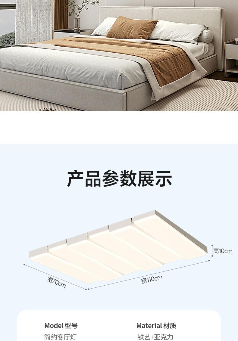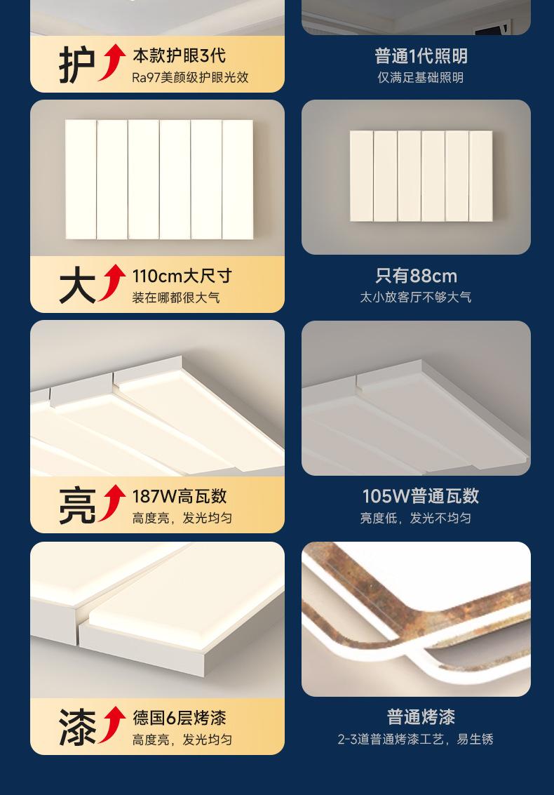 Full spectrum black living room lamp rectangular 110*70cm-tmall elf
