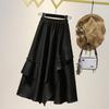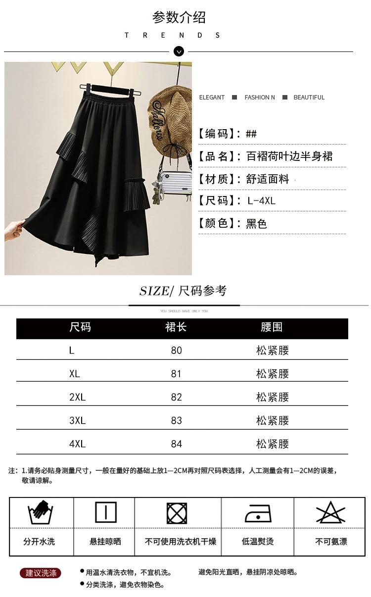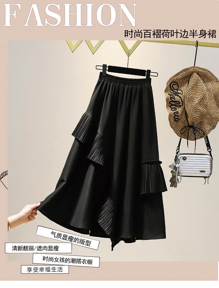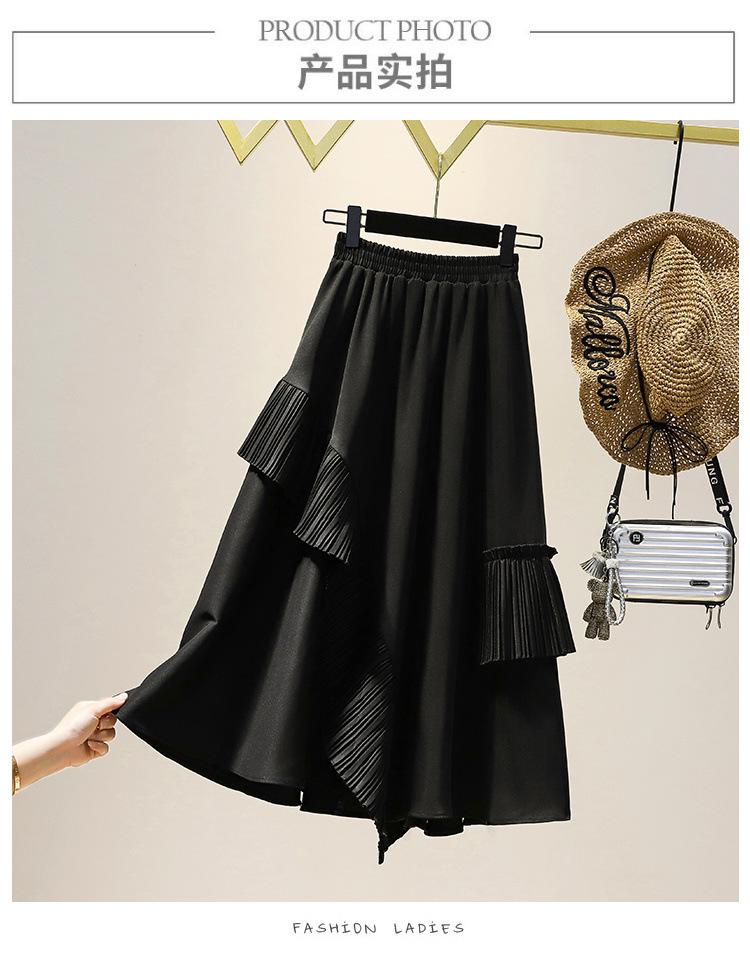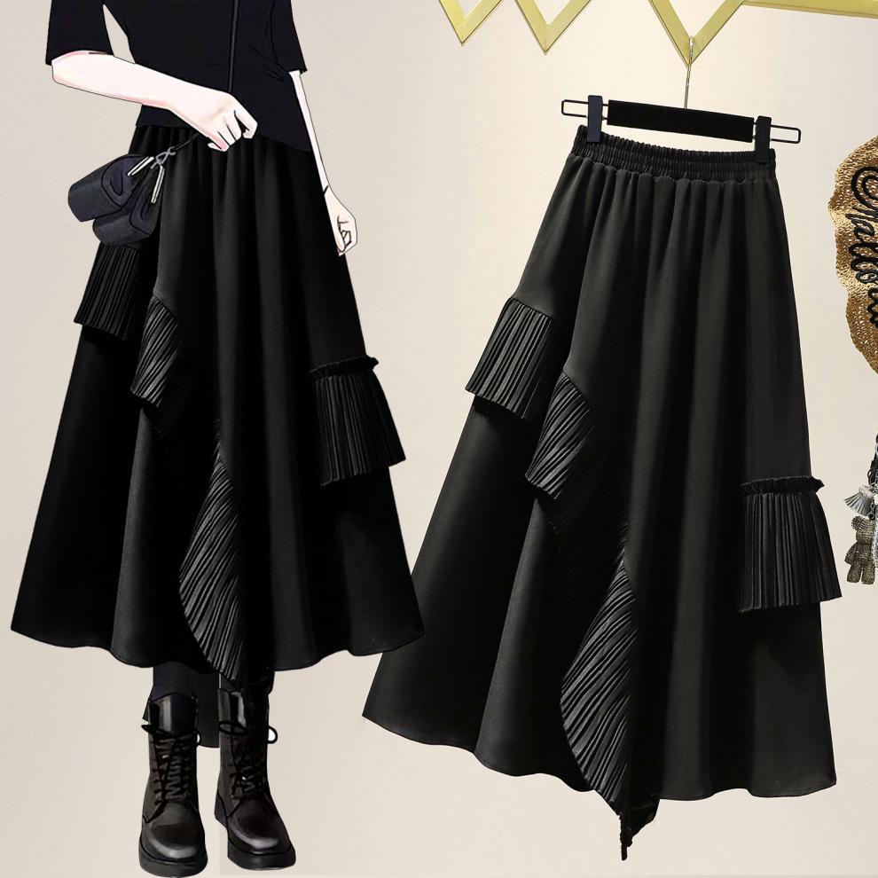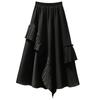 Falda midi negra con volantes Otoño talla grande chica gordita Cintura alta Adelgazante Irregular Línea A Plisada Falda Paraguas