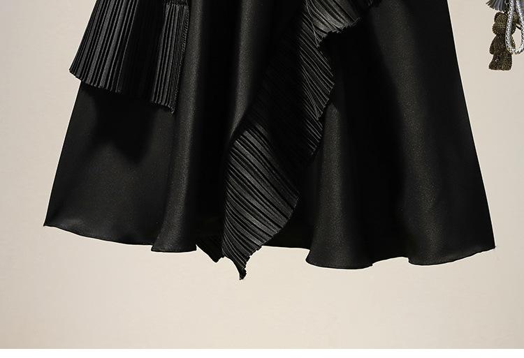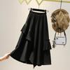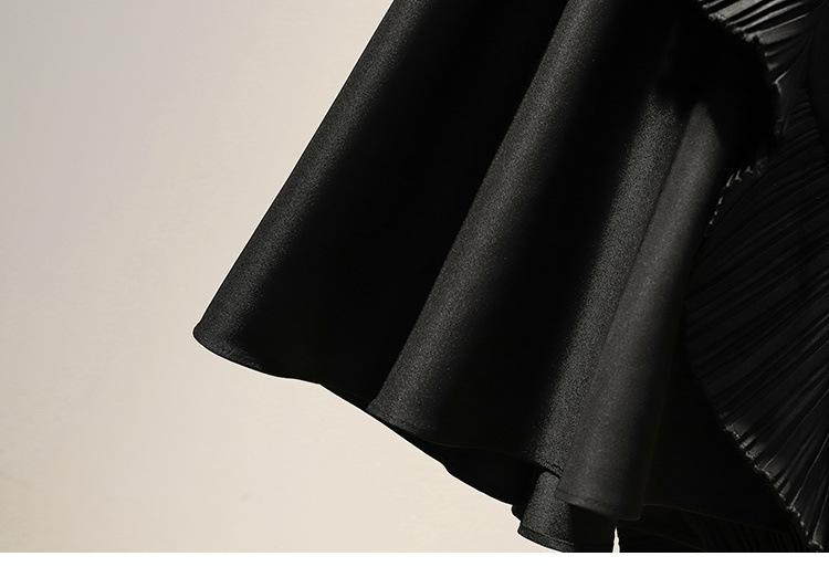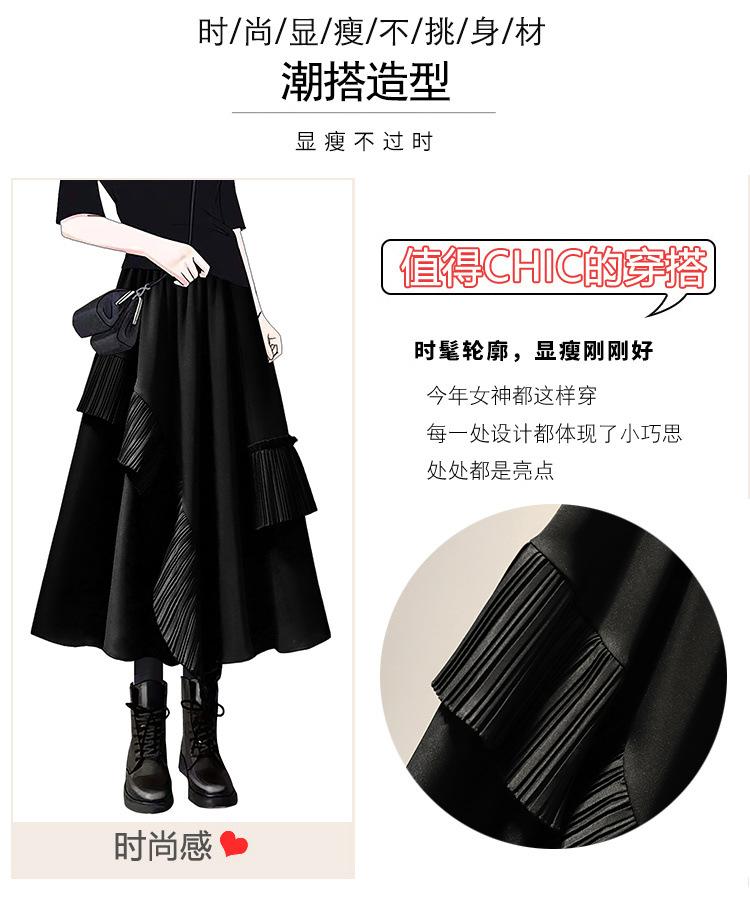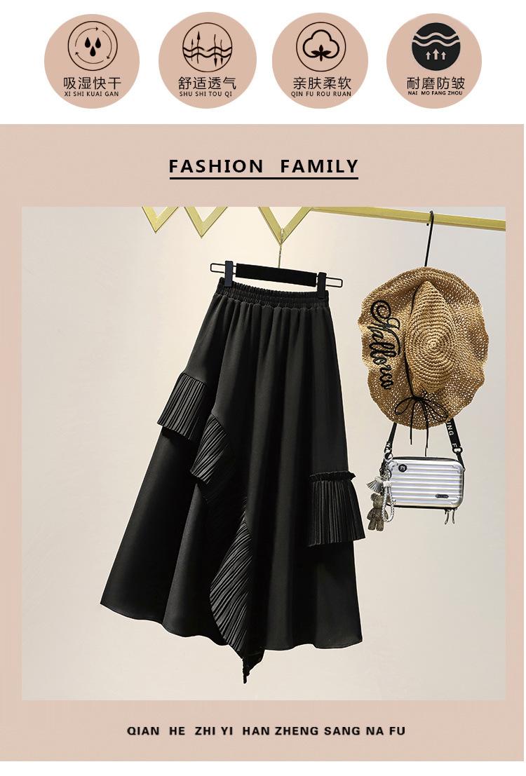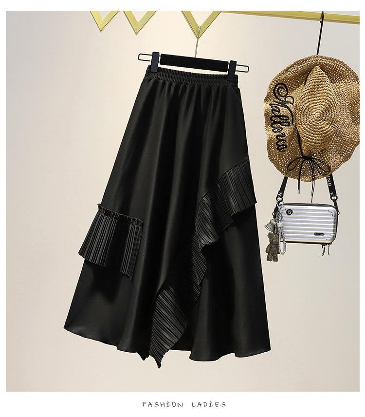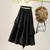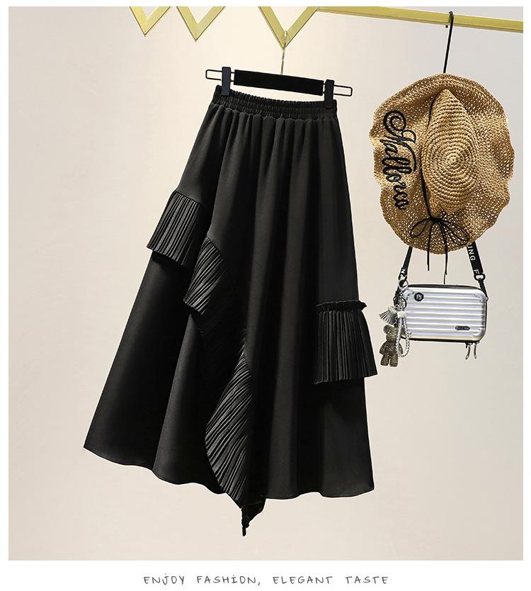 Falda midi negra con volantes Otoño talla grande chica gordita Cintura alta Adelgazante Irregular Línea A Plisada Falda Paraguas