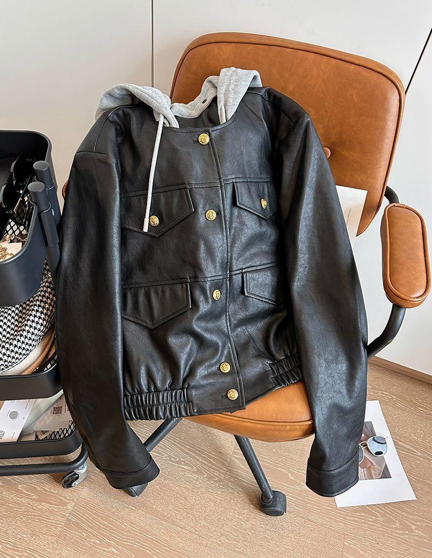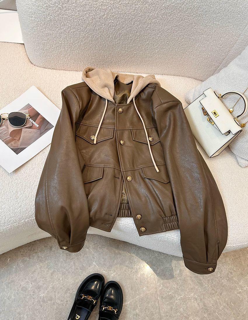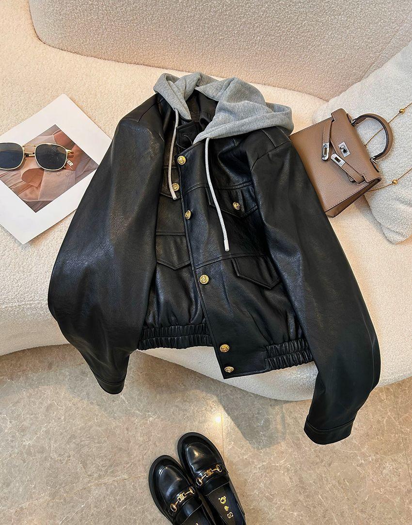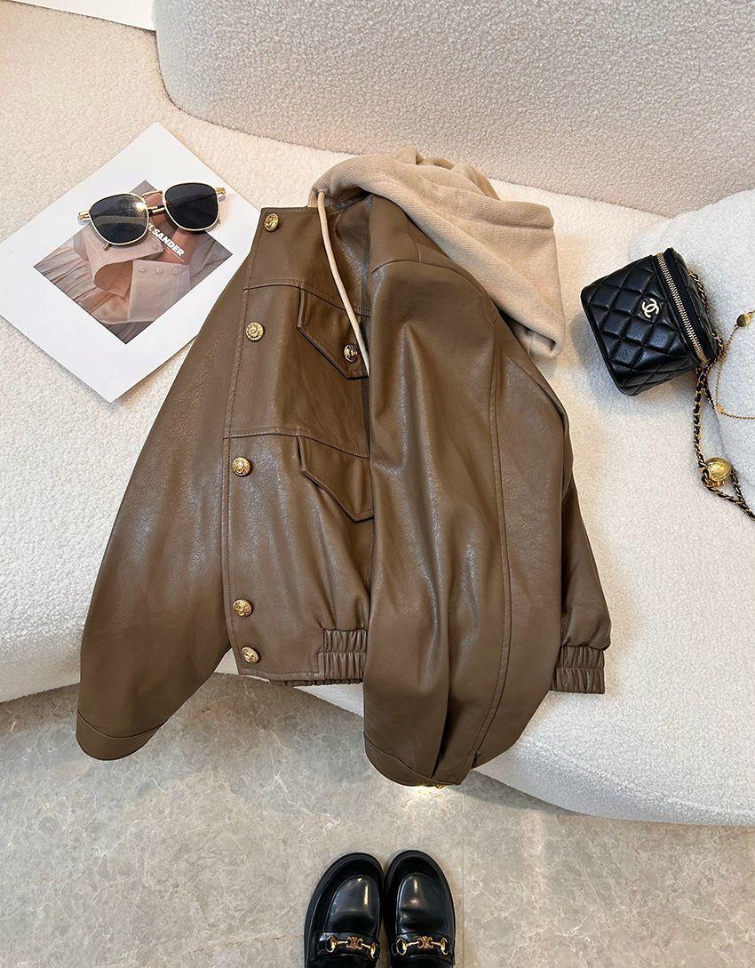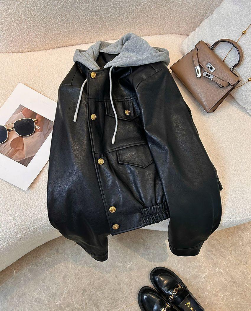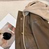 2024 Nuevo Estilo Estilo Occidental Ropa Biker Chaqueta Casual con Capucha Top Holgado Guapo Retro Adelgazante Cuero Otoño para Mujer