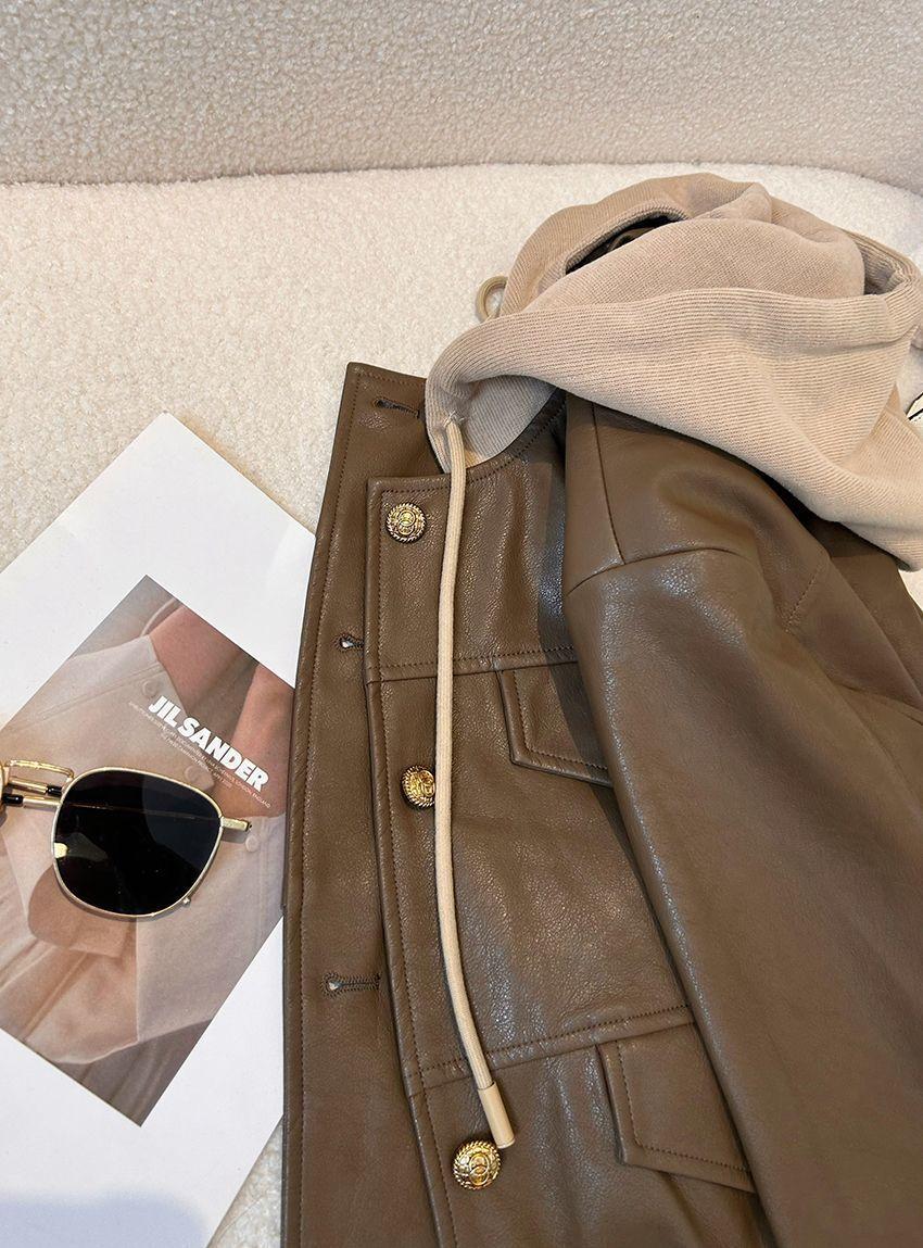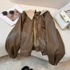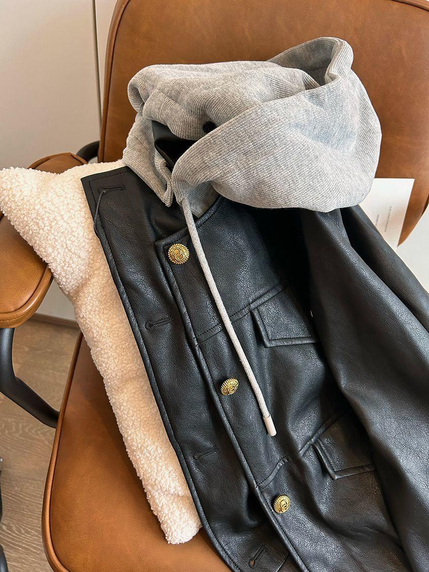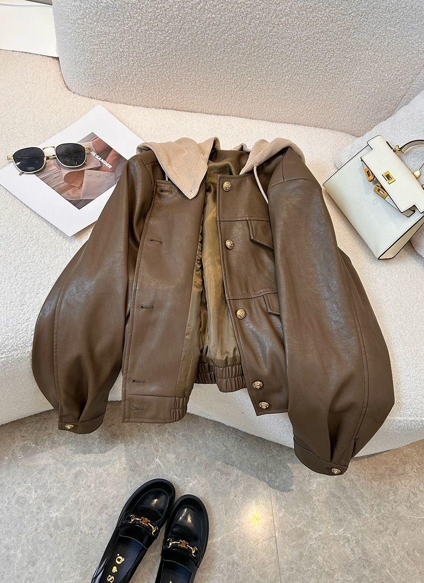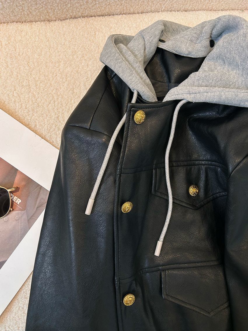 2024 Nuevo Estilo Estilo Occidental Ropa Biker Chaqueta Casual con Capucha Top Holgado Guapo Retro Adelgazante Cuero Otoño para Mujer