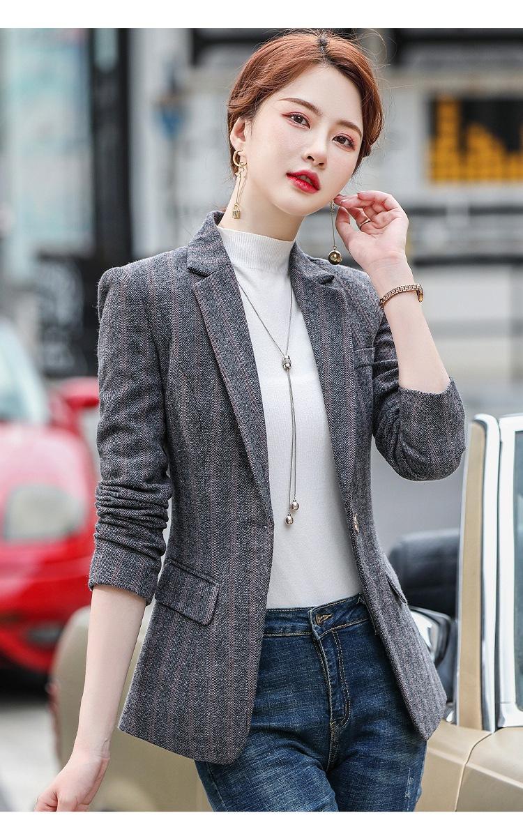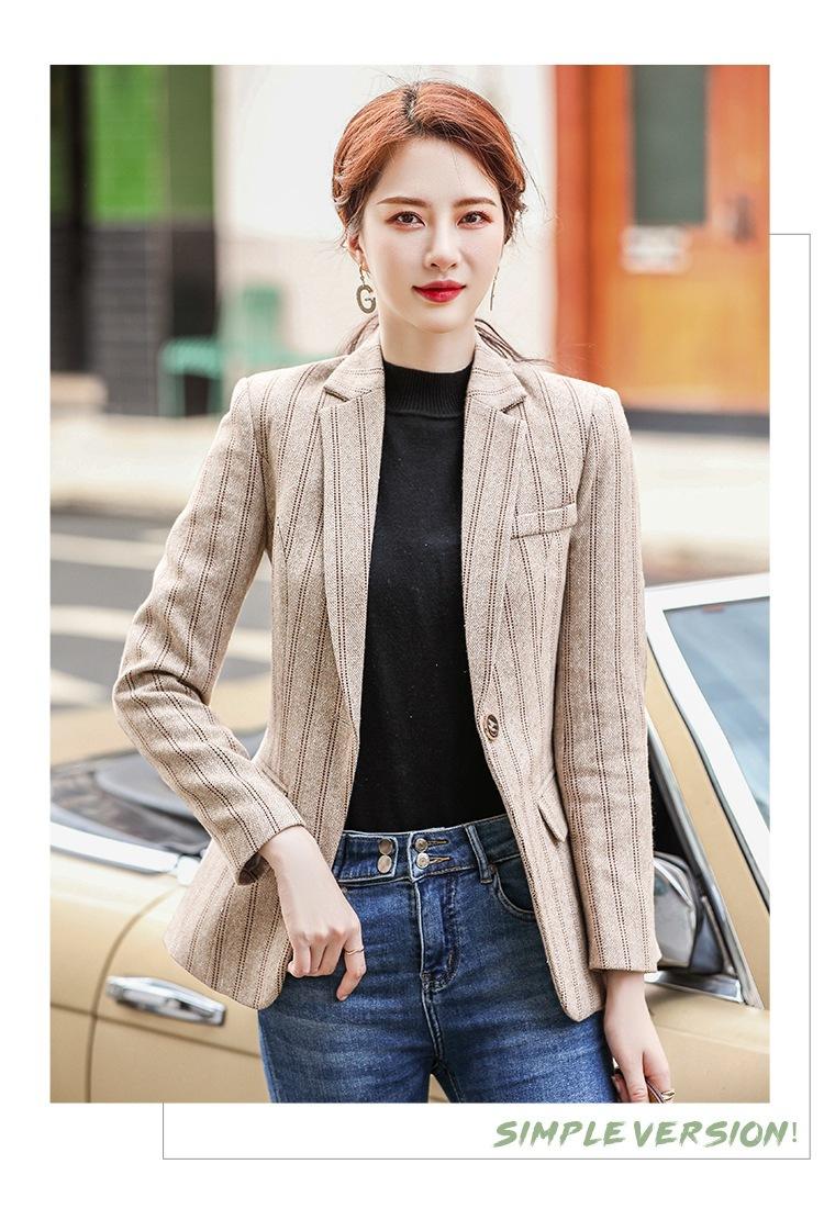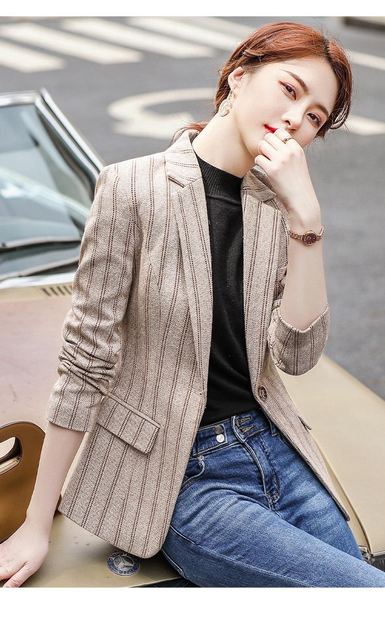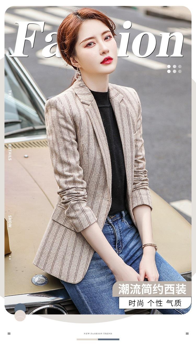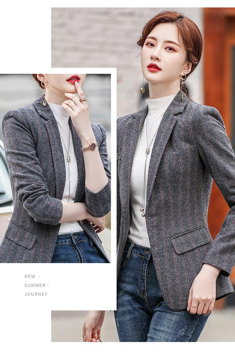 Traje pequeño a rayas azules para mujer, primavera y verano 2023, chaqueta de moda estilo coreano, corte ajustado, manga larga, top de traje versátil