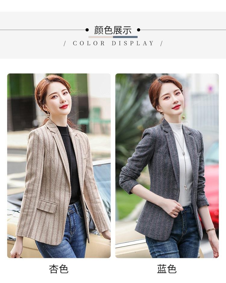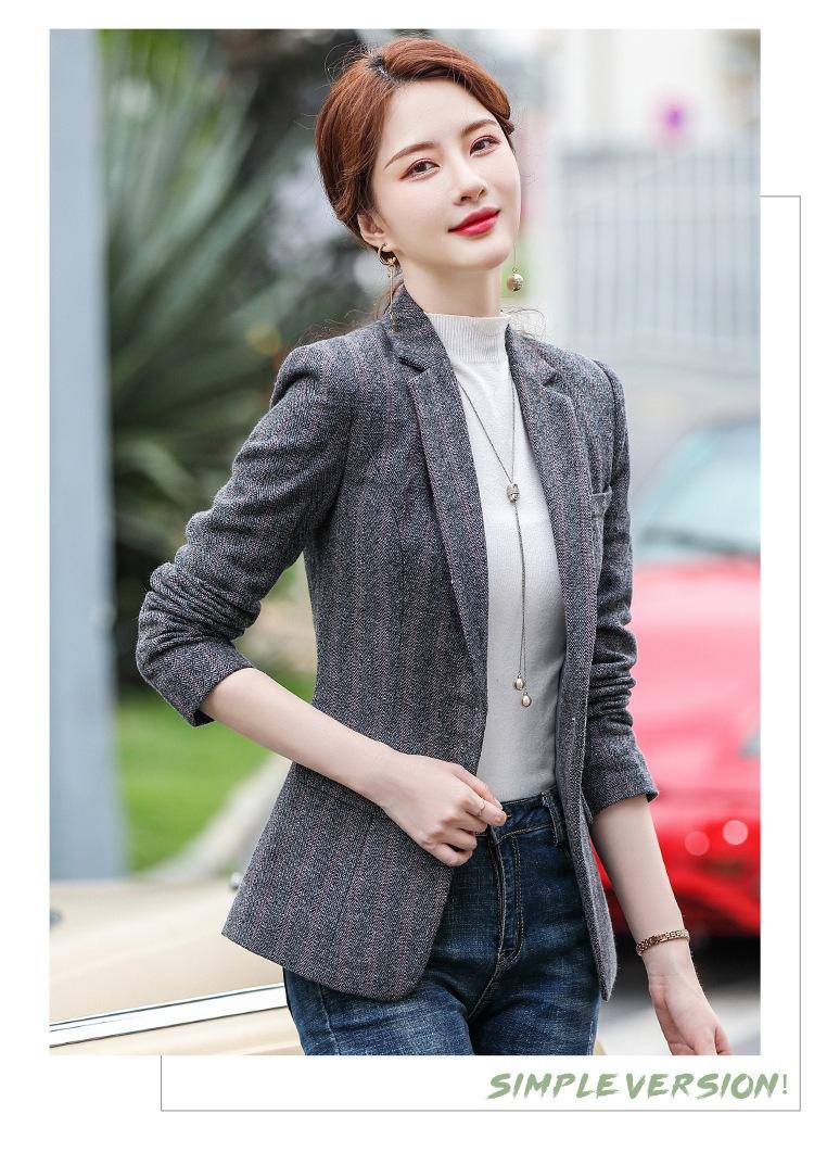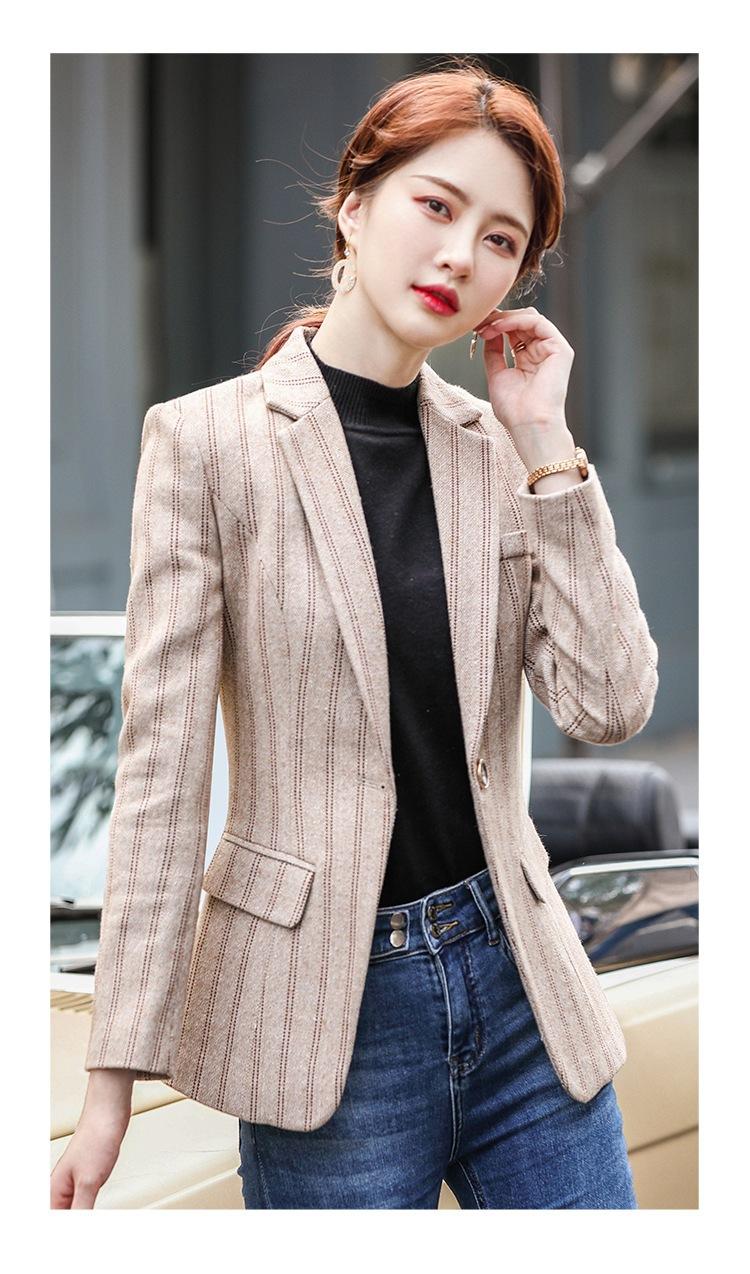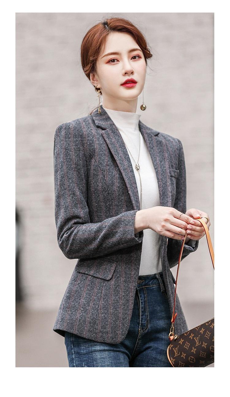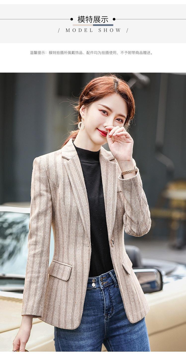 Traje pequeño a rayas azules para mujer, primavera y verano 2023, chaqueta de moda estilo coreano, corte ajustado, manga larga, top de traje versátil