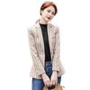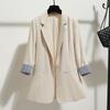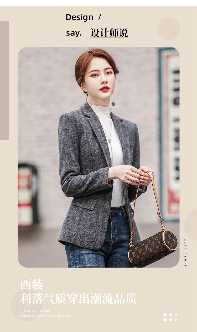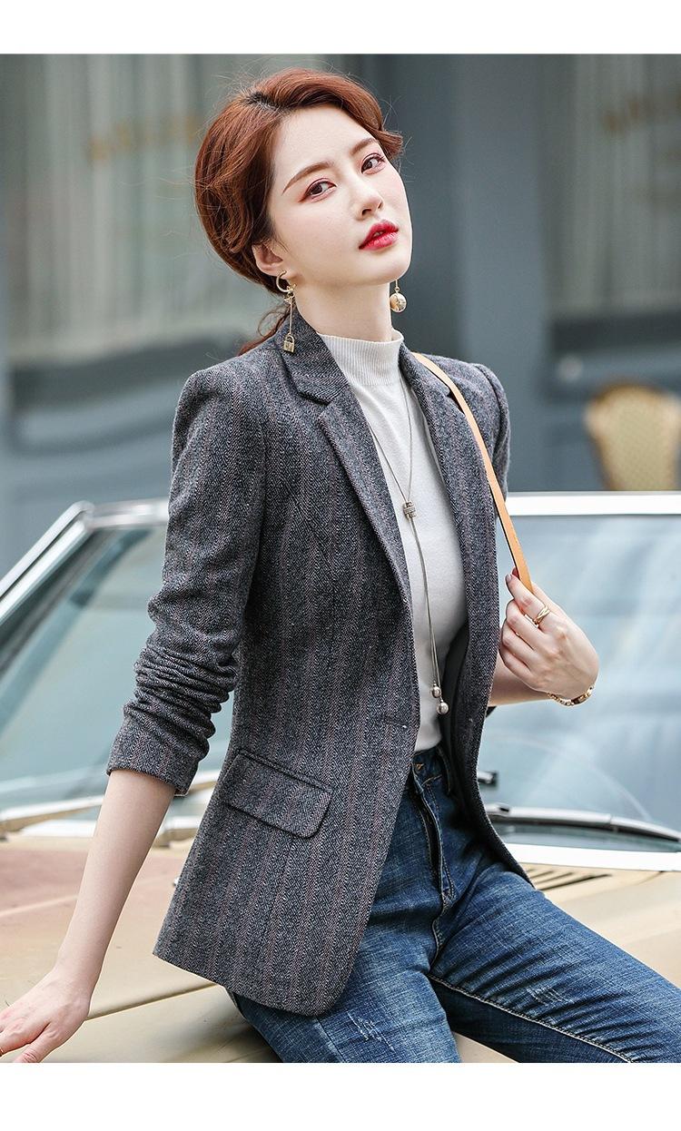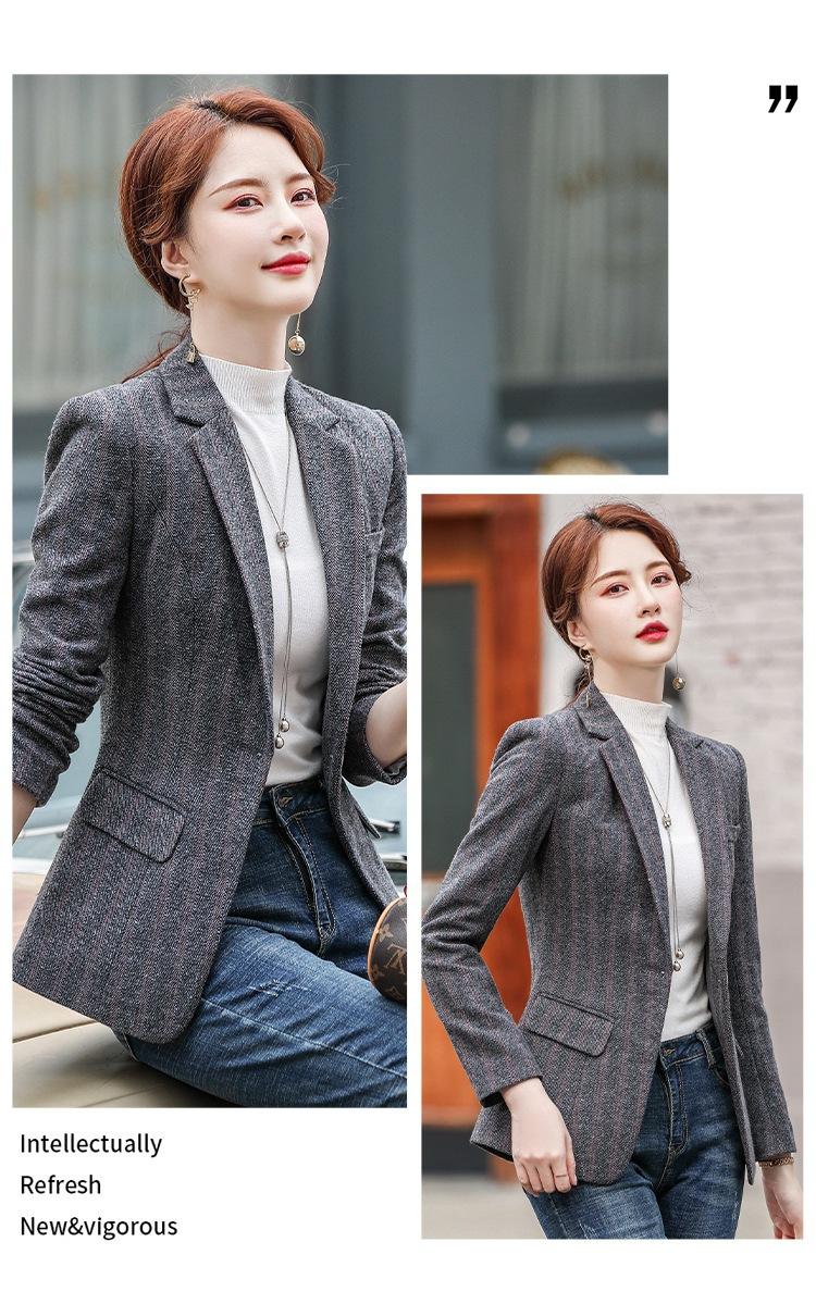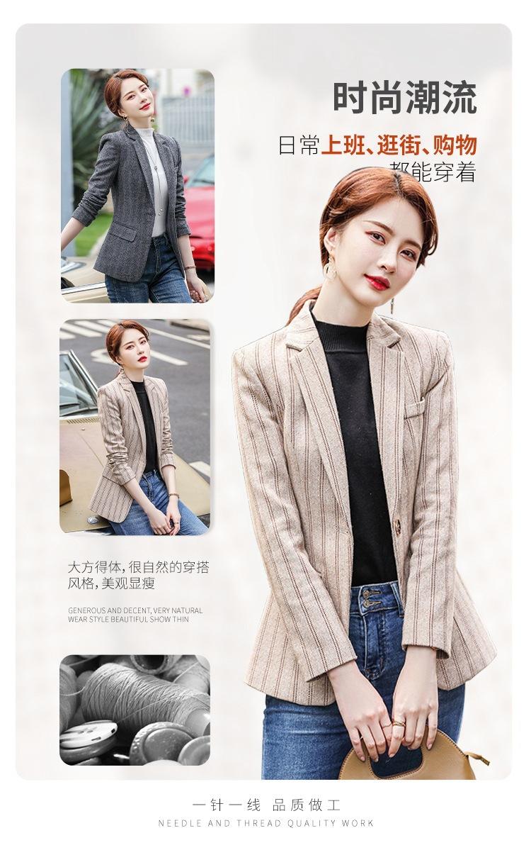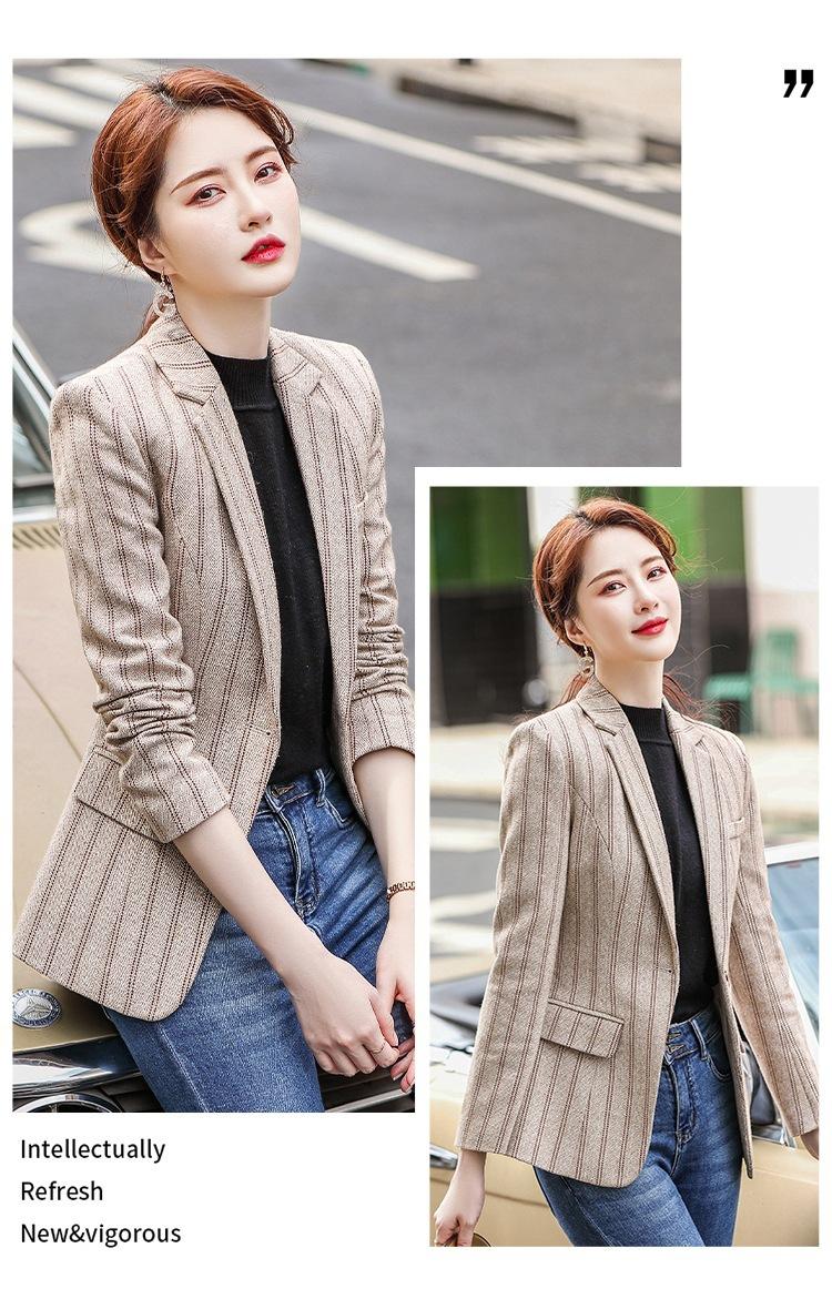 Traje pequeño a rayas azules para mujer, primavera y verano 2023, chaqueta de moda estilo coreano, corte ajustado, manga larga, top de traje versátil