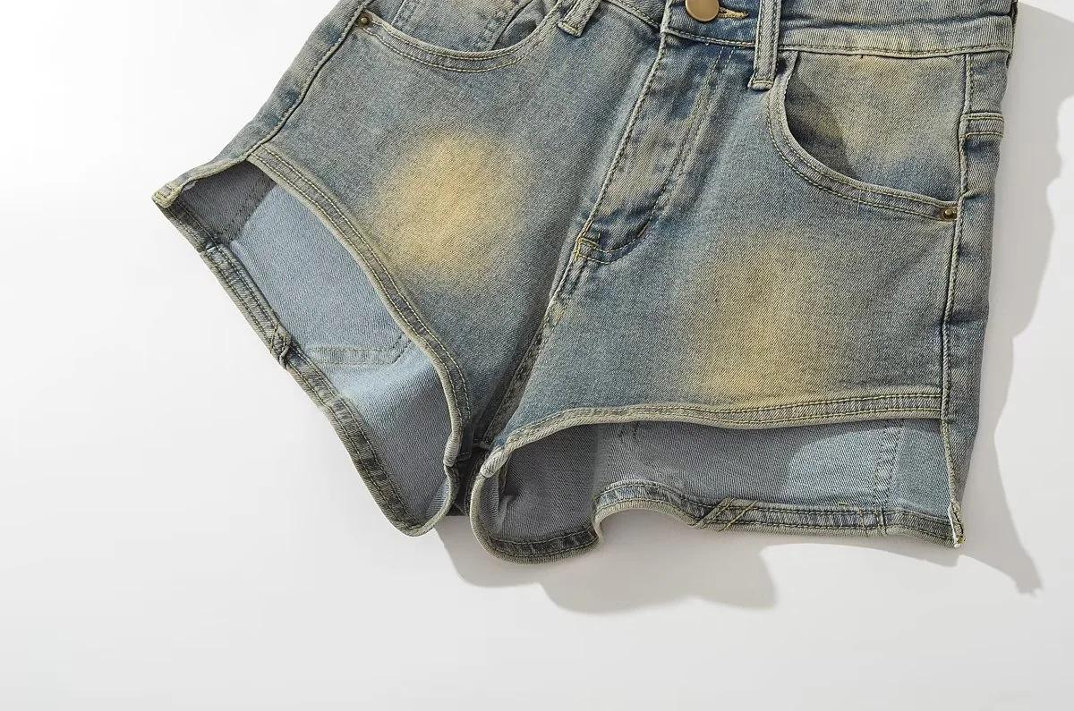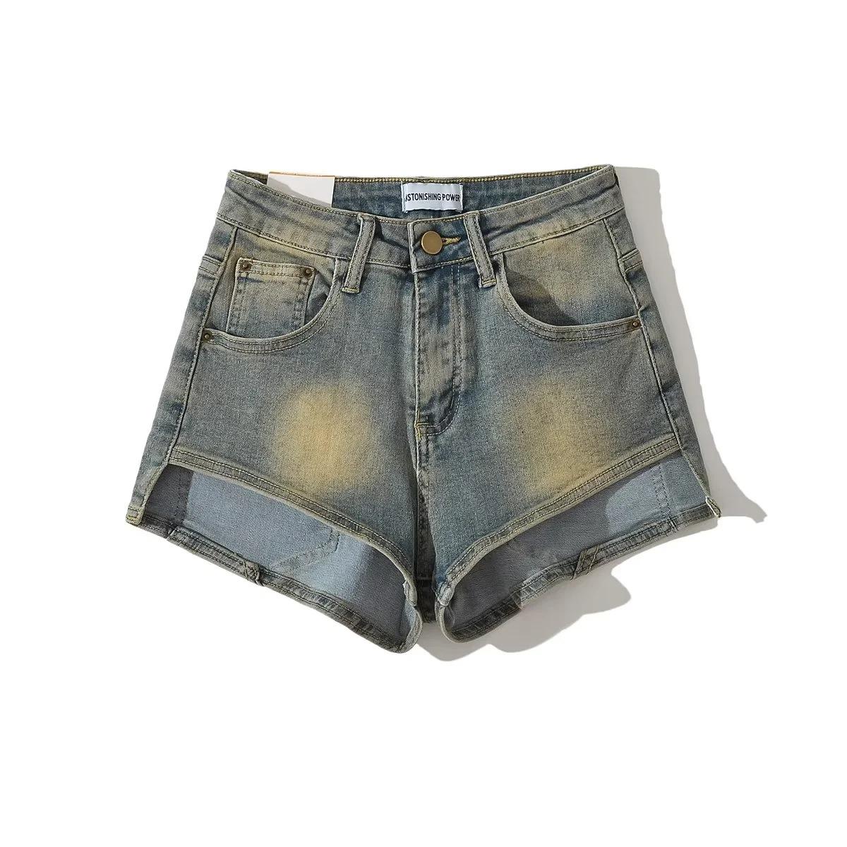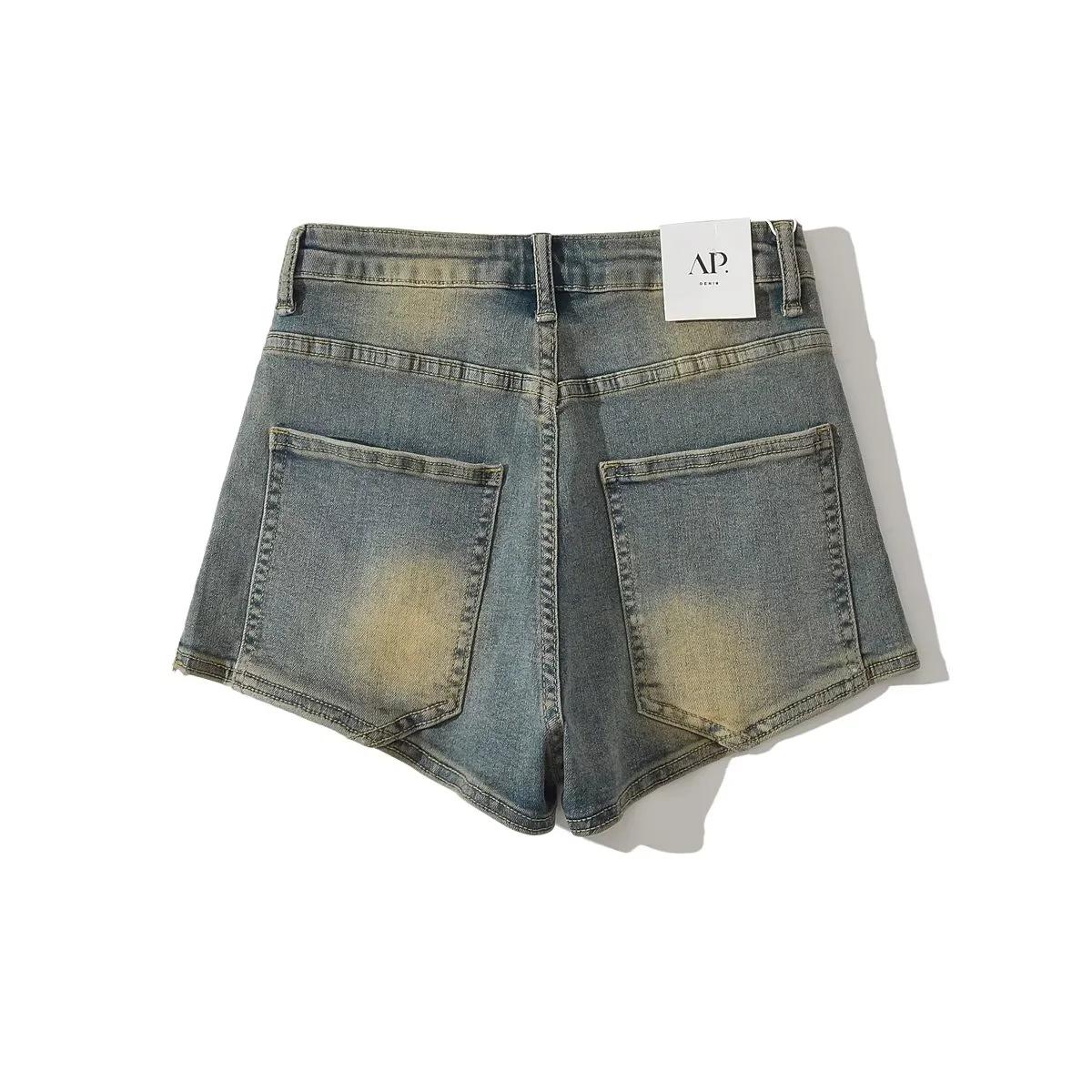 Estilo americano 2023 Verano chica sexy retro desgastado shorts de mezclilla diseño para mujer cintura alta adelgazantes corte ajustado combinan con todo pantalones cortos