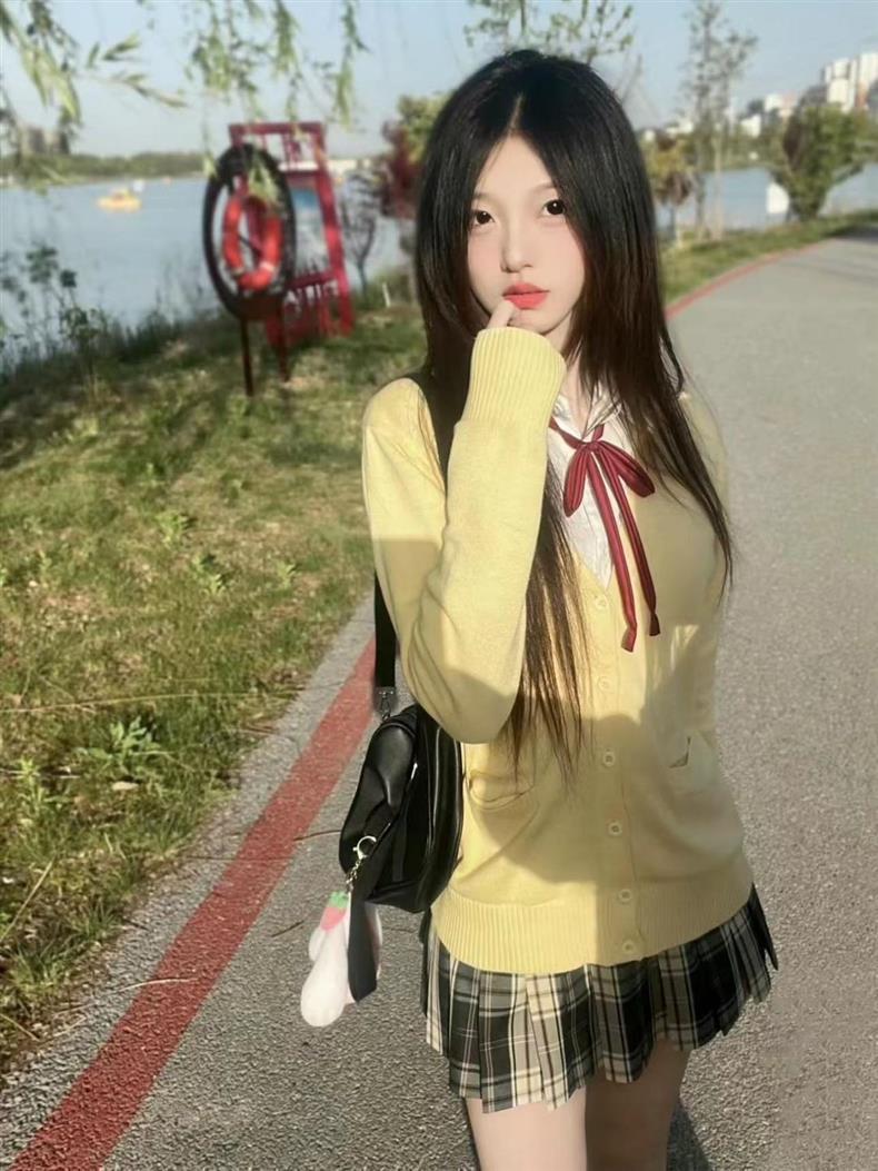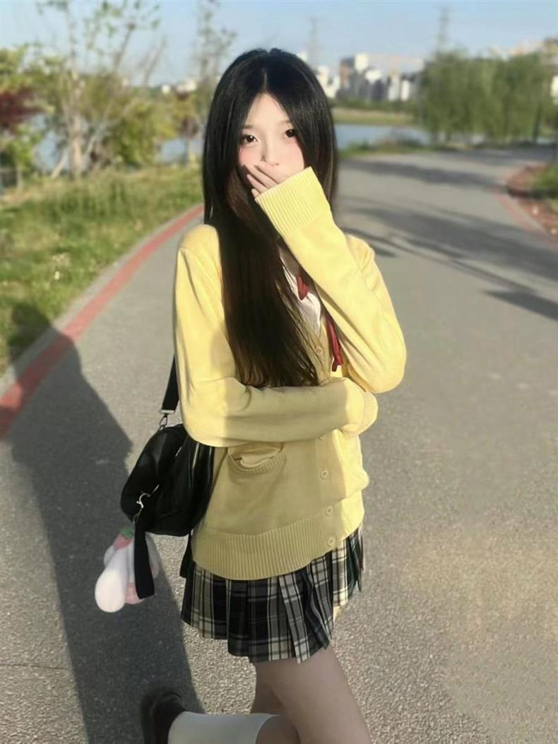 Uniforme JK Traje Cárdigan Suéter Abrigo Otoño e Invierno Estilo Universitario Color Sólido Chica Dulce Falda Plisada Nuevo Atuendo Moda