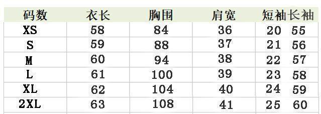 XS, S, M, L, XL, 2XL