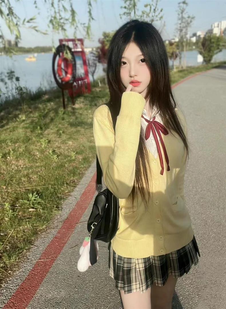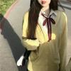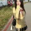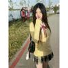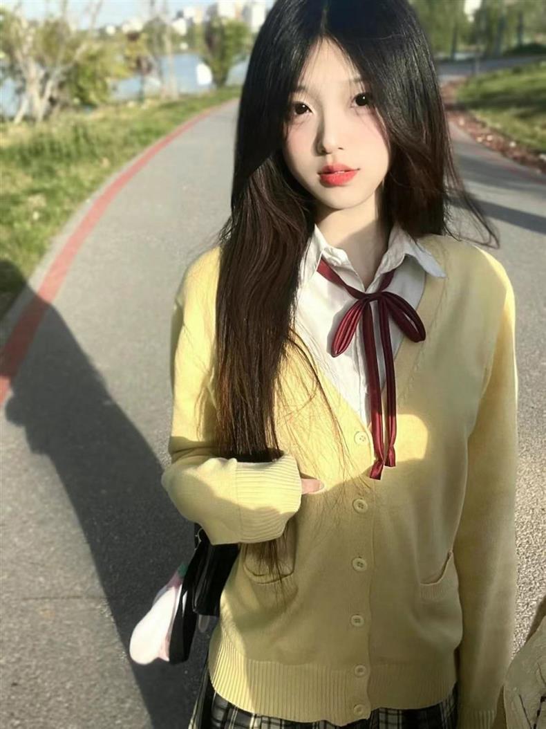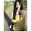 Three-piece chick yellow cardigan set + long sleeves + red collar rope