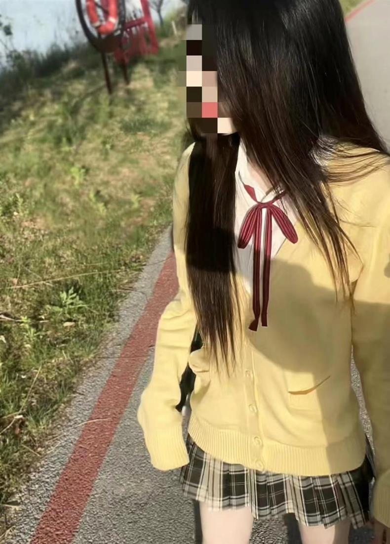 Complete set of chick yellow cardigan + long sleeves + red collar rope + a skirt, Three-piece chick yellow car...