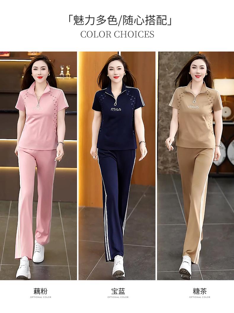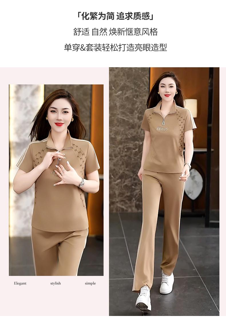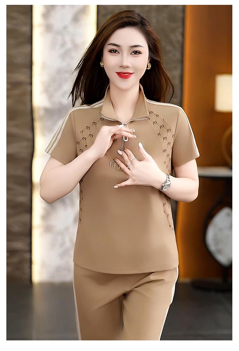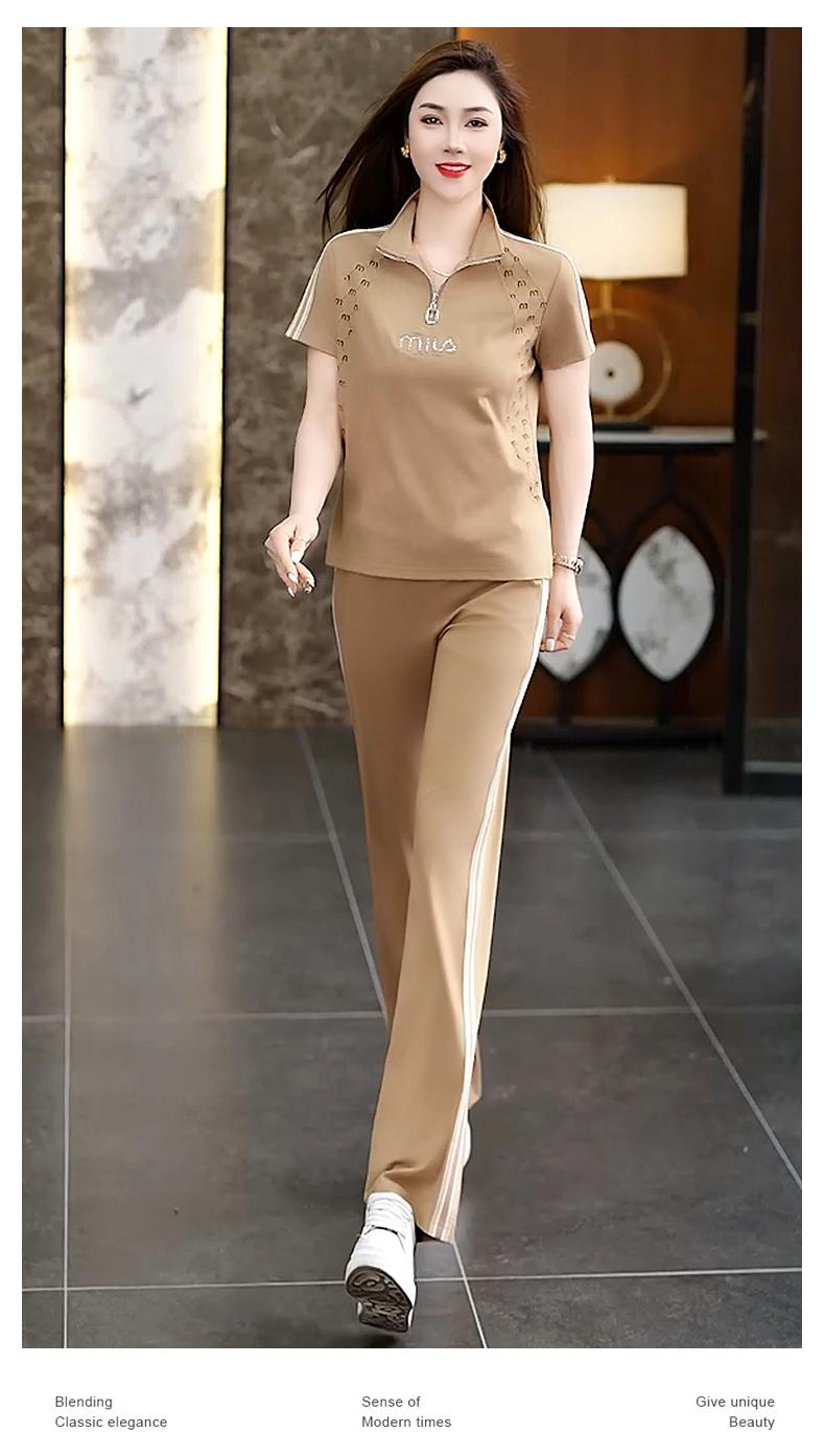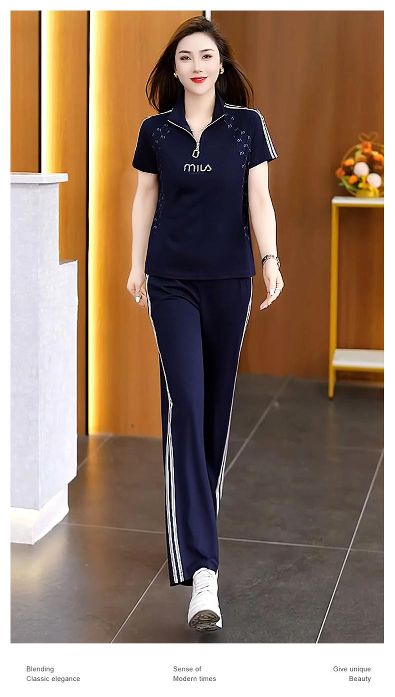Traje Deportivo para Mujer Verano Delgado 2025 Nuevo Estilo Moderno Mamá Manga Corta Holgado Casual Conjunto de Dos Piezas