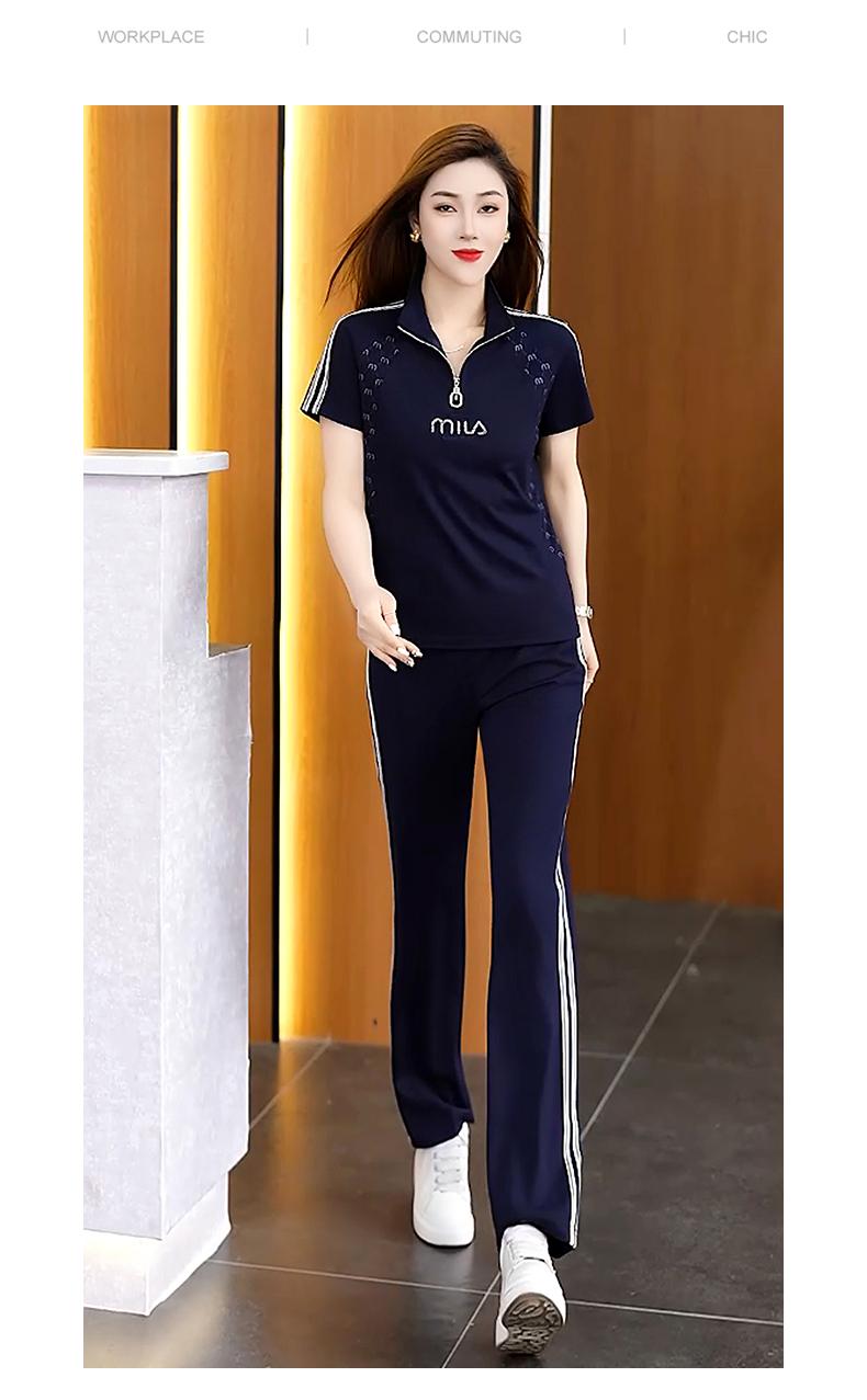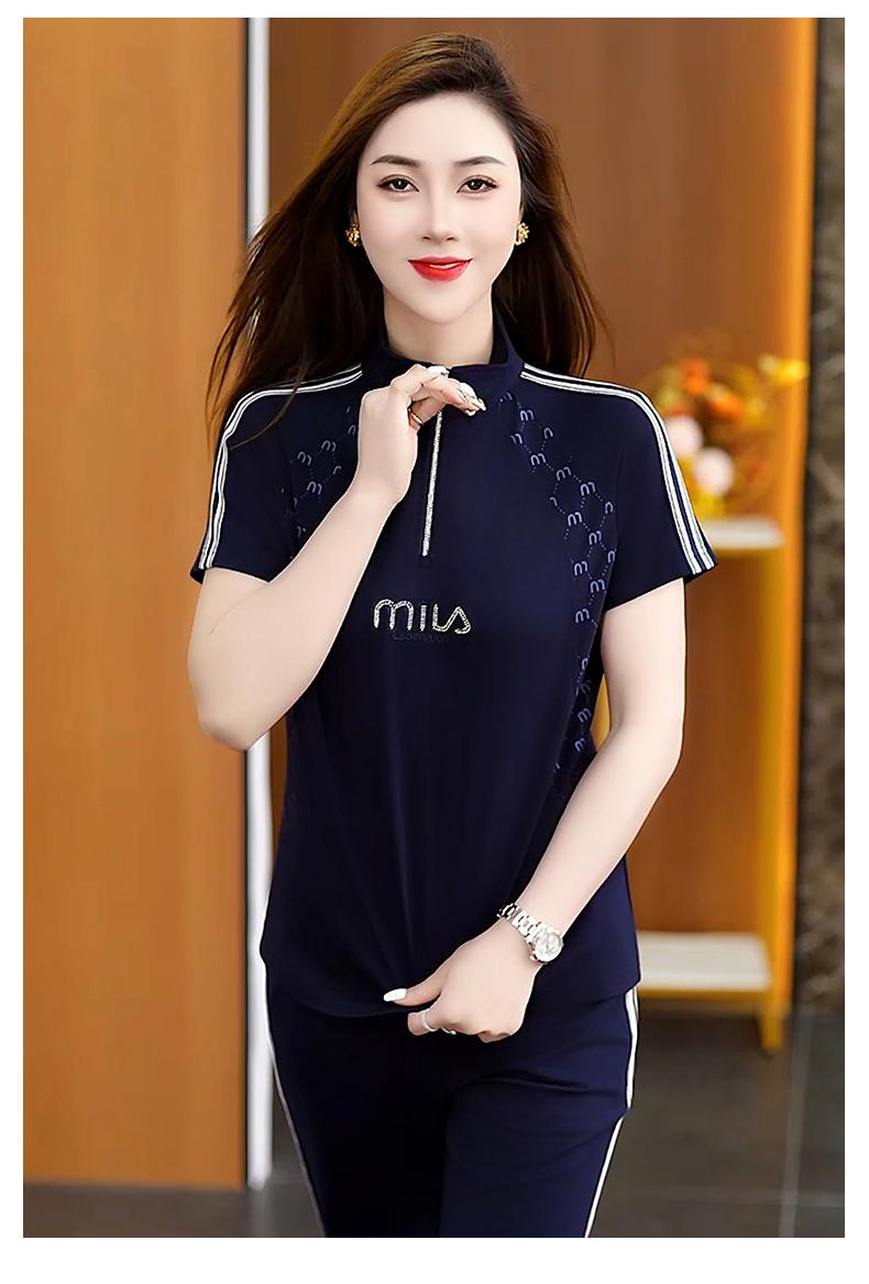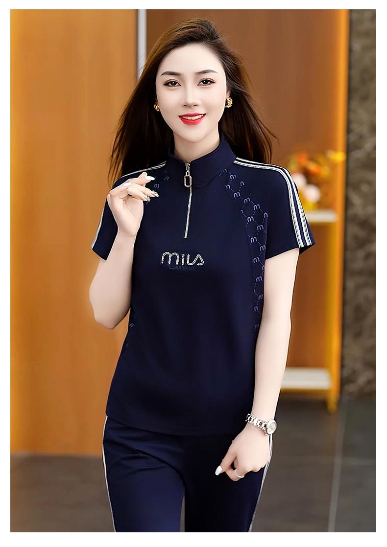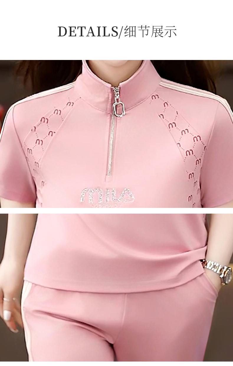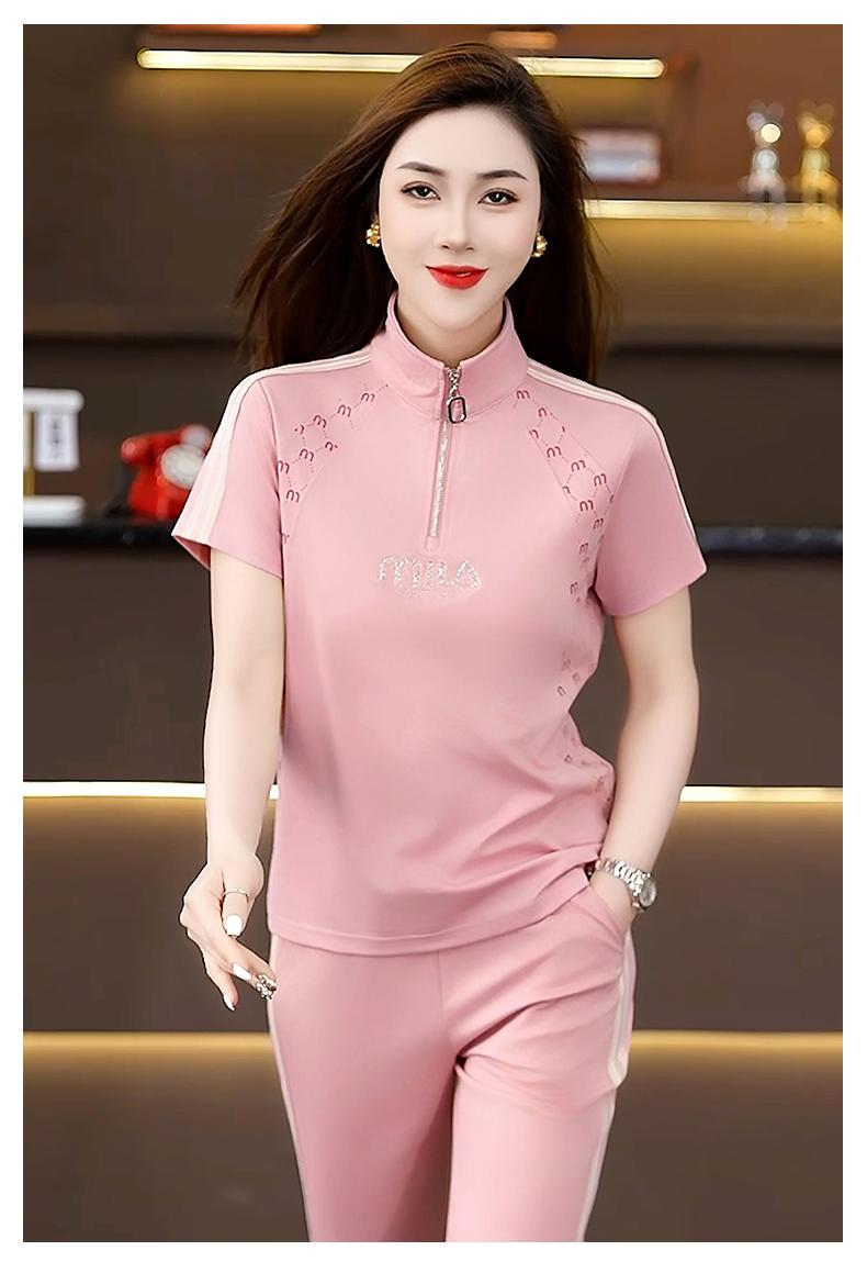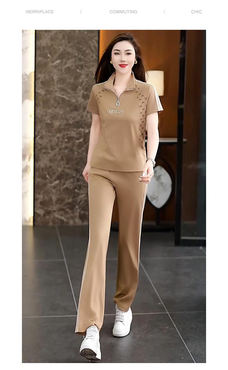 Traje Deportivo para Mujer Verano Delgado 2025 Nuevo Estilo Moderno Mamá Manga Corta Holgado Casual Conjunto de Dos Piezas