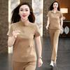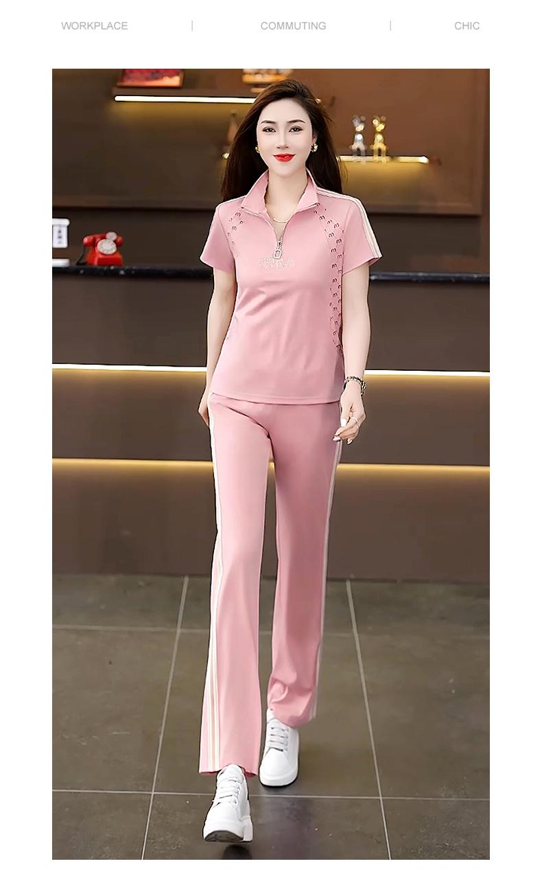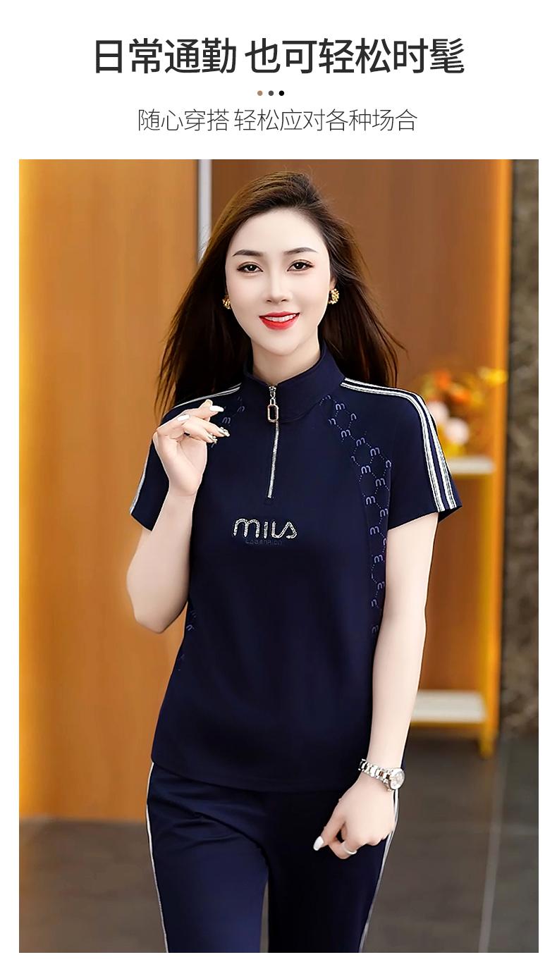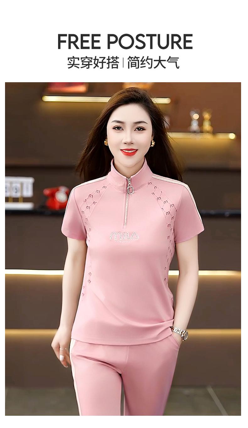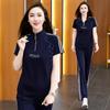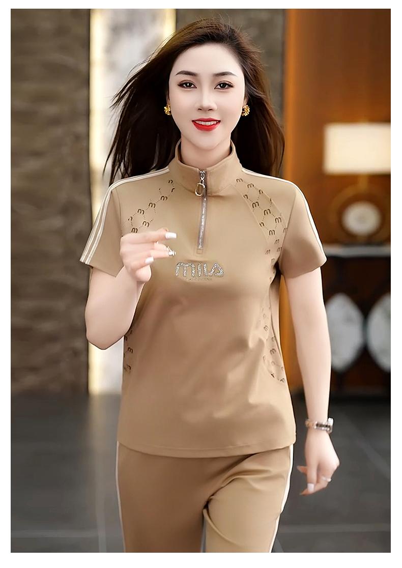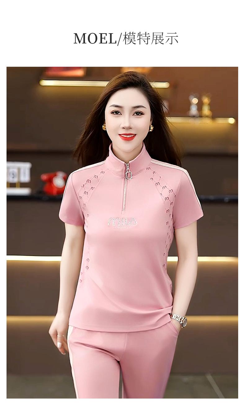 Traje Deportivo para Mujer Verano Delgado 2025 Nuevo Estilo Moderno Mamá Manga Corta Holgado Casual Conjunto de Dos Piezas