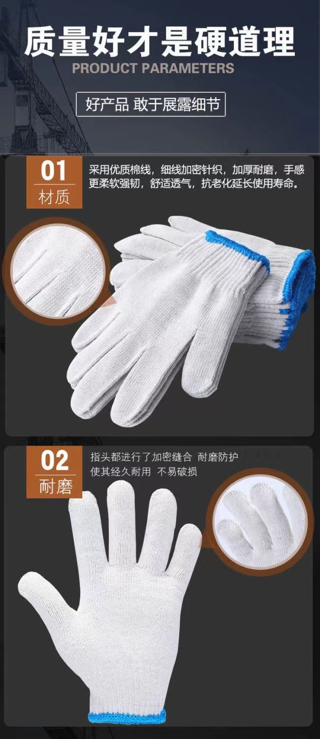 Guantes Resistentes al Desgaste Protección Laboral Trabajo en Sitio de Construcción Guantes de Trabajo Duraderos Antideslizantes para Hombre y Mujer Hilo de Algodón Blanco Hilo de Nailon Guantes Al Por Mayor