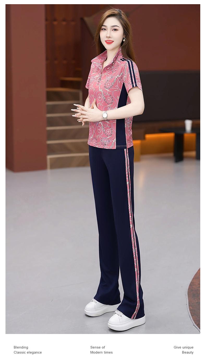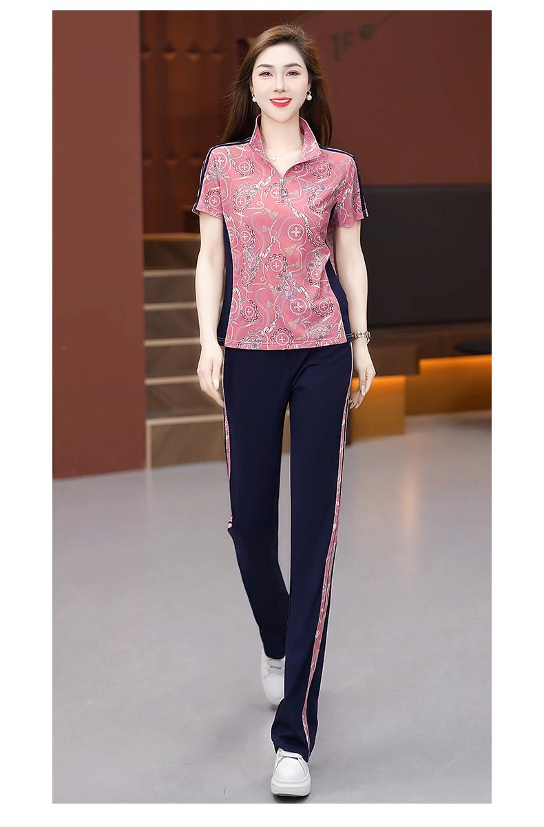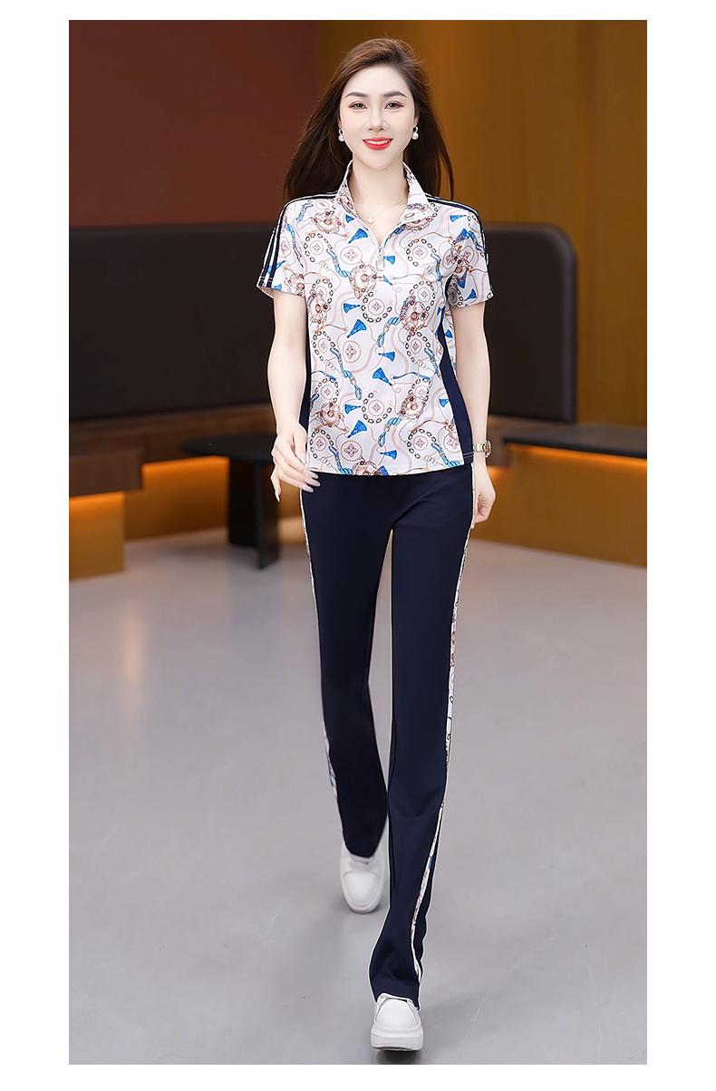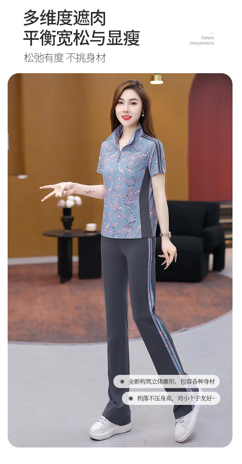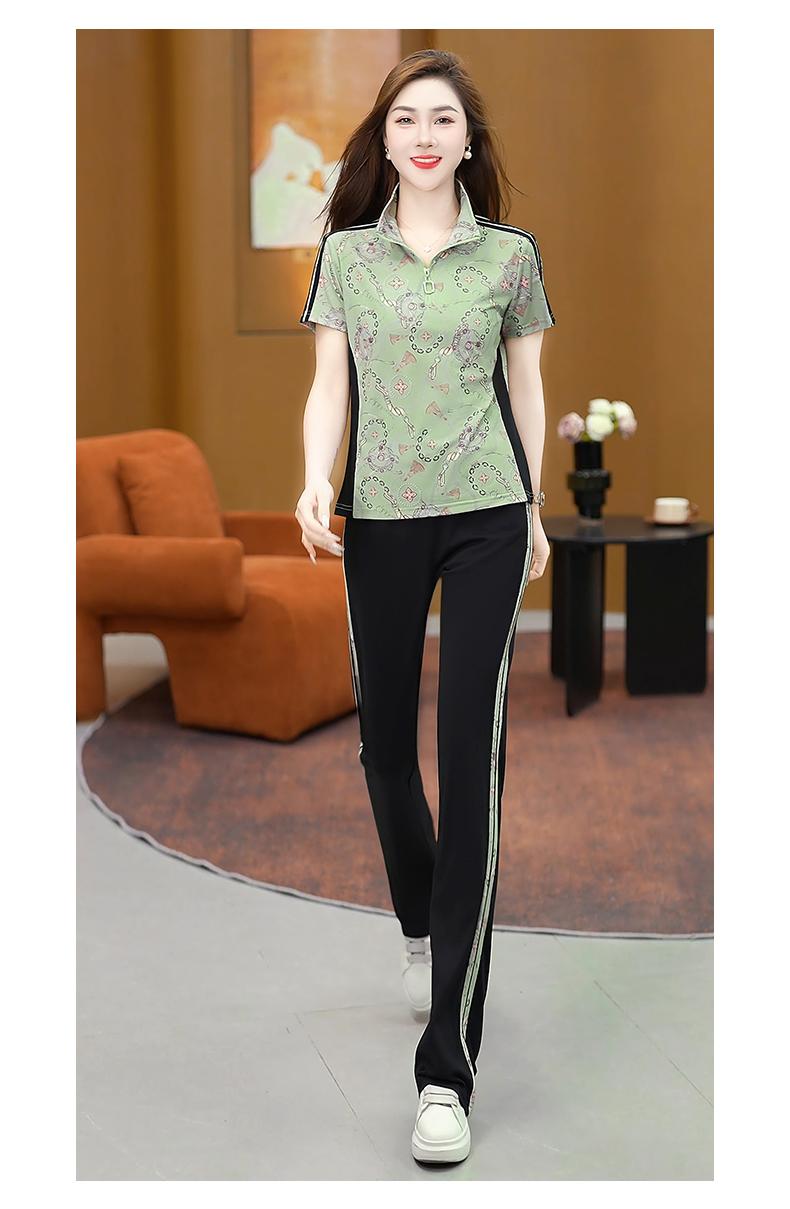 Traje deportivo para mujer Verano 2025 Nueva Moda Elegante Mamá Adelgazante Casual Manga Corta para Correr Conjunto de dos piezas