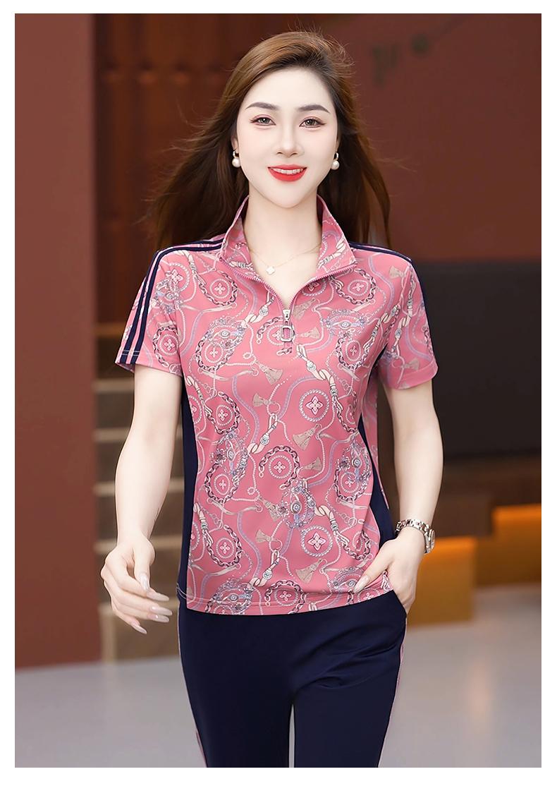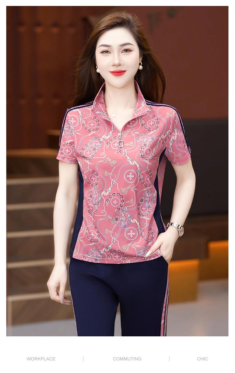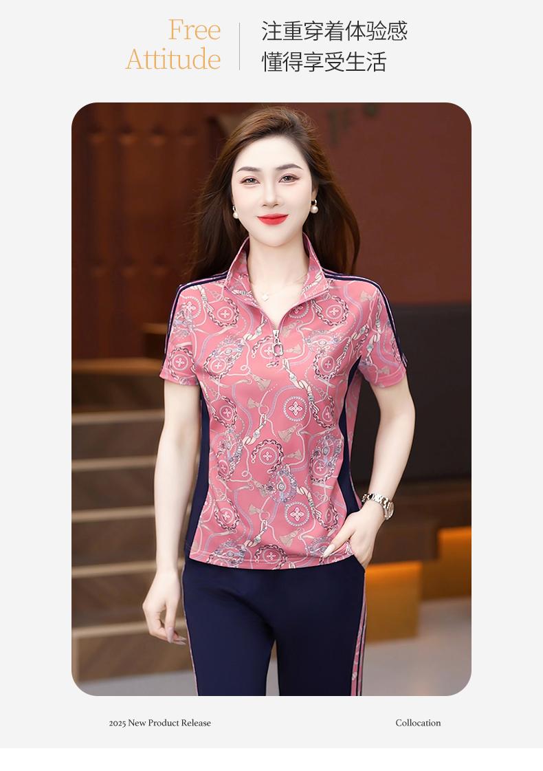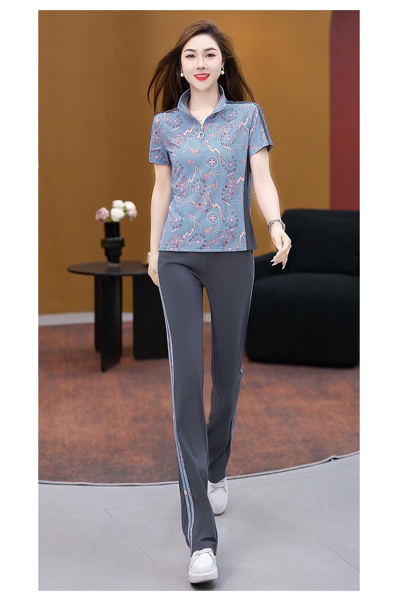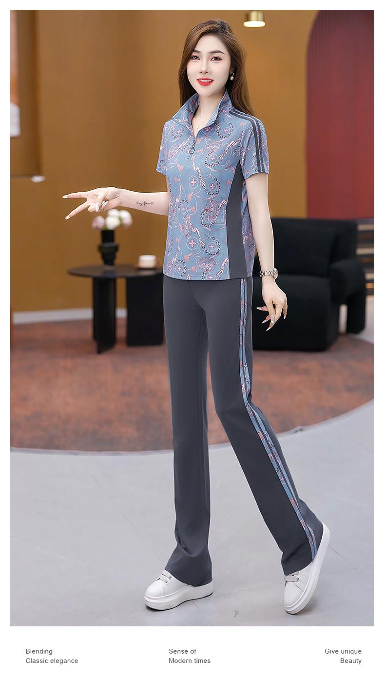 Traje deportivo para mujer Verano 2025 Nueva Moda Elegante Mamá Adelgazante Casual Manga Corta para Correr Conjunto de dos piezas