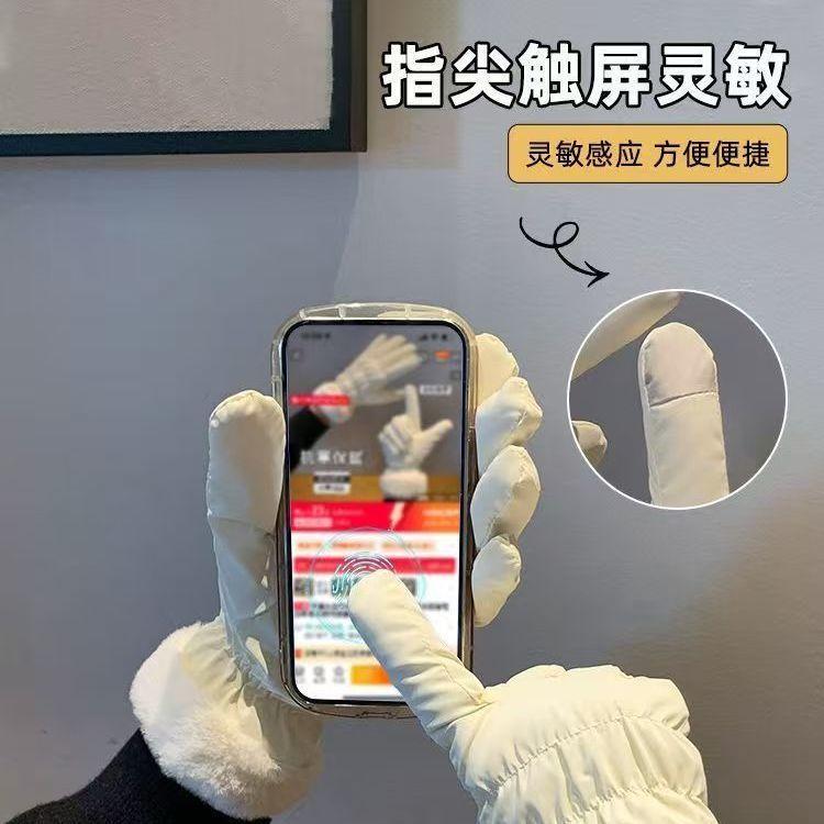 Guantes de Algodón Nuevos Invierno para Mujer Cálidos Estilo Coreano Lindo Pantalla Táctil Ciclismo Bicicleta Eléctrica A prueba de Frío con Forro Polar Engrosados a Prueba de Viento